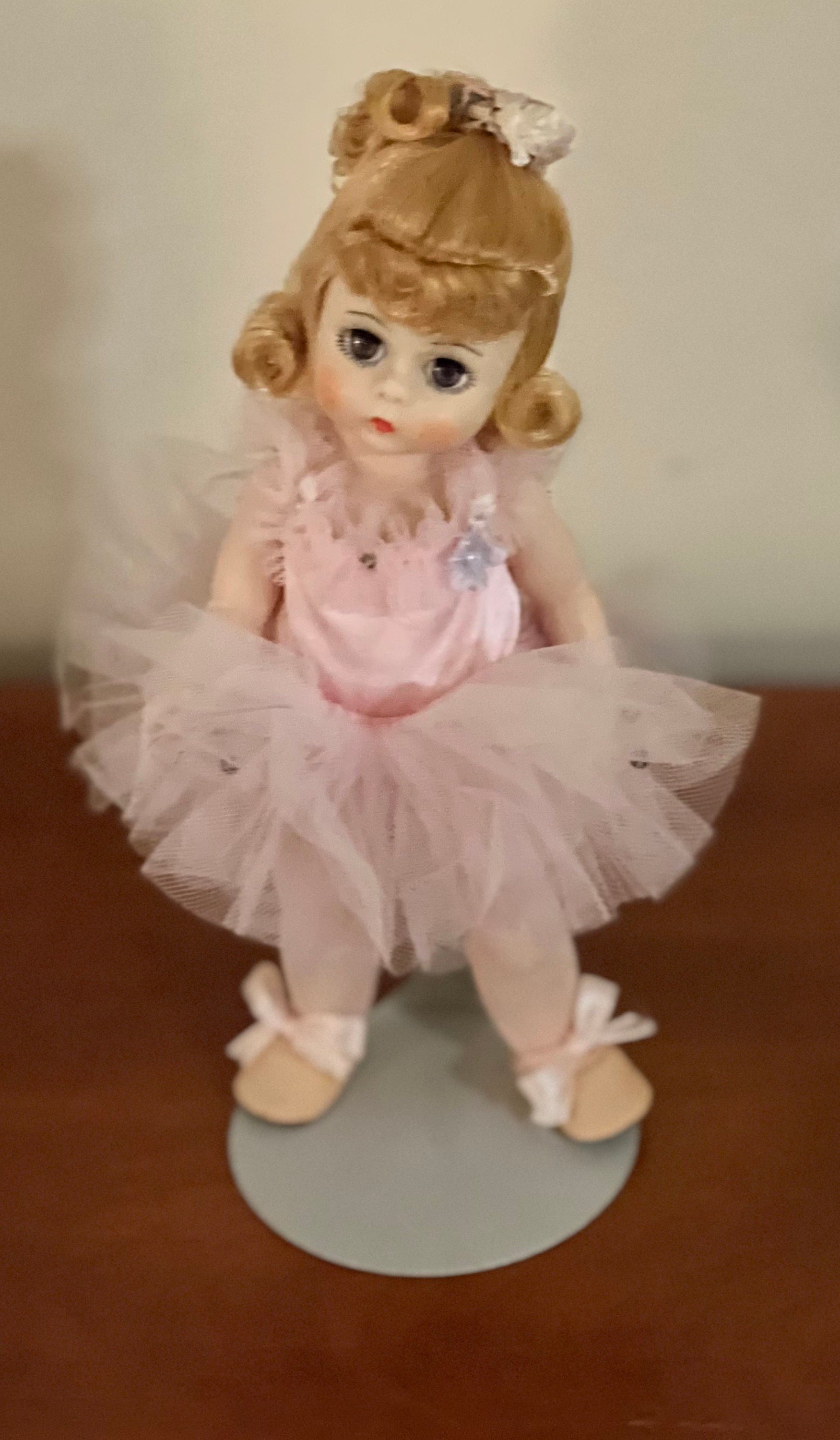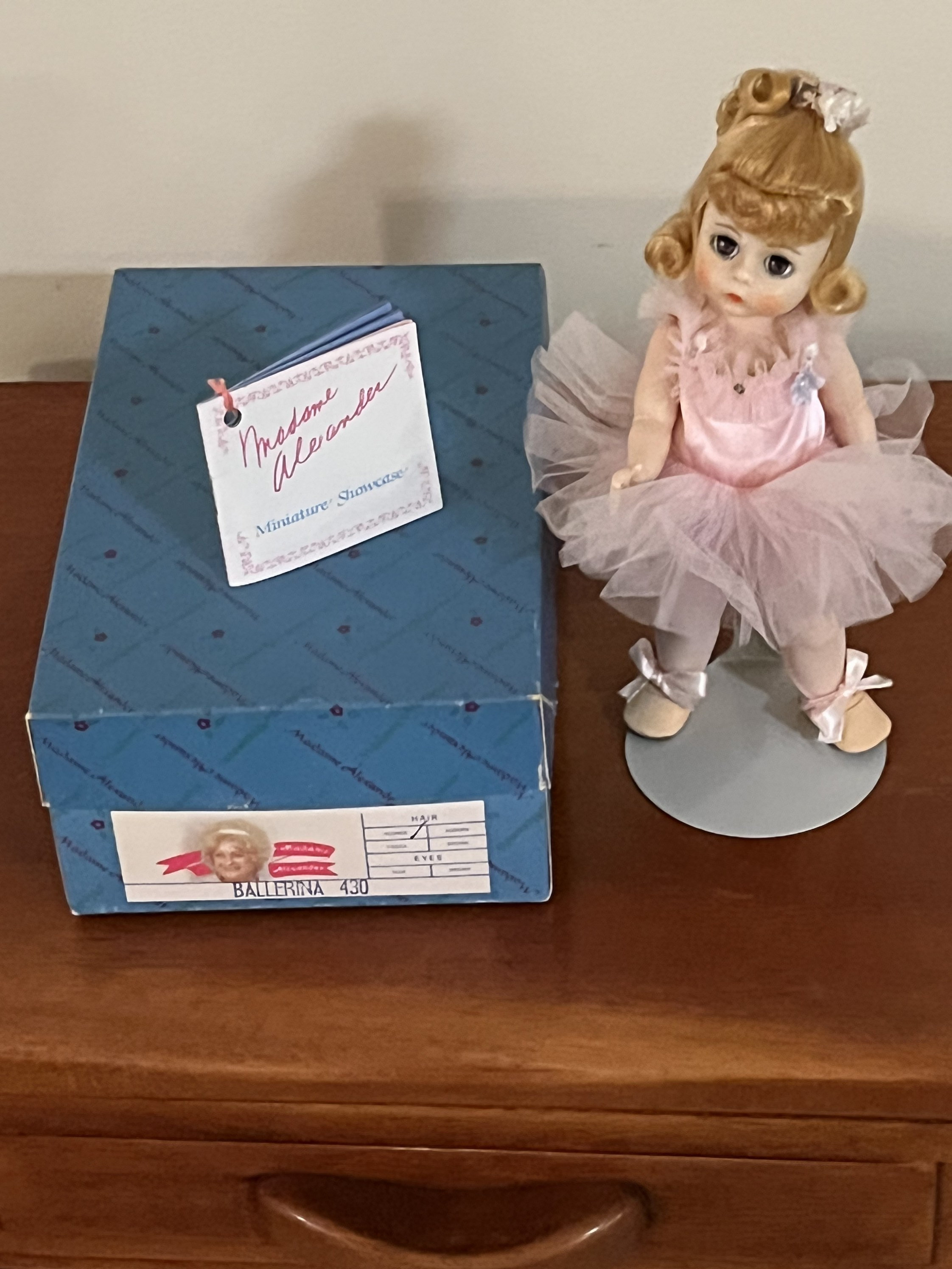 We have a lovely Vintage Madame Alexander Ballerina Doll #430 with blond hair. Has original box and tags.