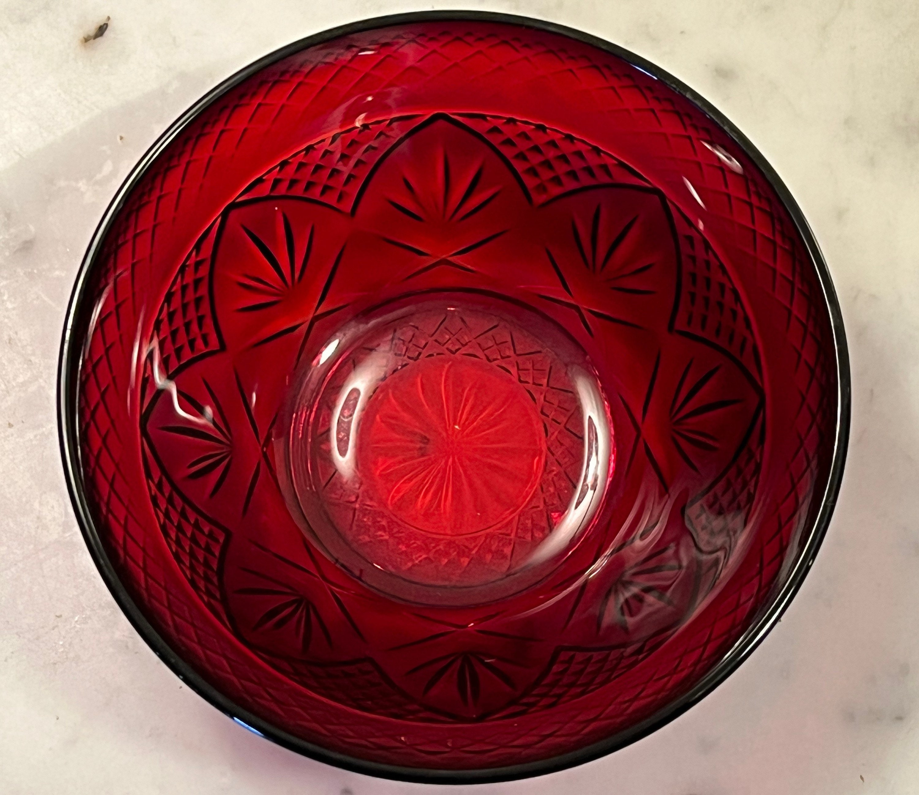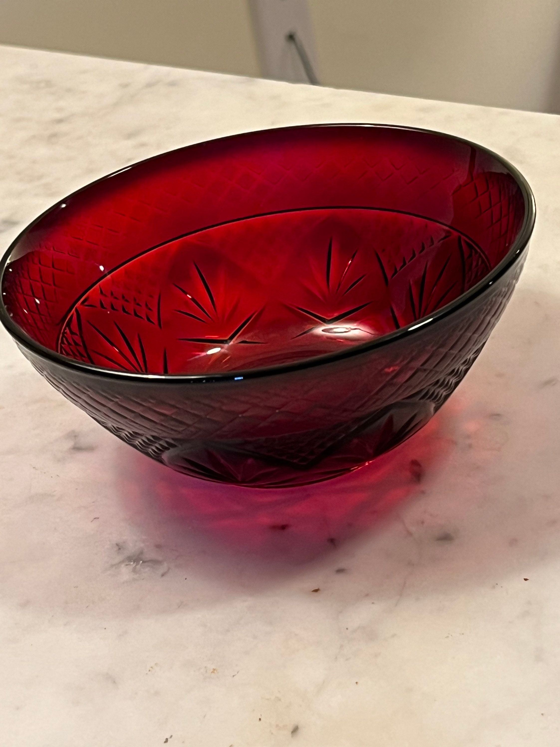 We have a gorgeous Ruby Red Small bowl- 5 3/4” x 2.5” tall.