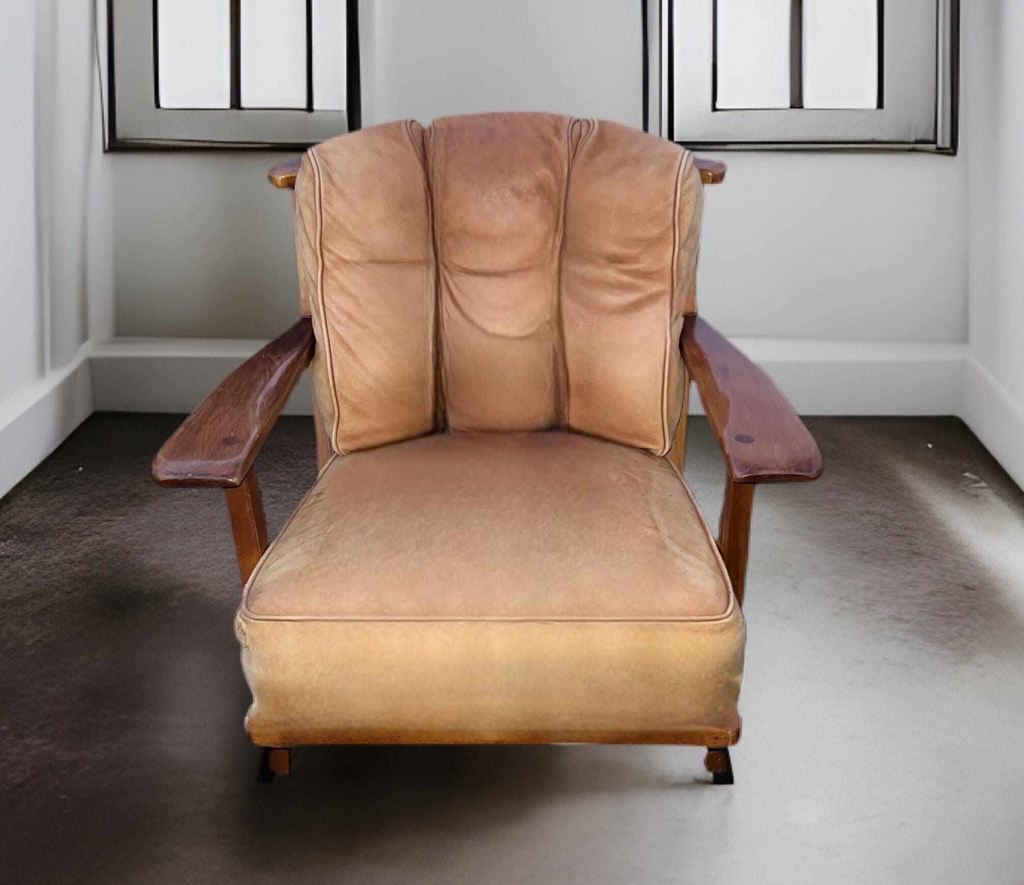 In good, original condition. The cushions have been recovered in leather and are in good condition.