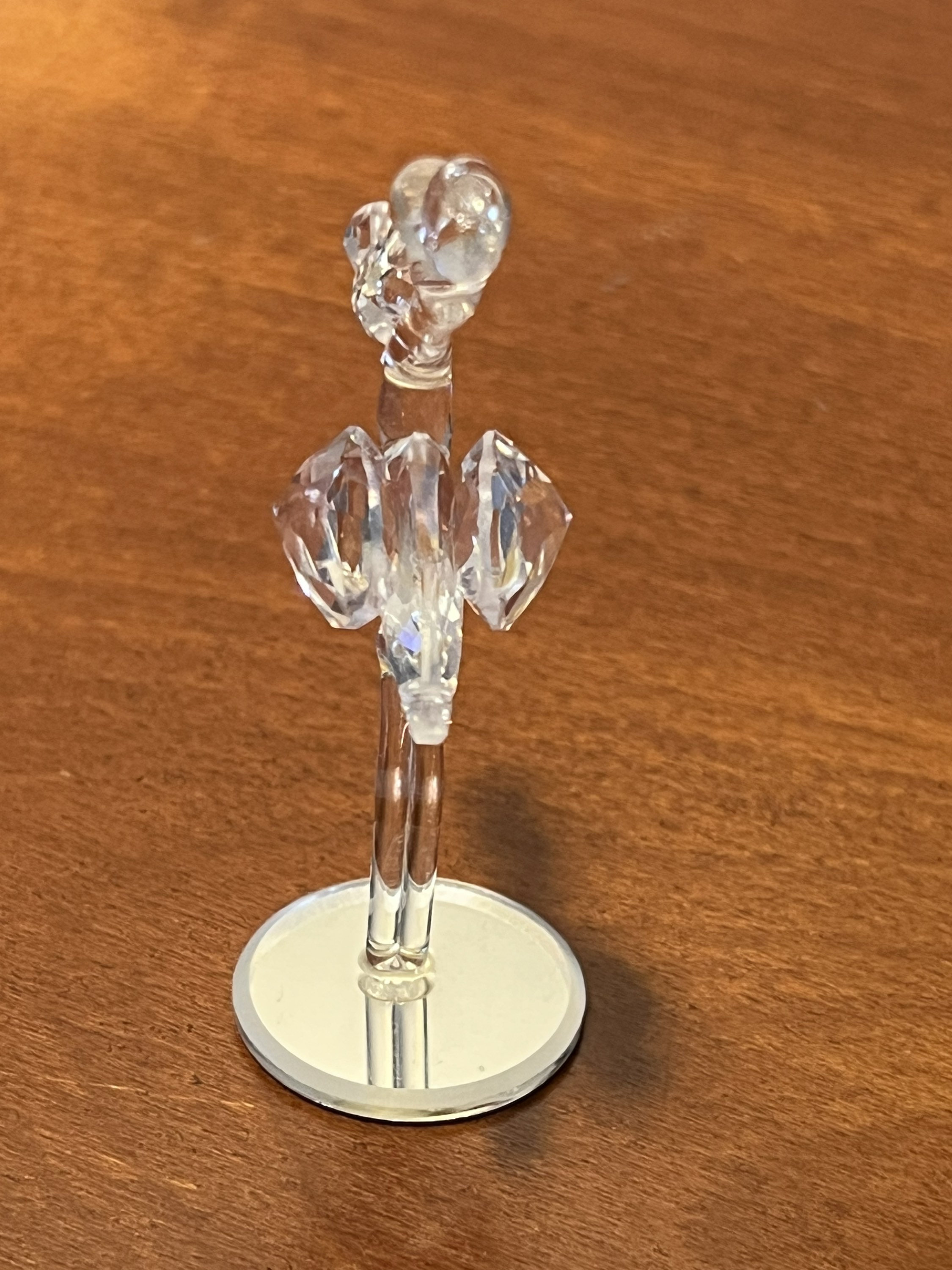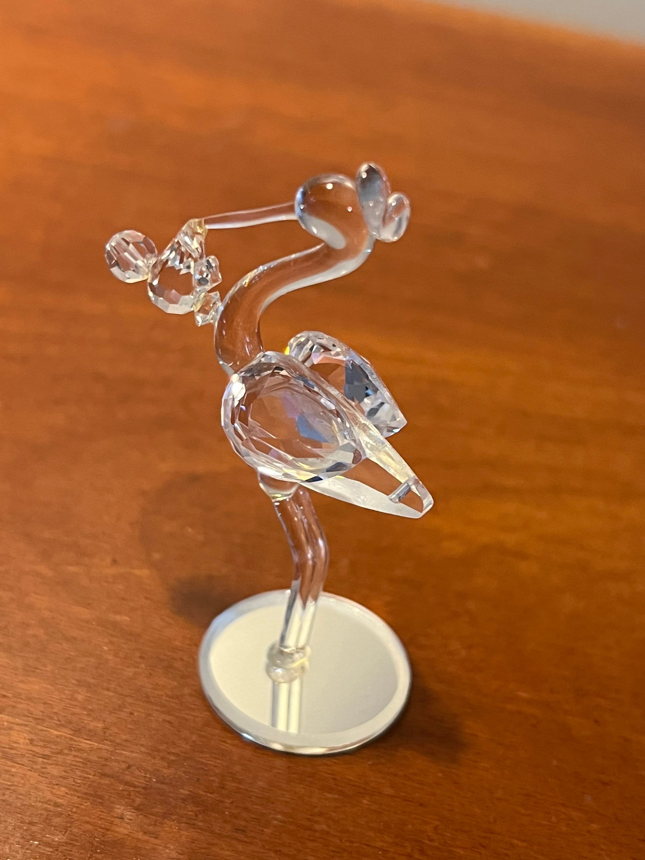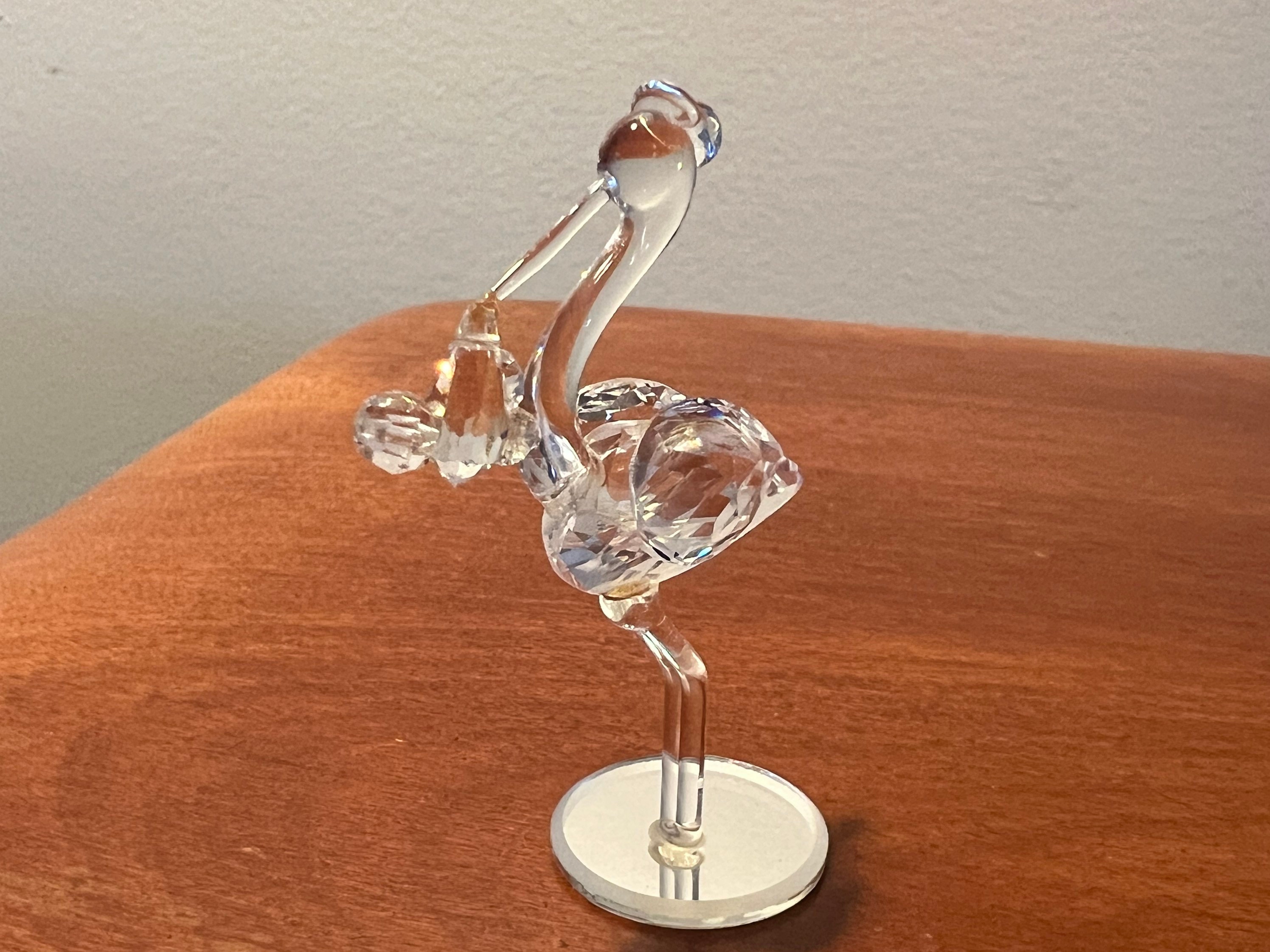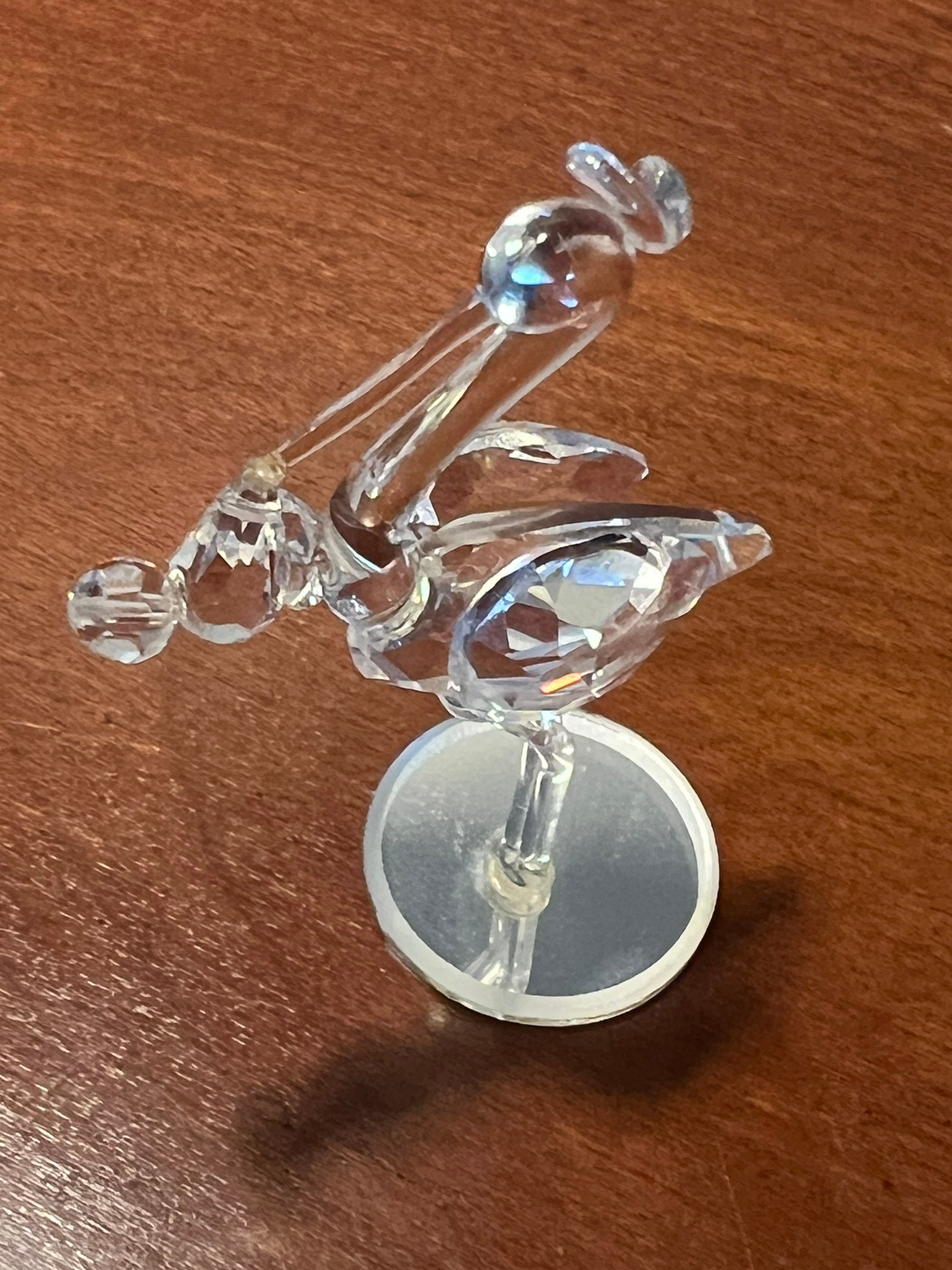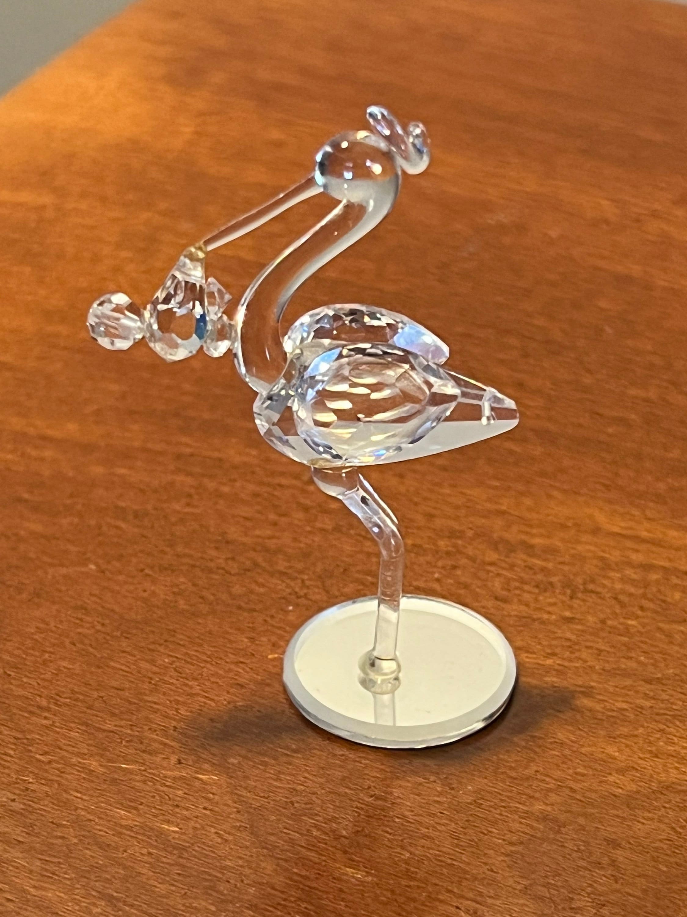 We have a Vintage Crystal Glass Stork figurine. It is in very nice condition. Perfect gift to let family know you are expecting!