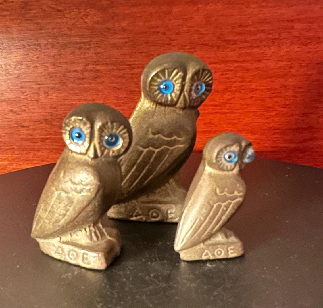 We have a gorgeous Vintage Brass Collection of 3 Owls. By AOE, Alpha Omega Epsiton. They are symbols of wisdom.