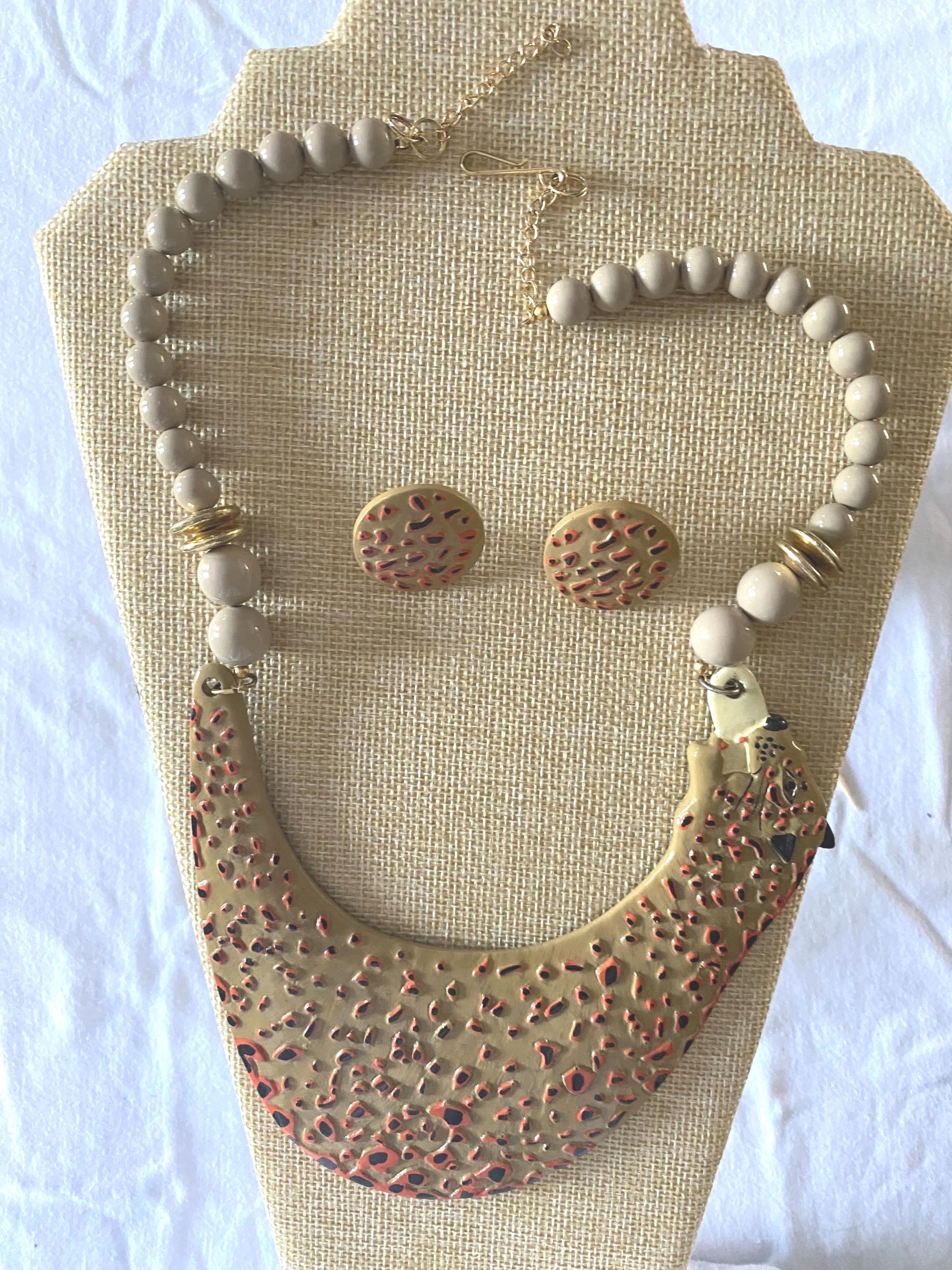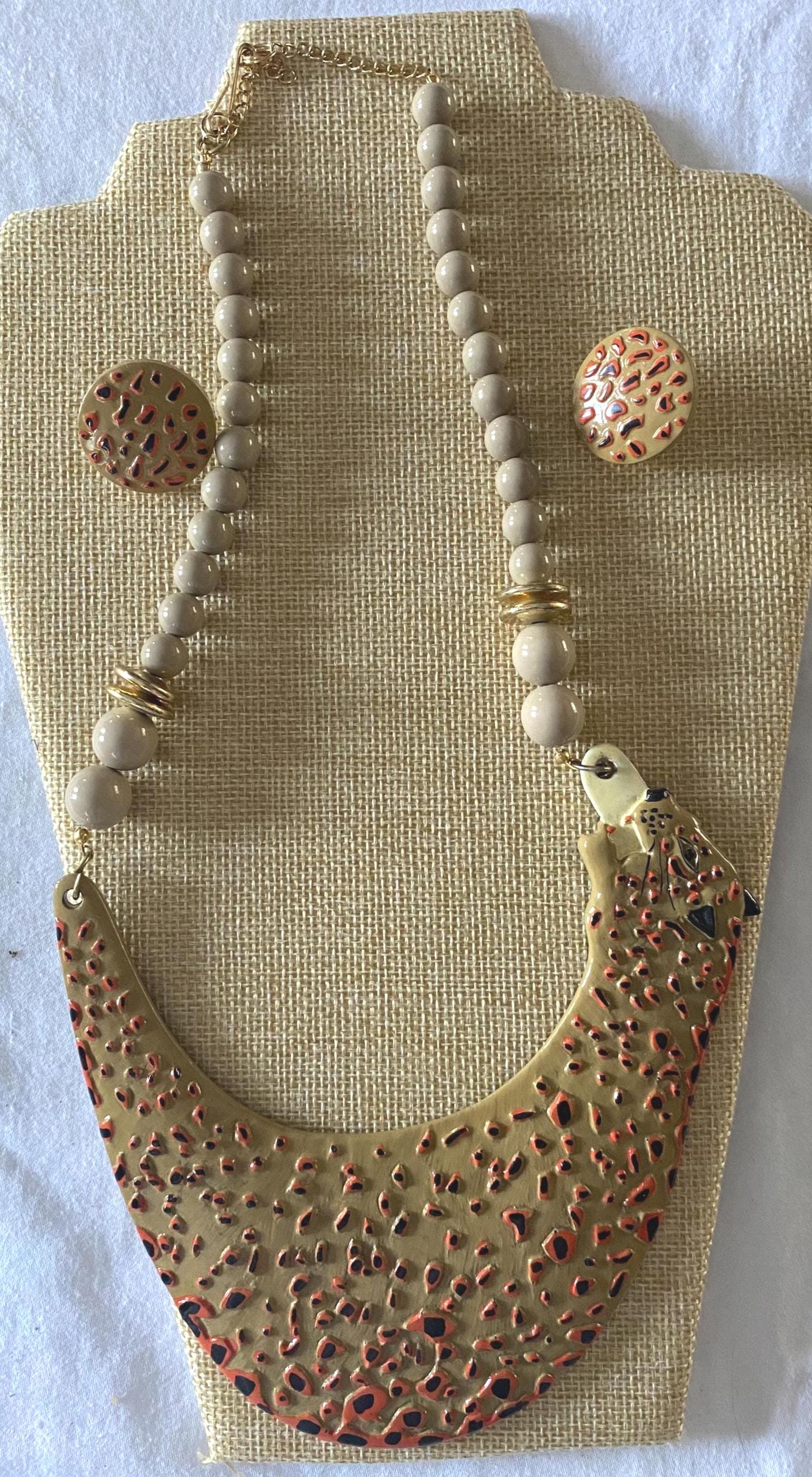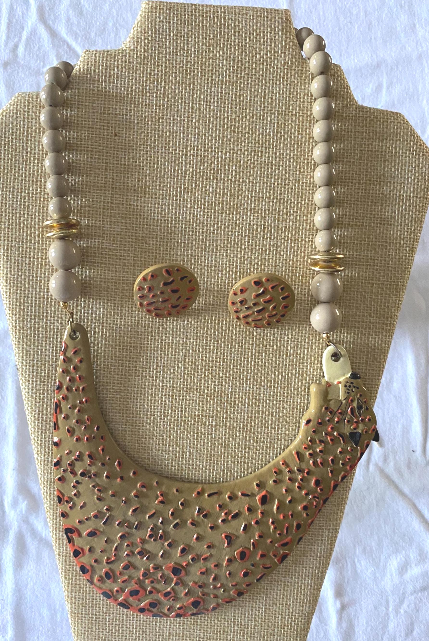 * Unique vintage giraffe figural bib and beaded resin necklace
