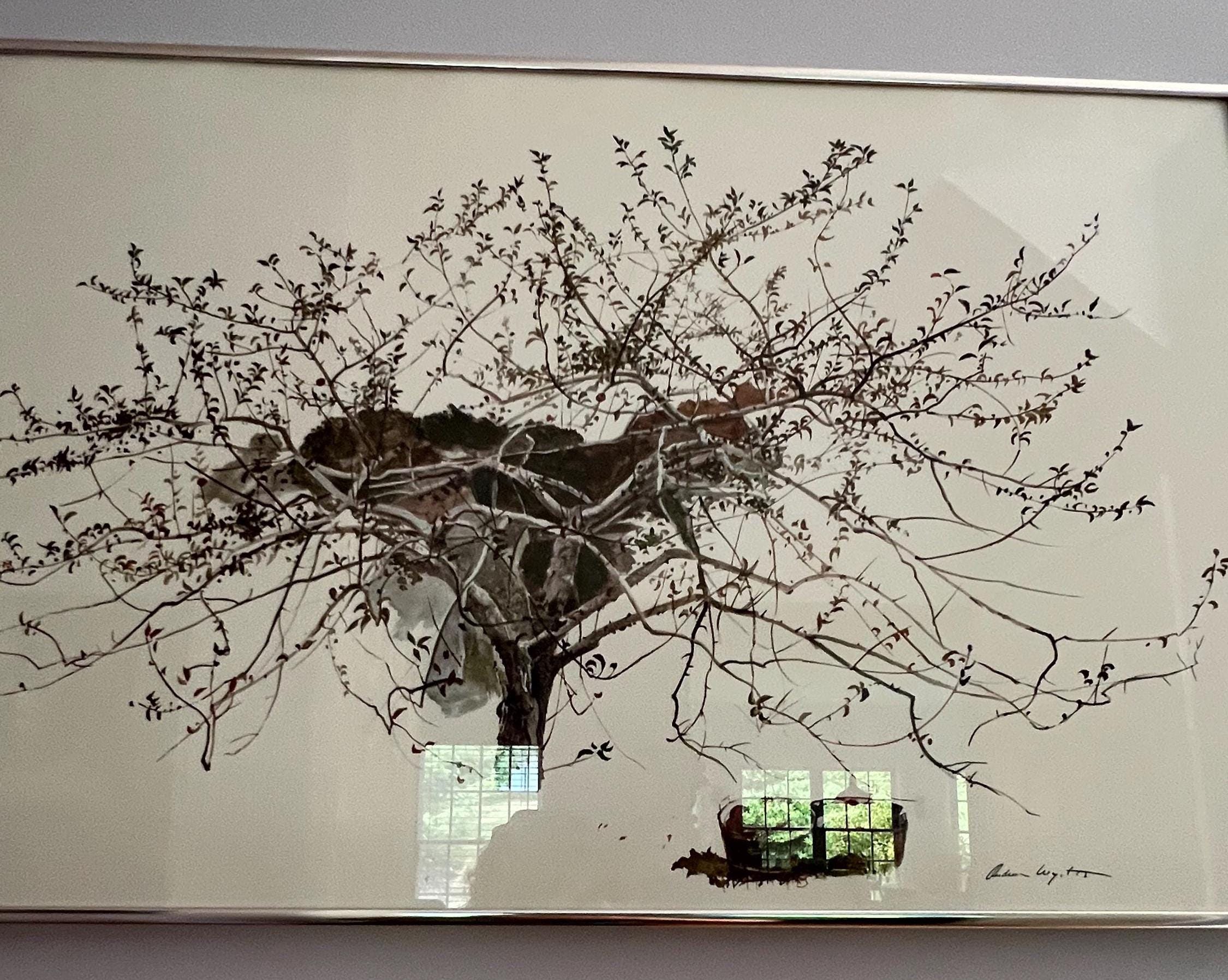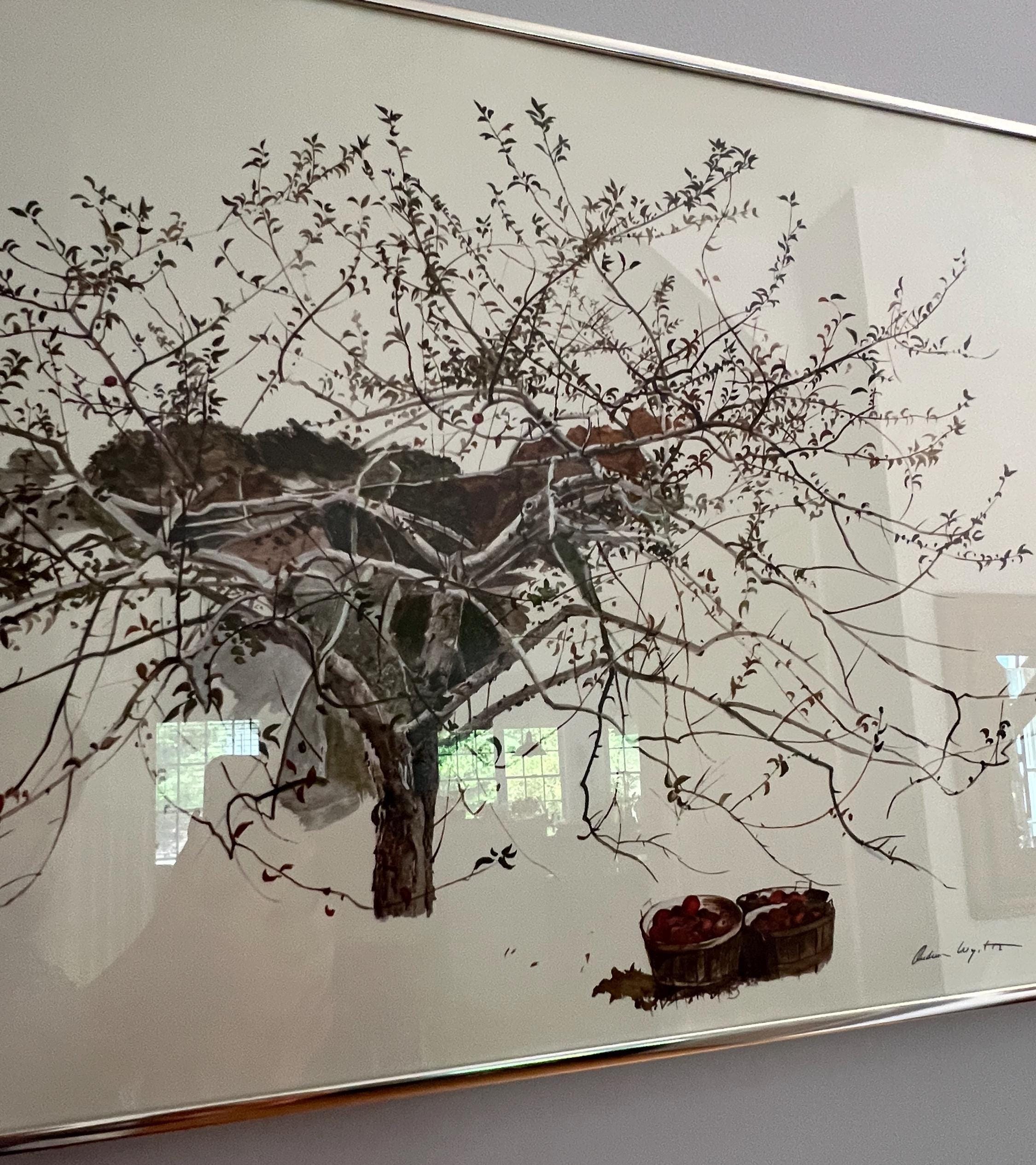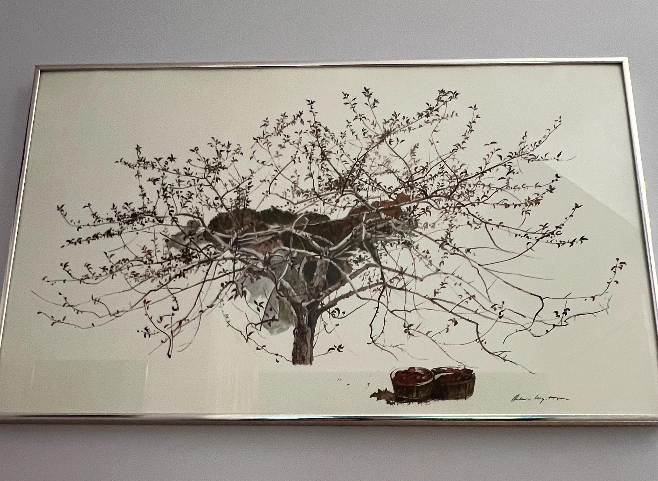 We have a beautiful Vintage Andrew Wyeth RARE “After Picking” Collector Large Fine Art Lithograph Print. Andrew first created this in 1977. This has been professionally framed under glass.