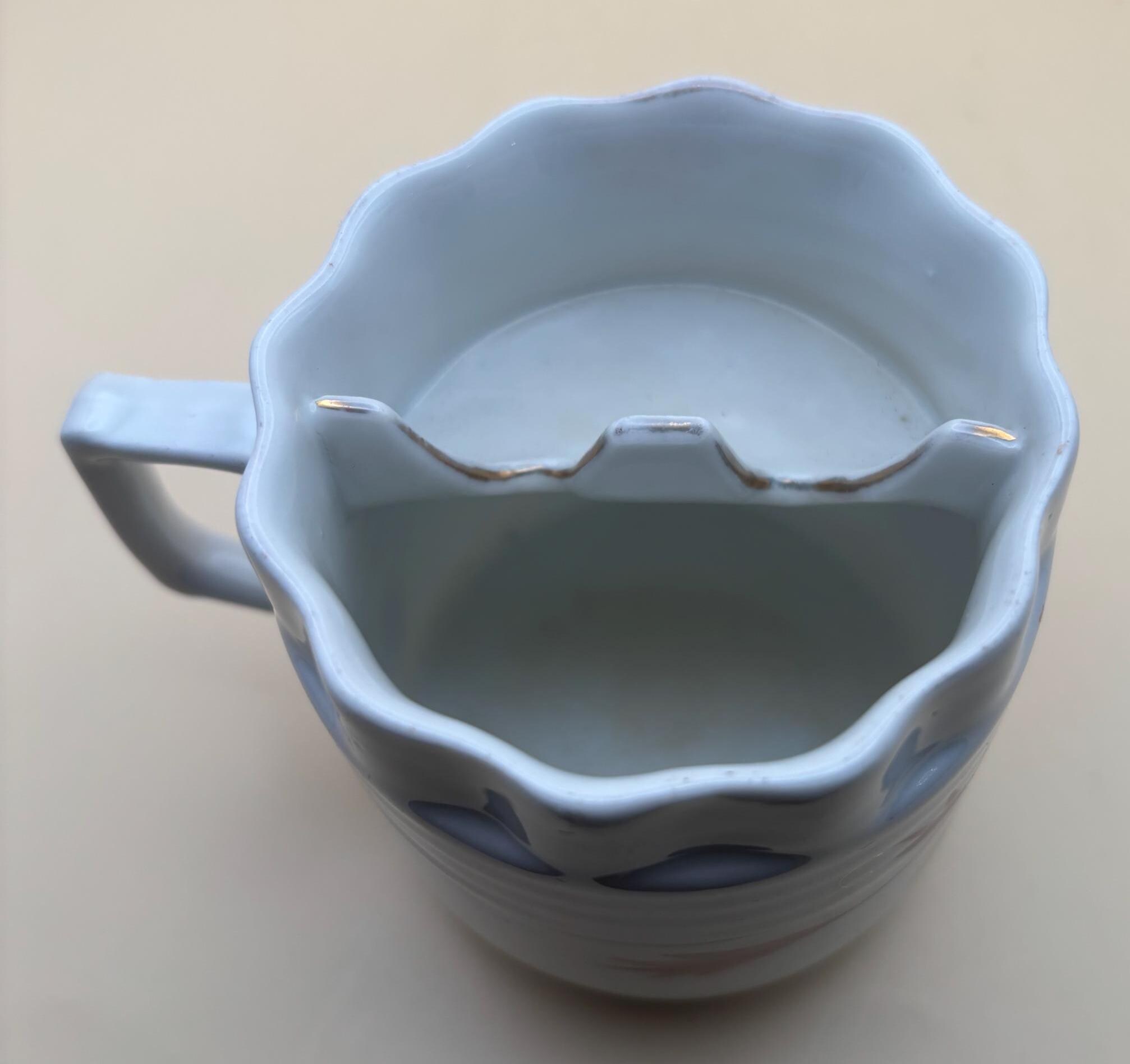 We have a lovely Antique Shaving Mug or Mustache Mug. A hard to find piece from the past! I do no see a signature or mark on the bottom.