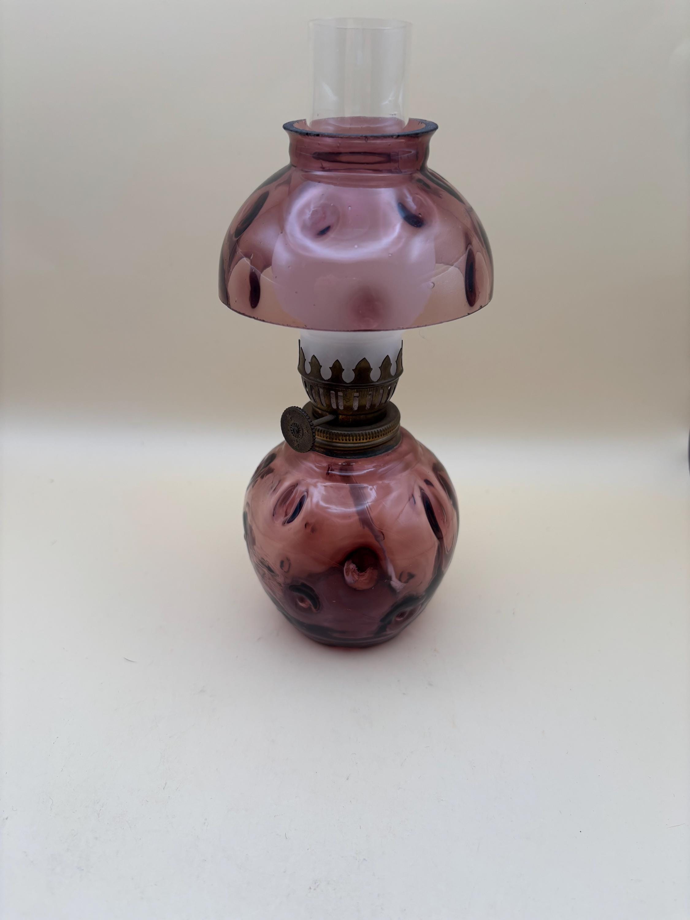 We have a gorgeous Antique P & A Mfg Co. Acorn Oil Lamp Cranberry Inverted Thumbprint Miniature Burner. Circa 1890.