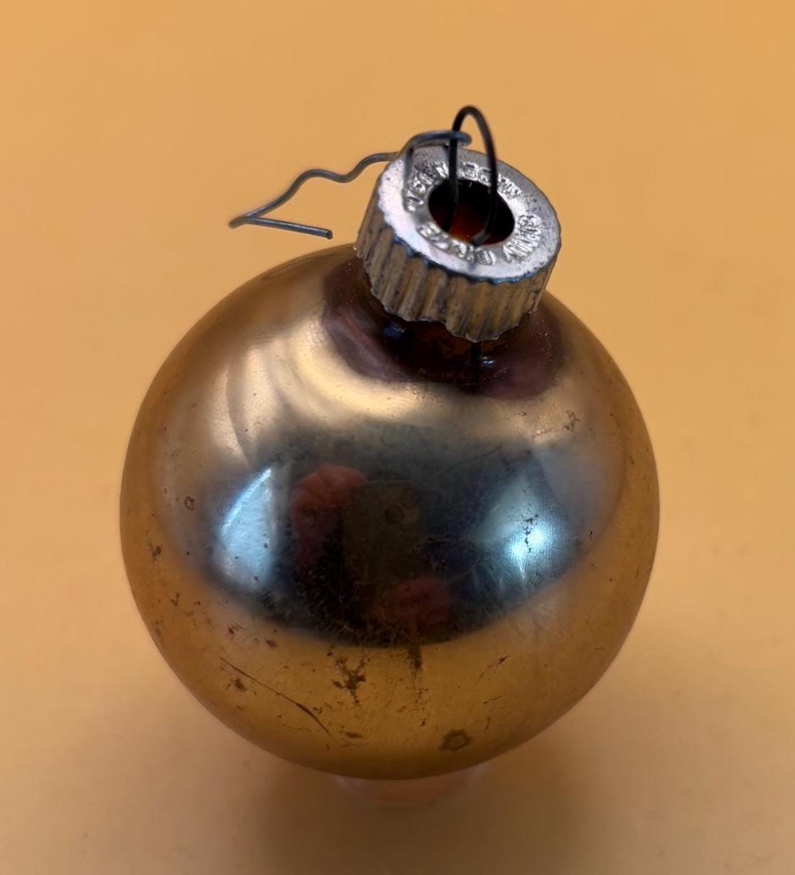 - Authentic vintage peach shiny Brite circle ornament