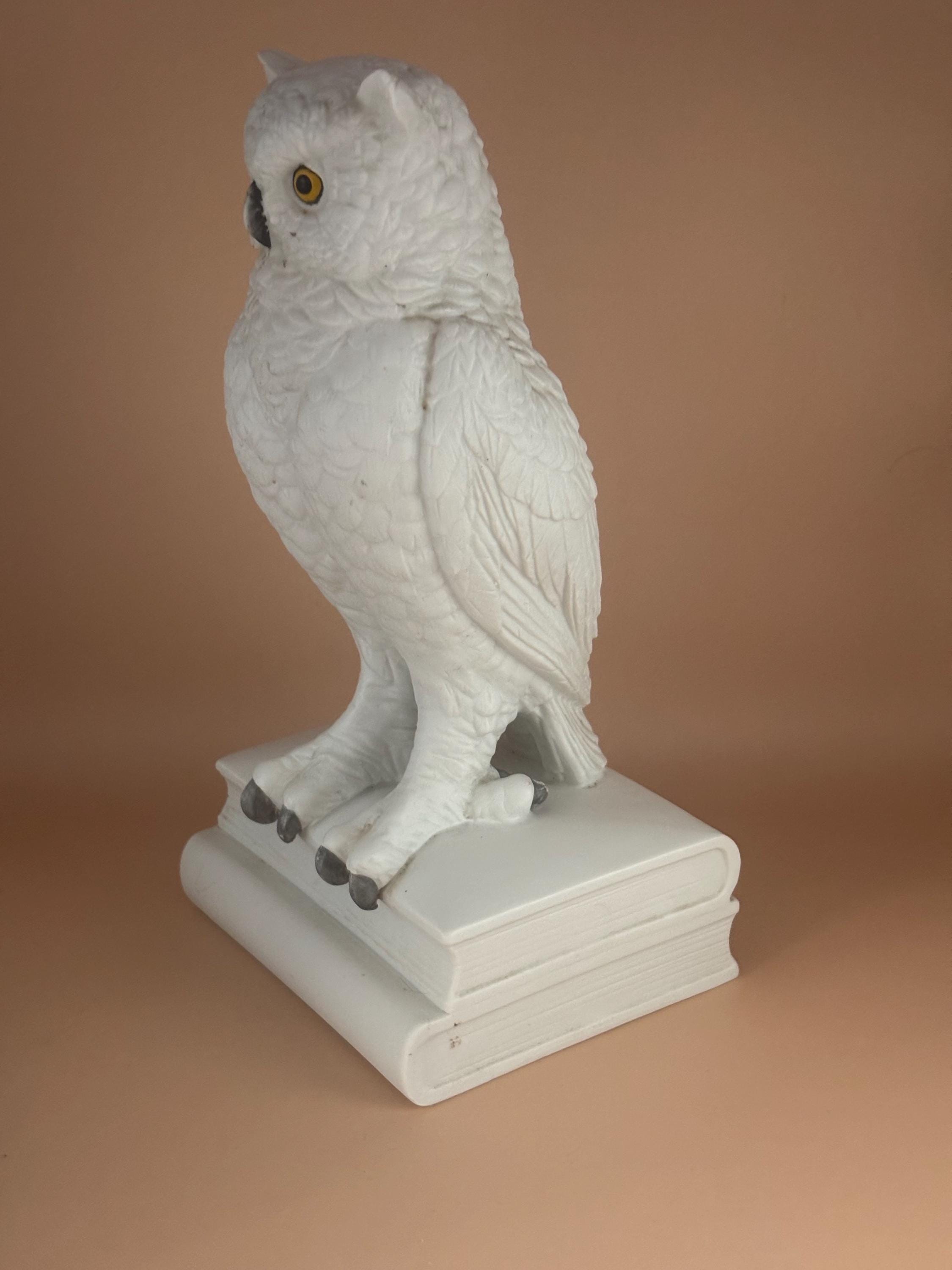 We have a gorgeous Vintage Porcelain Owl Standing on Books. It is numbered 7454 and has a label Andrea by Sadek, Made in Japan.