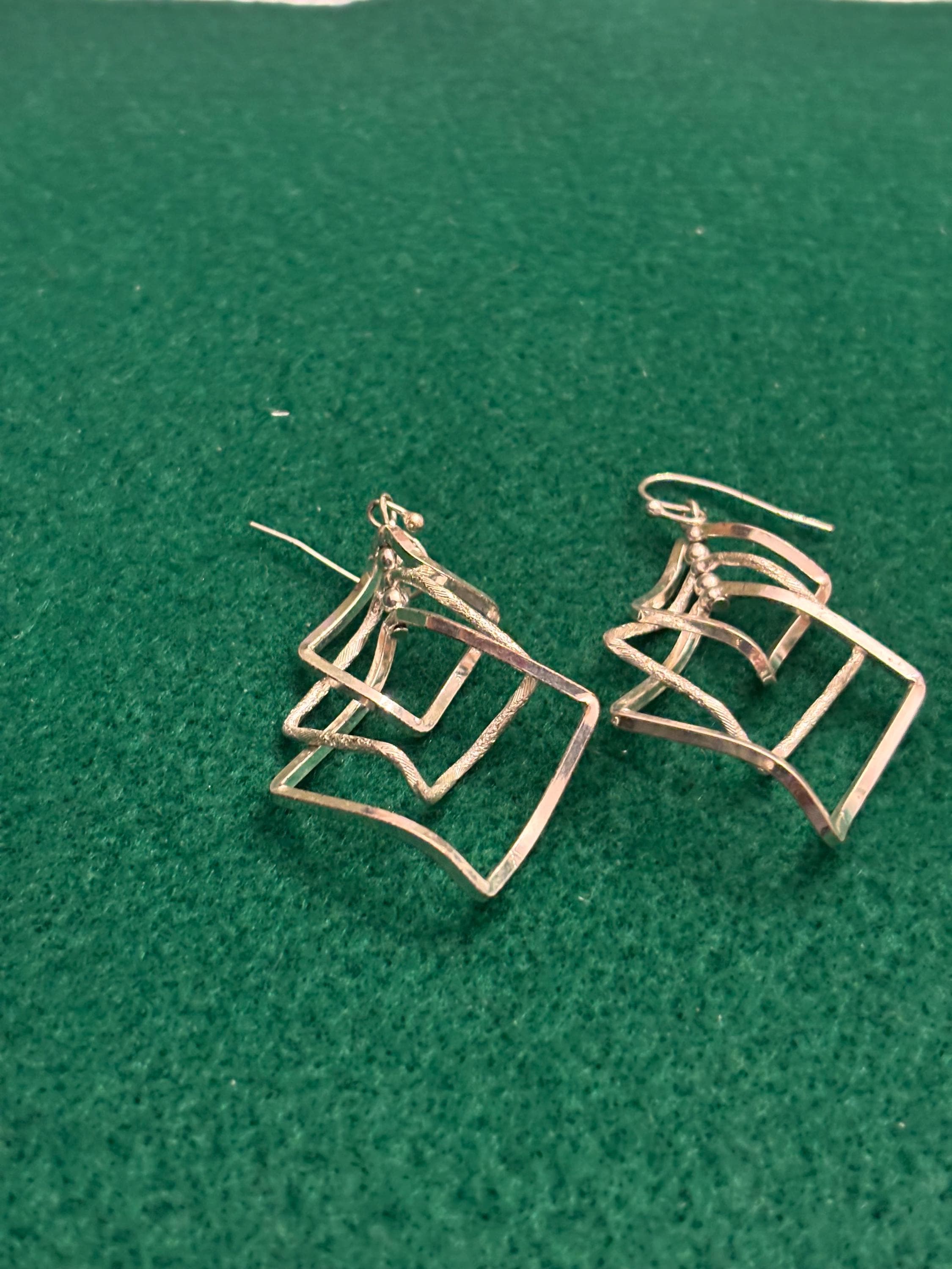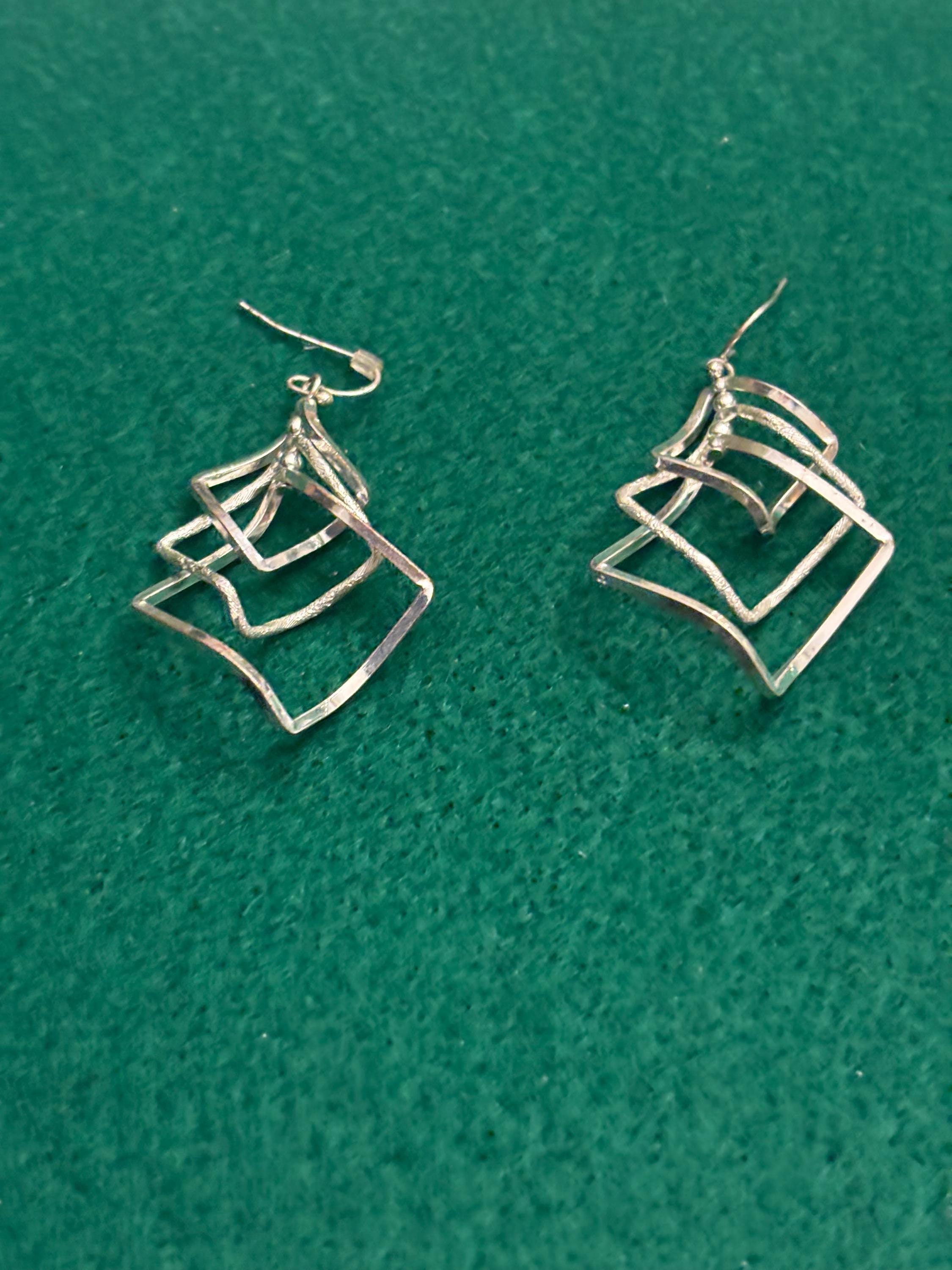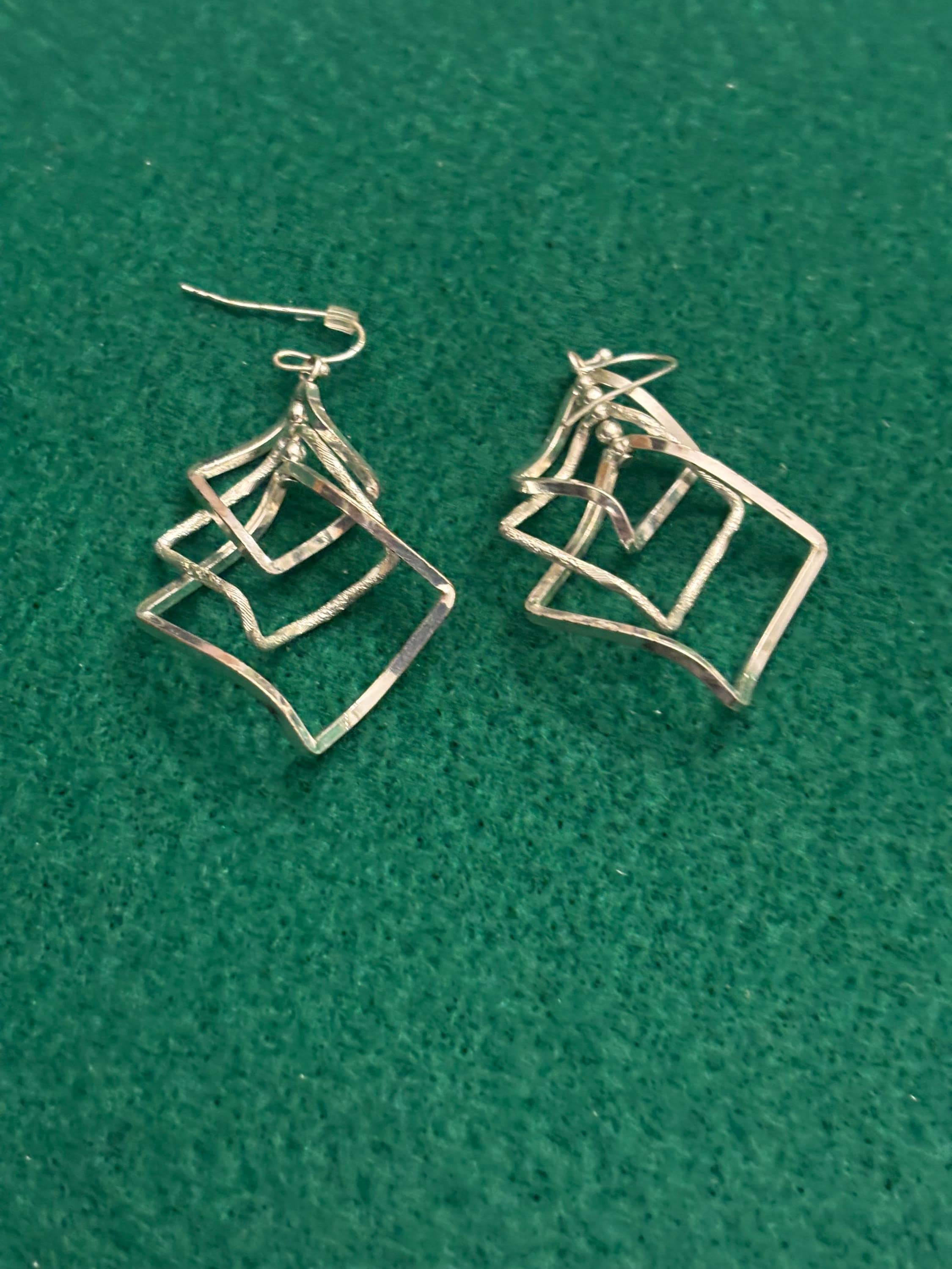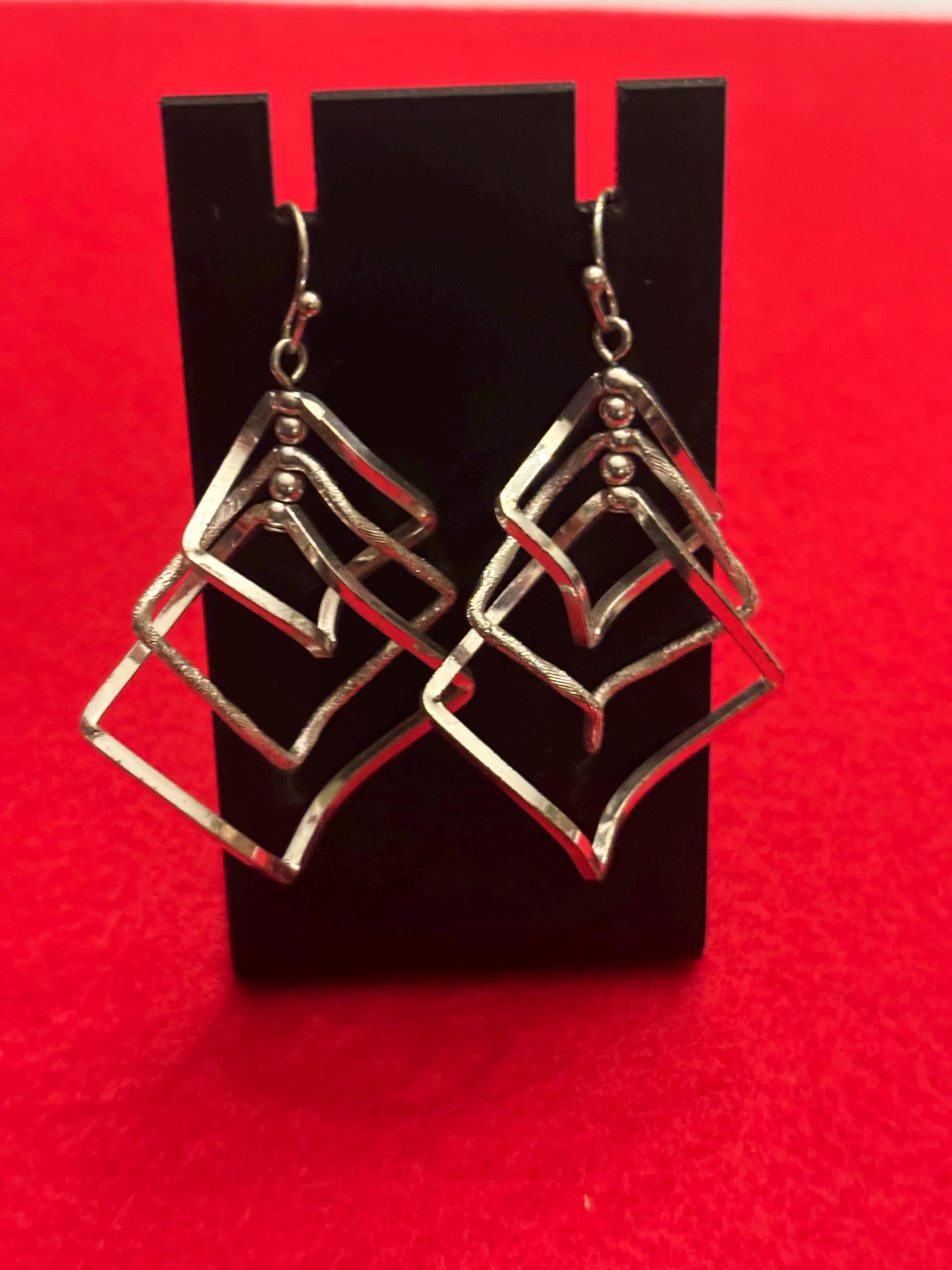 We have a lovely Vintage Sterling Silver Triple Layer Dangle Earrings.