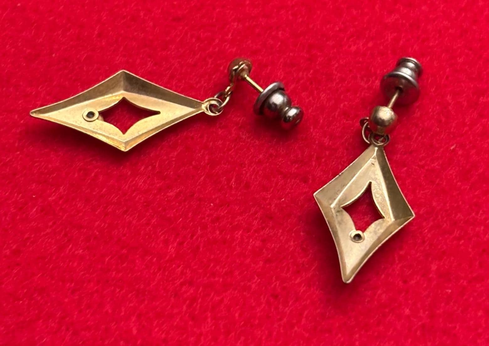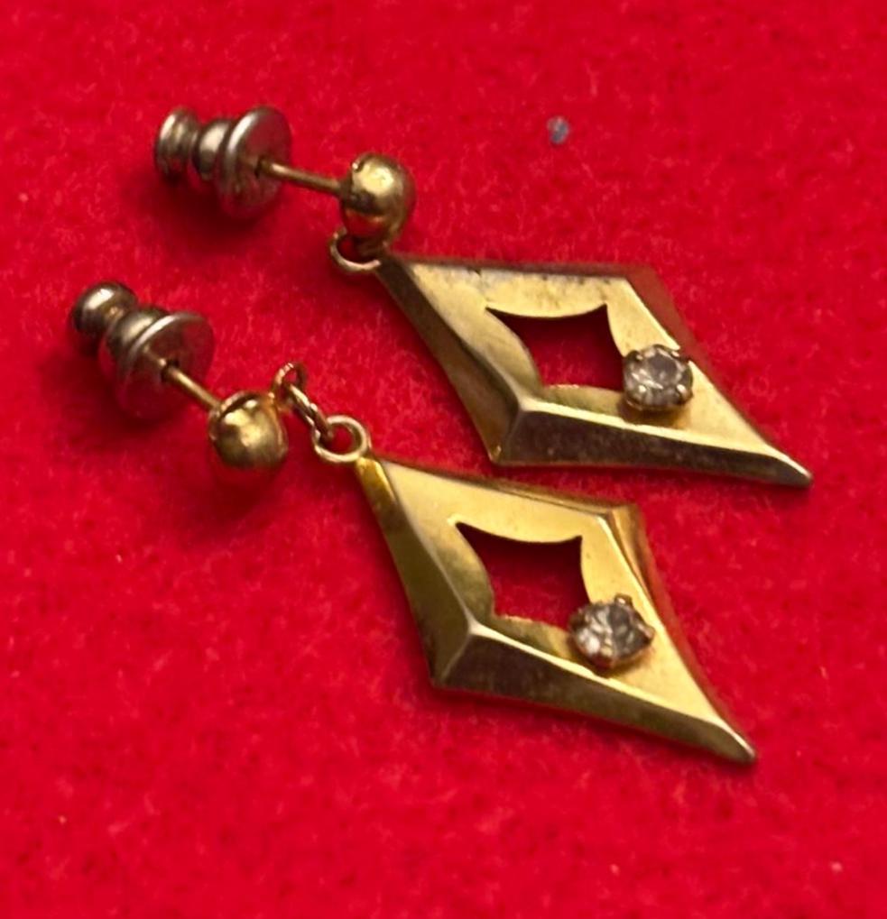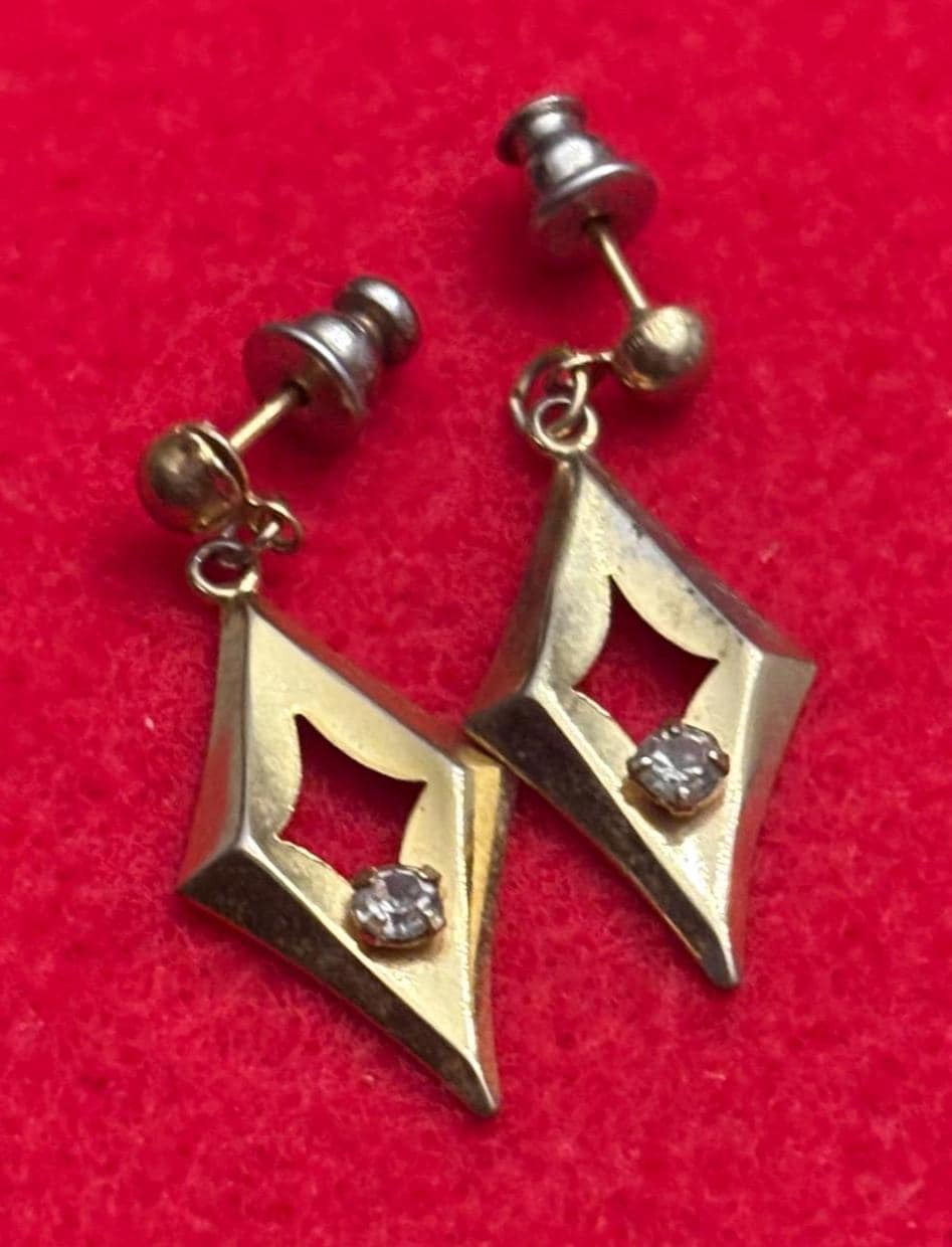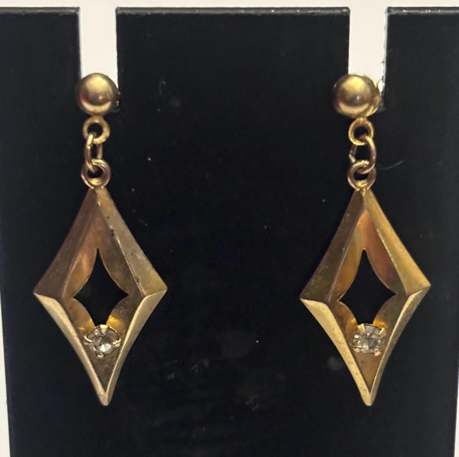 We have a lovely Vintage Diamond Shaped Gold Earrings. They are in Very Good Condition.