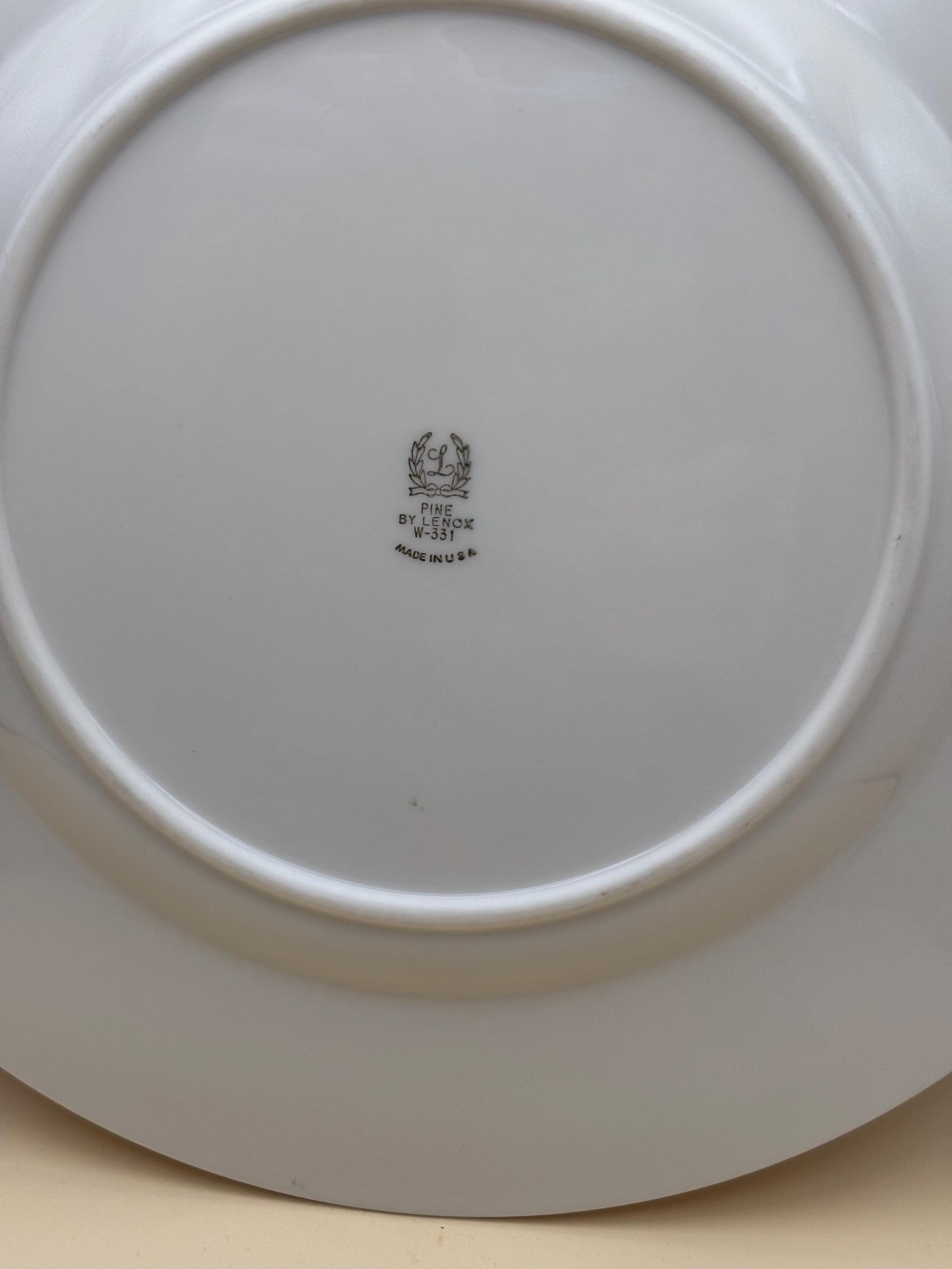 We have a gorgeous Vintage Lenox Pine Salad Plate. This is for 1 plate but we do have 3 of them available.