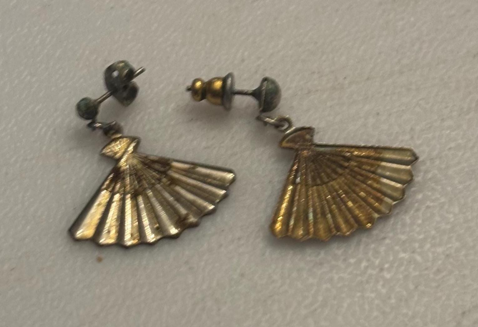 We have a lovely Vintage Gold Tone Fan Earrings.