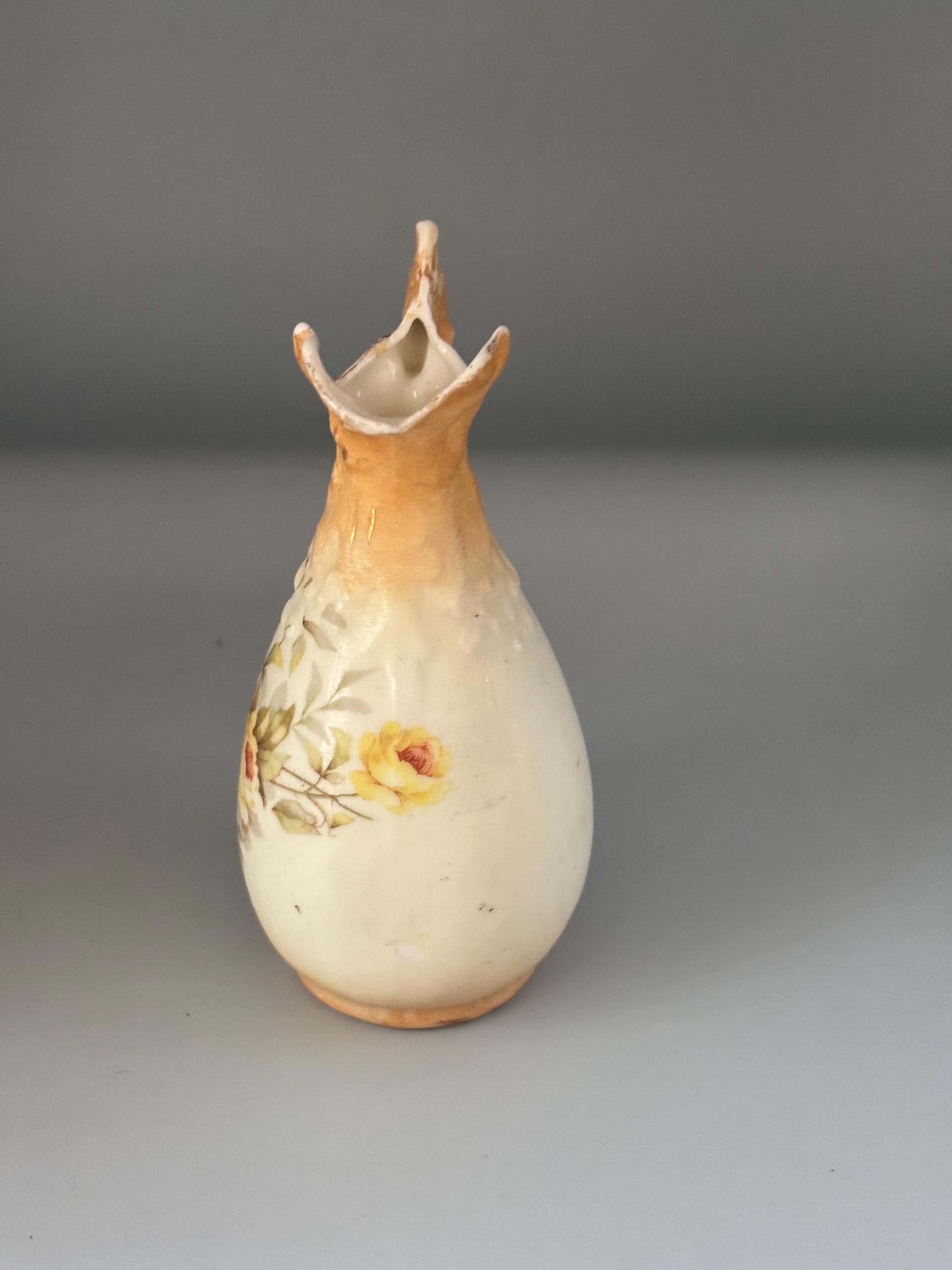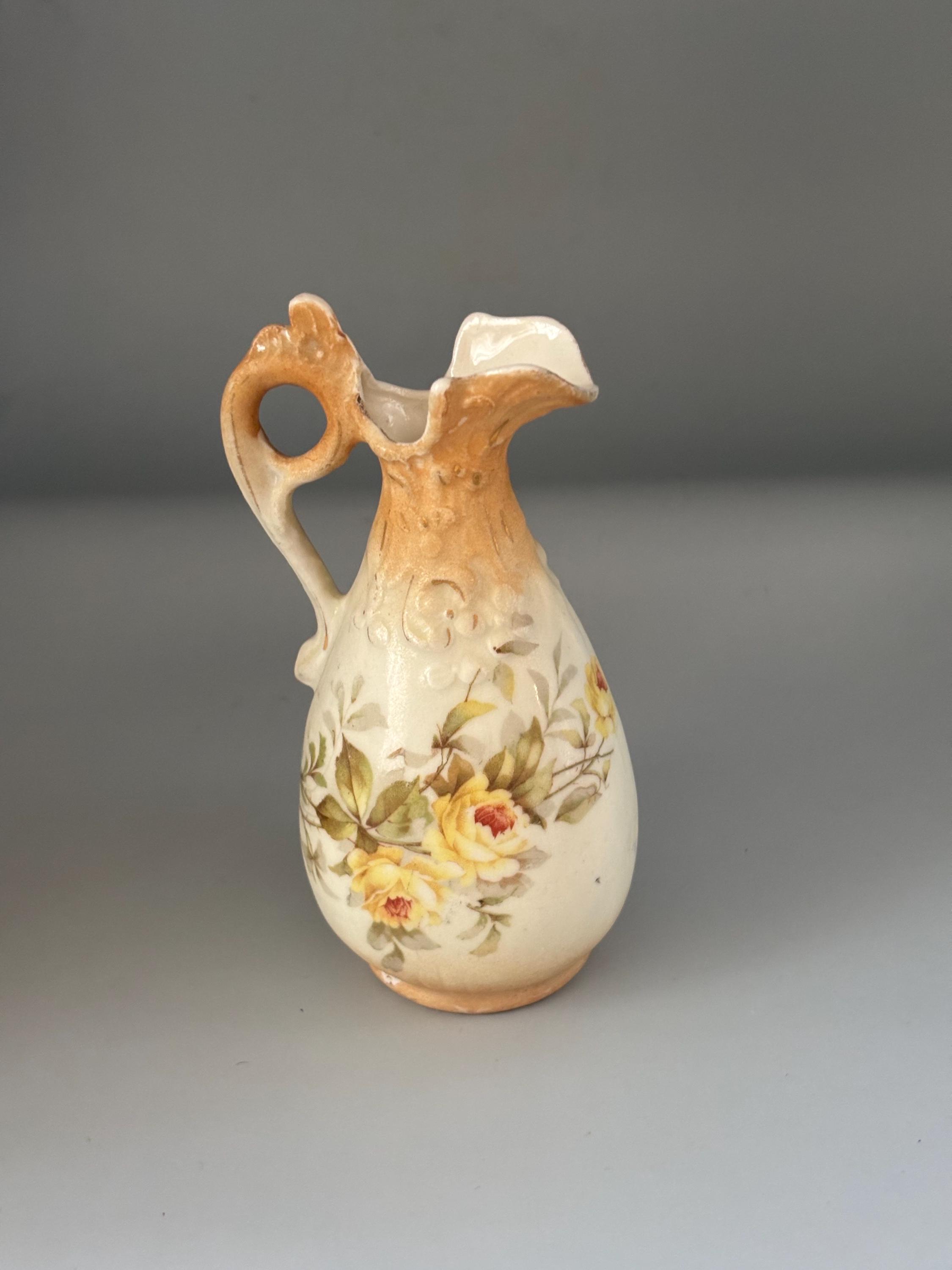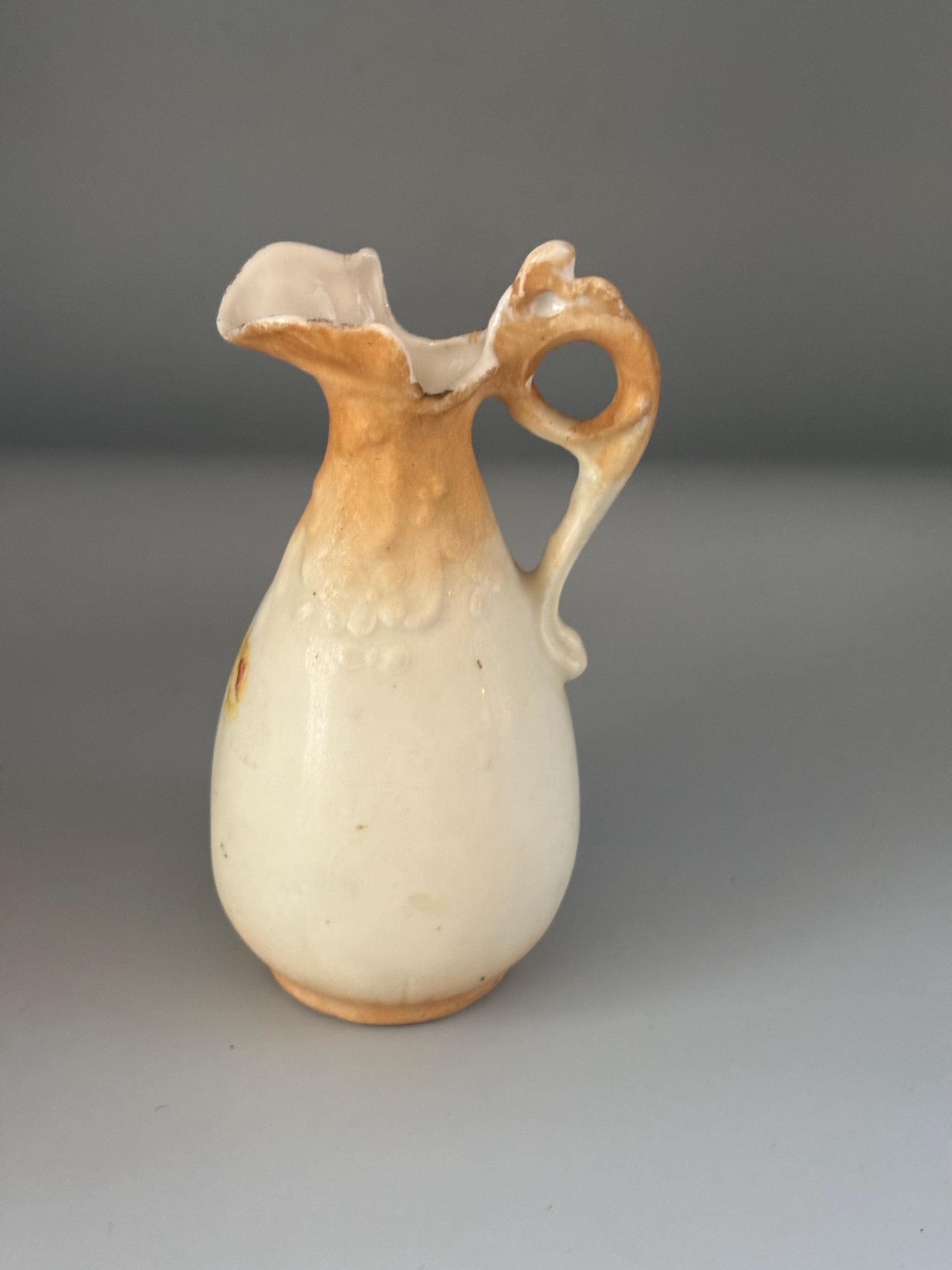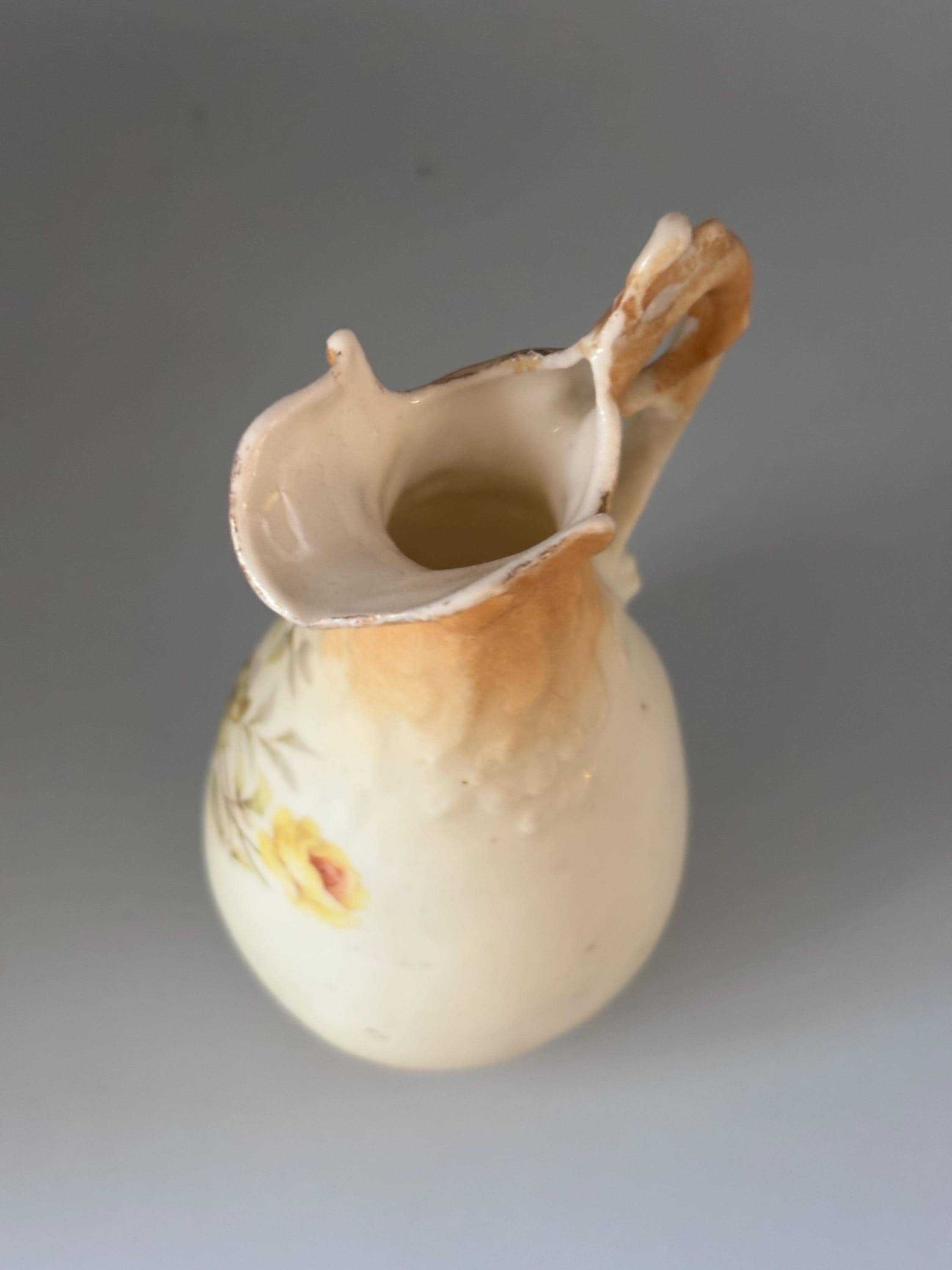 Measuring approximately 4 1/2 inches high, this vintage pitcher is both a functional and decorative piece. Its gracefully curved handle and beautifully formed spout make it a lovely creamer pitcher or display piece. Whether you're a porcelain lover, a collector of antique pitchers, or searching for a distinctive gift, this Bennington Parian Pitcher stands out with its rich history and detailed craftsmanship.