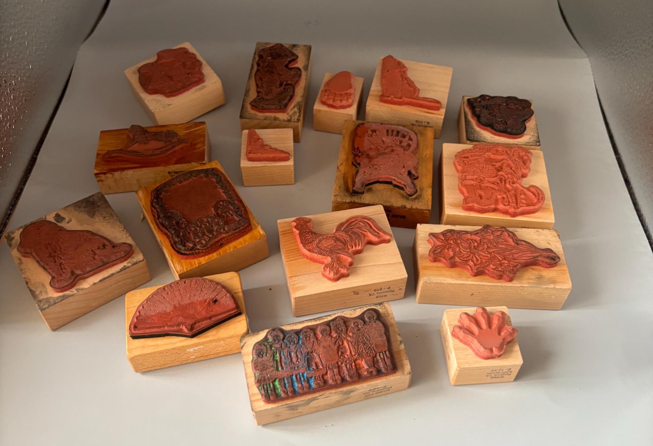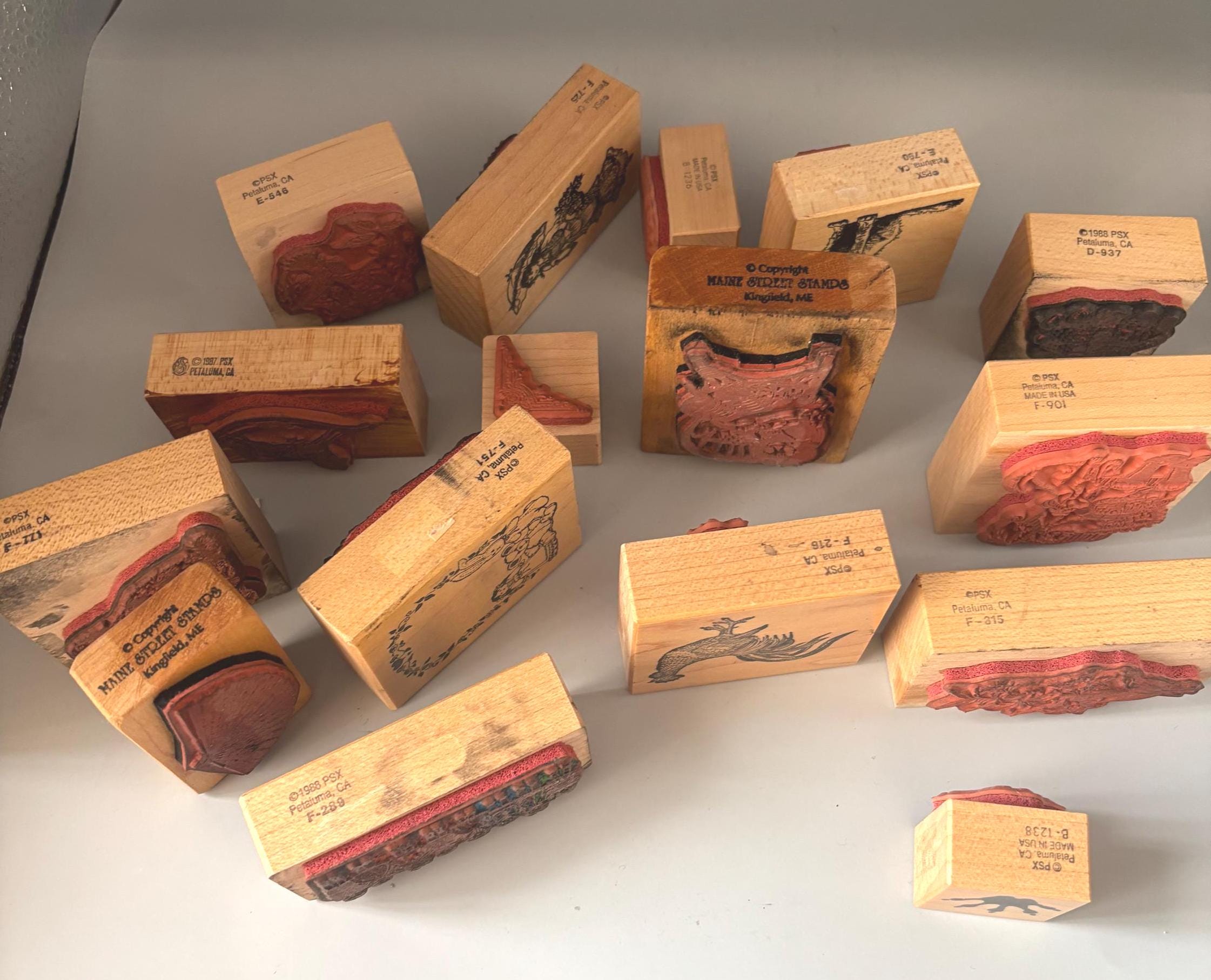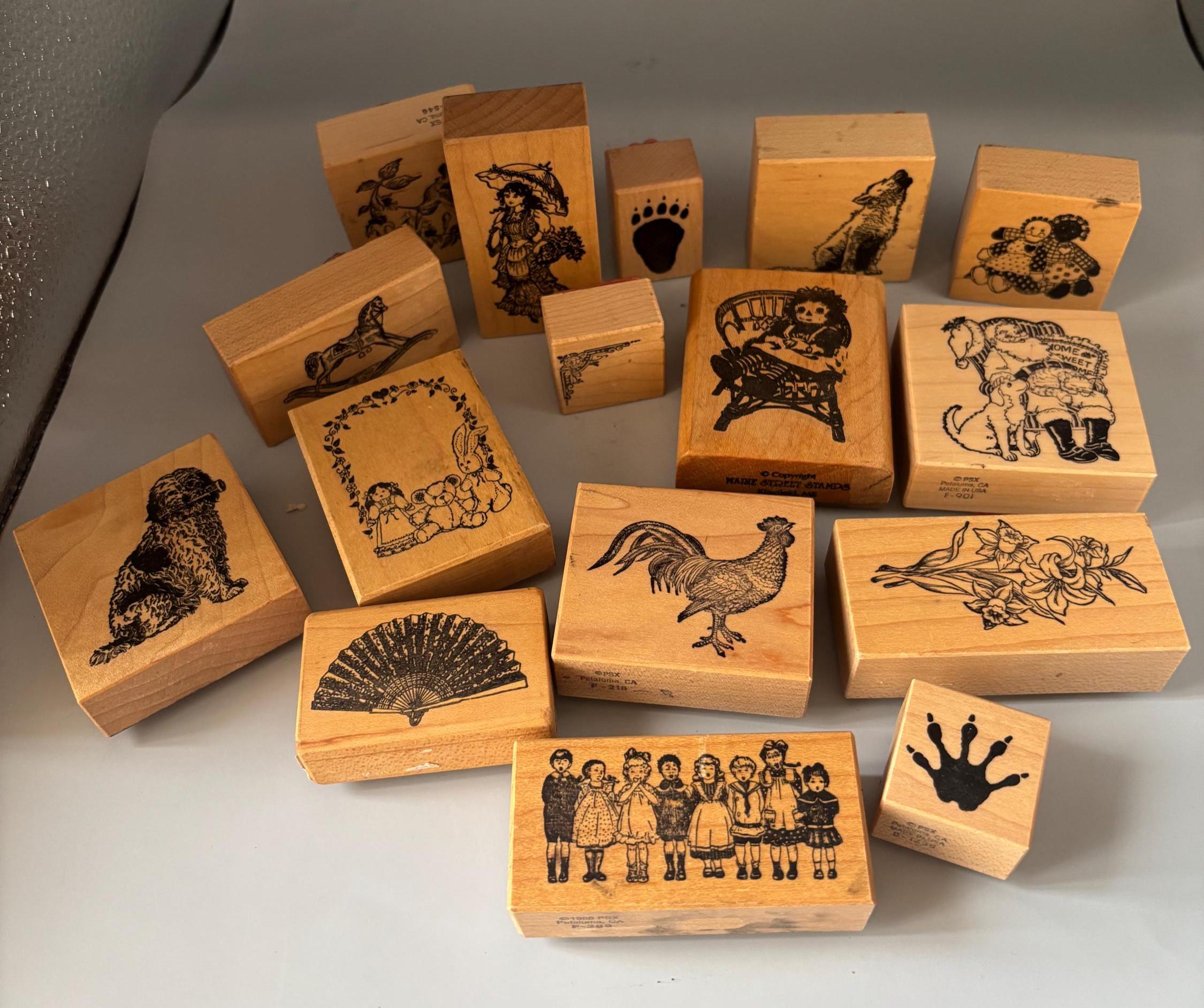 We are delighted to be featuring this Collection of Vintage Rubber Die Stamps. There are 16 included in this collection.