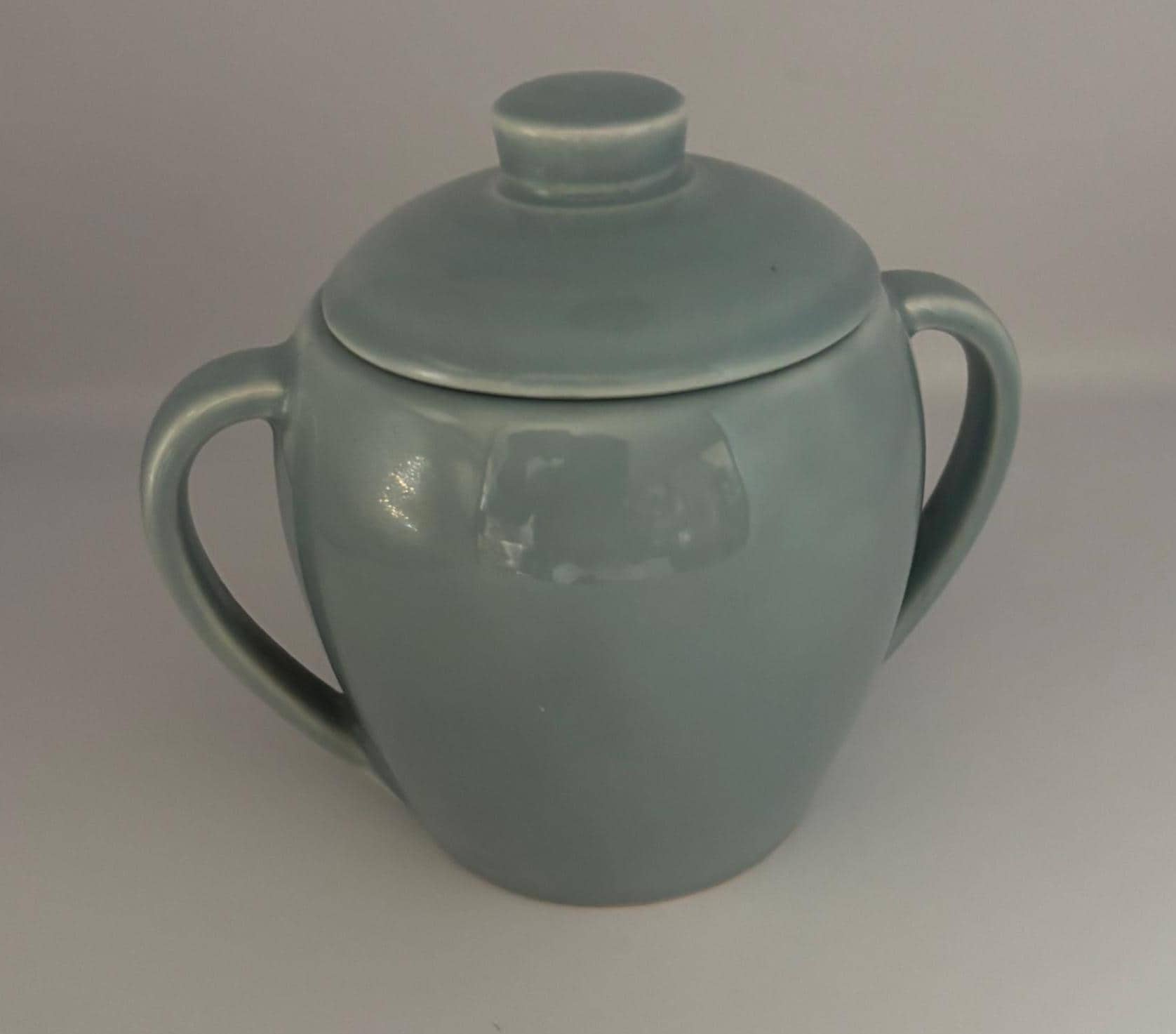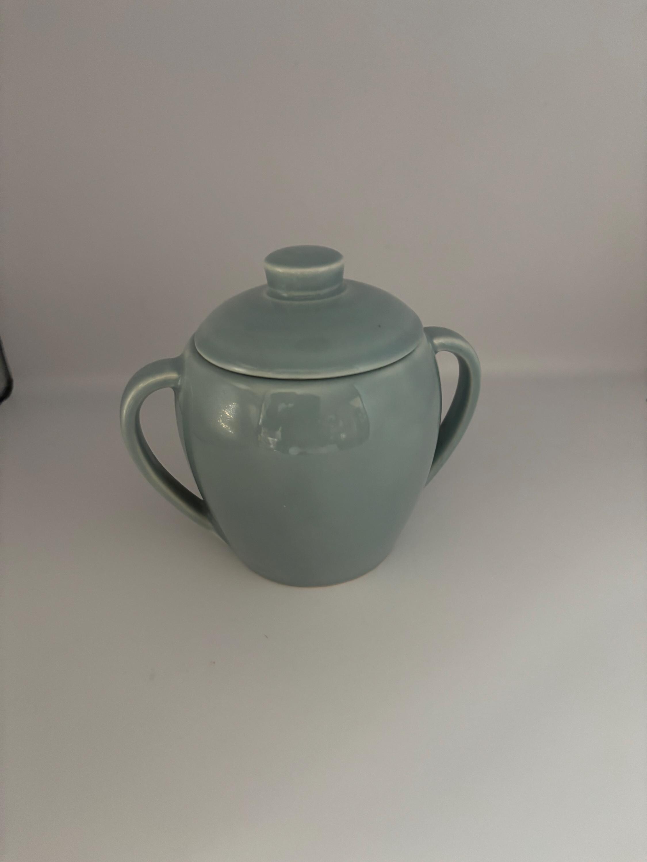 We are delighted to be featuring this Vintage Knowles Sugar Bowl in Celadine Green/Light Blue.