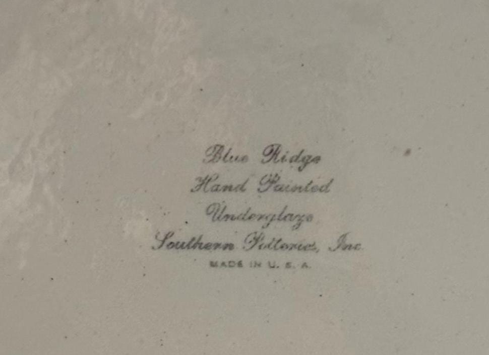We are delighted to be featuring this lovely Blue Ridge Blue Bell Bouquet Plate. Vegetable or Serving Bowl. It is in the desirable Design that was made circa 1930's. It measures approximately 10 1/8" wide.