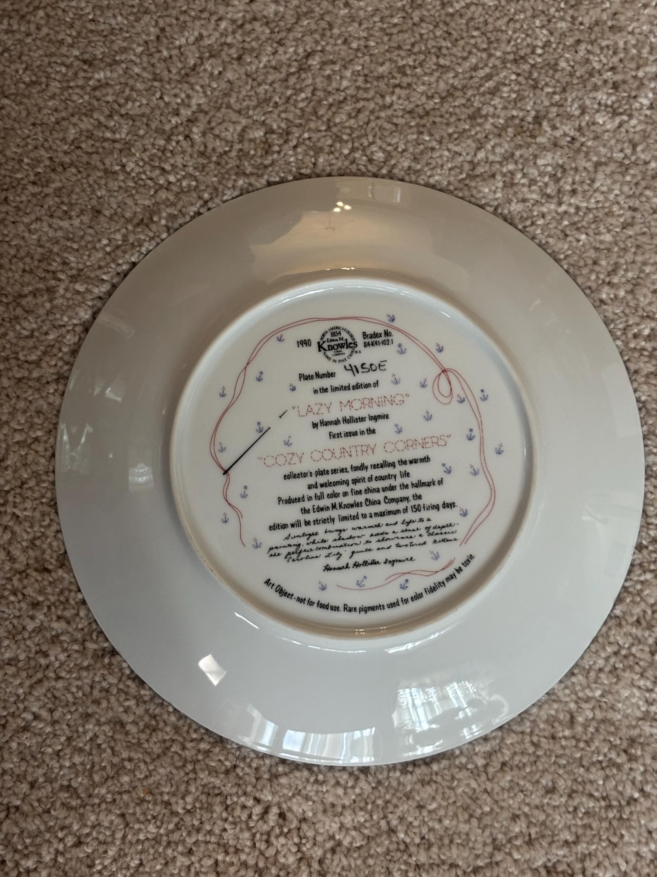 Series Cozy Country Corners, Lazy Morning, Edwin K. Knowles China Company, First Issue Limited Edition.