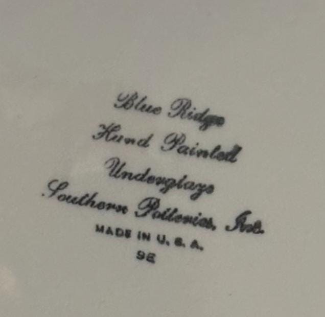 We are delighted to be featuring this lovely Blue Ridge Ashland Dinner Plate. It is in the desirable Design that was made circa 1930's. It measures approximately 9 1/2" wide.