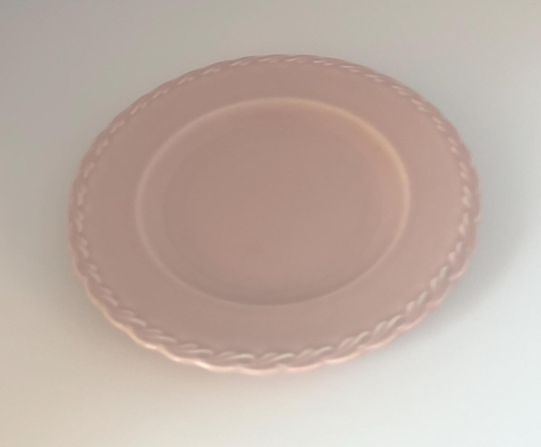 We have a lovely Vernon Kilns Native California Pink Dessert Plate. These pieces wee created by Vernon Kilns, which operated in California from 1931-1958.
