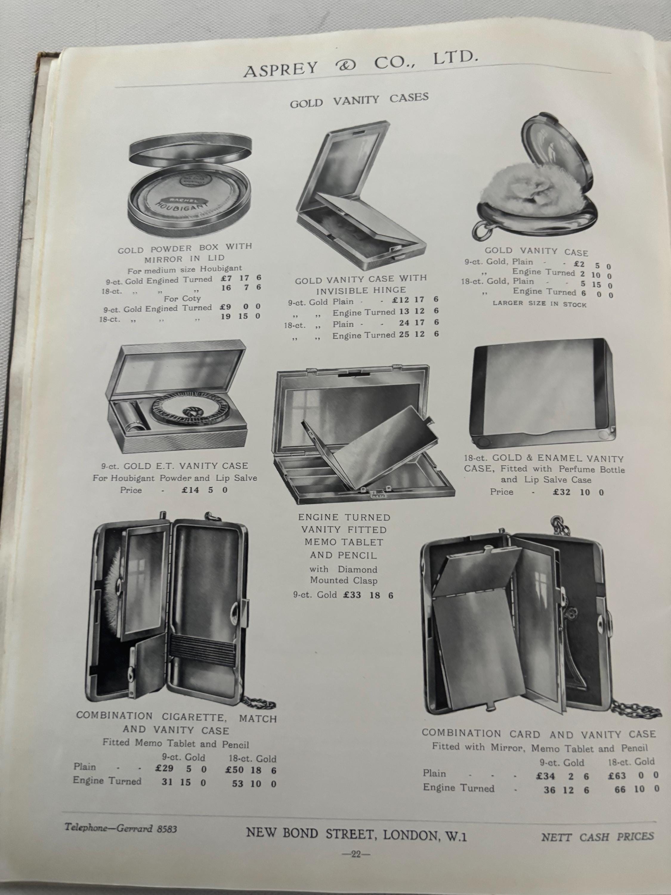 We are delighted to be featuring this book, Asprey & Co. Bond Street London Trade Catalogue from 1930's. This is RARE and a very unique find.