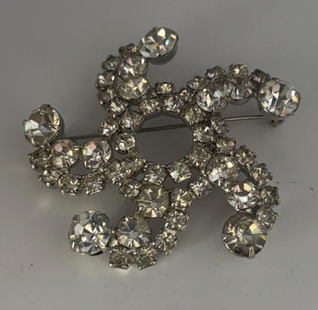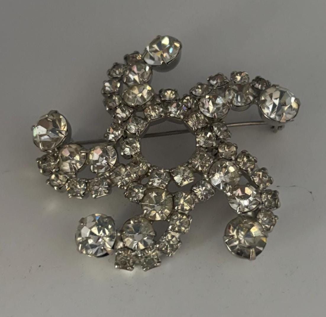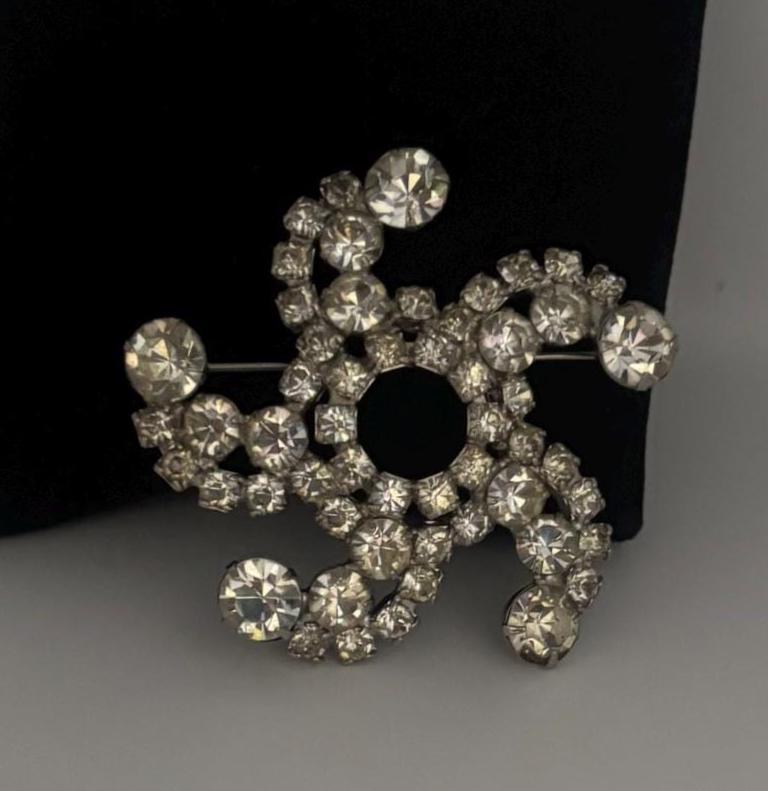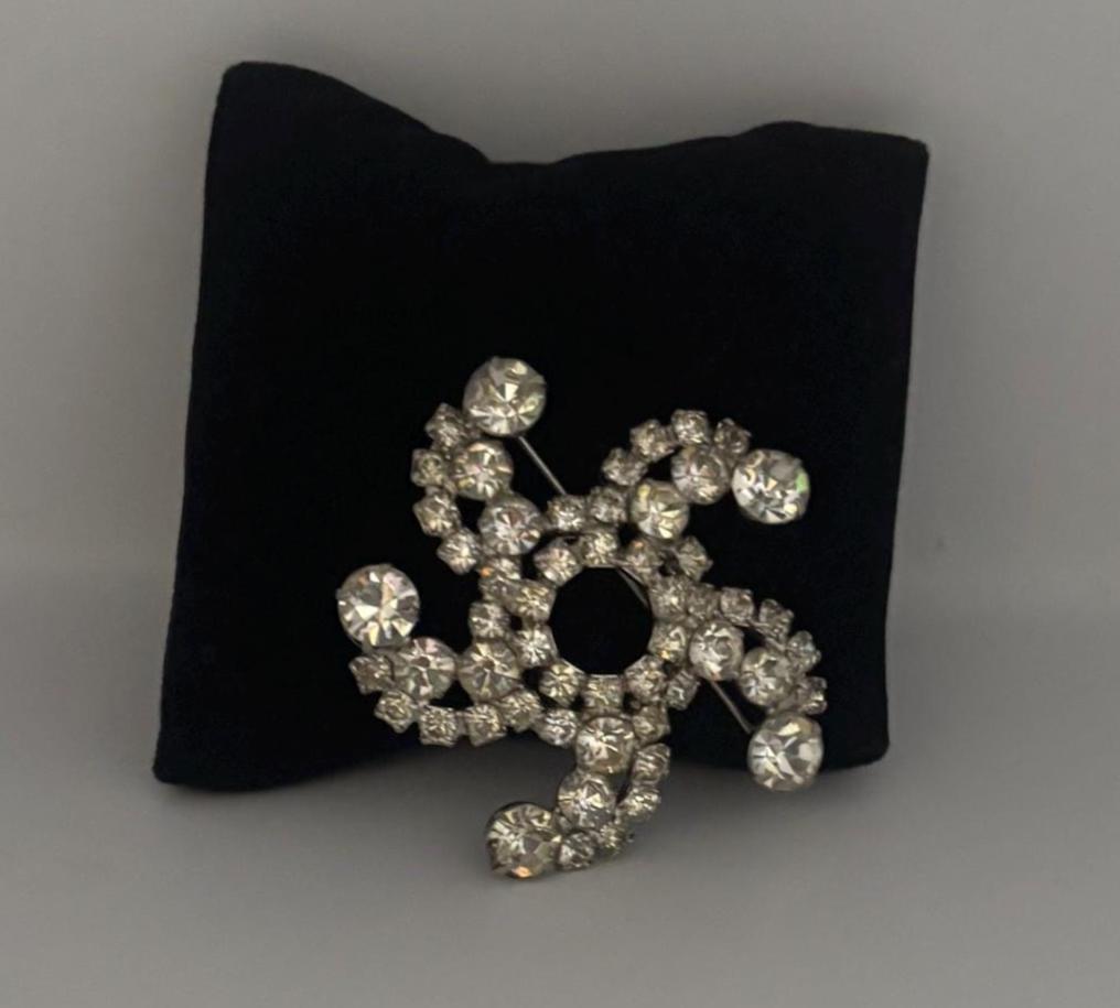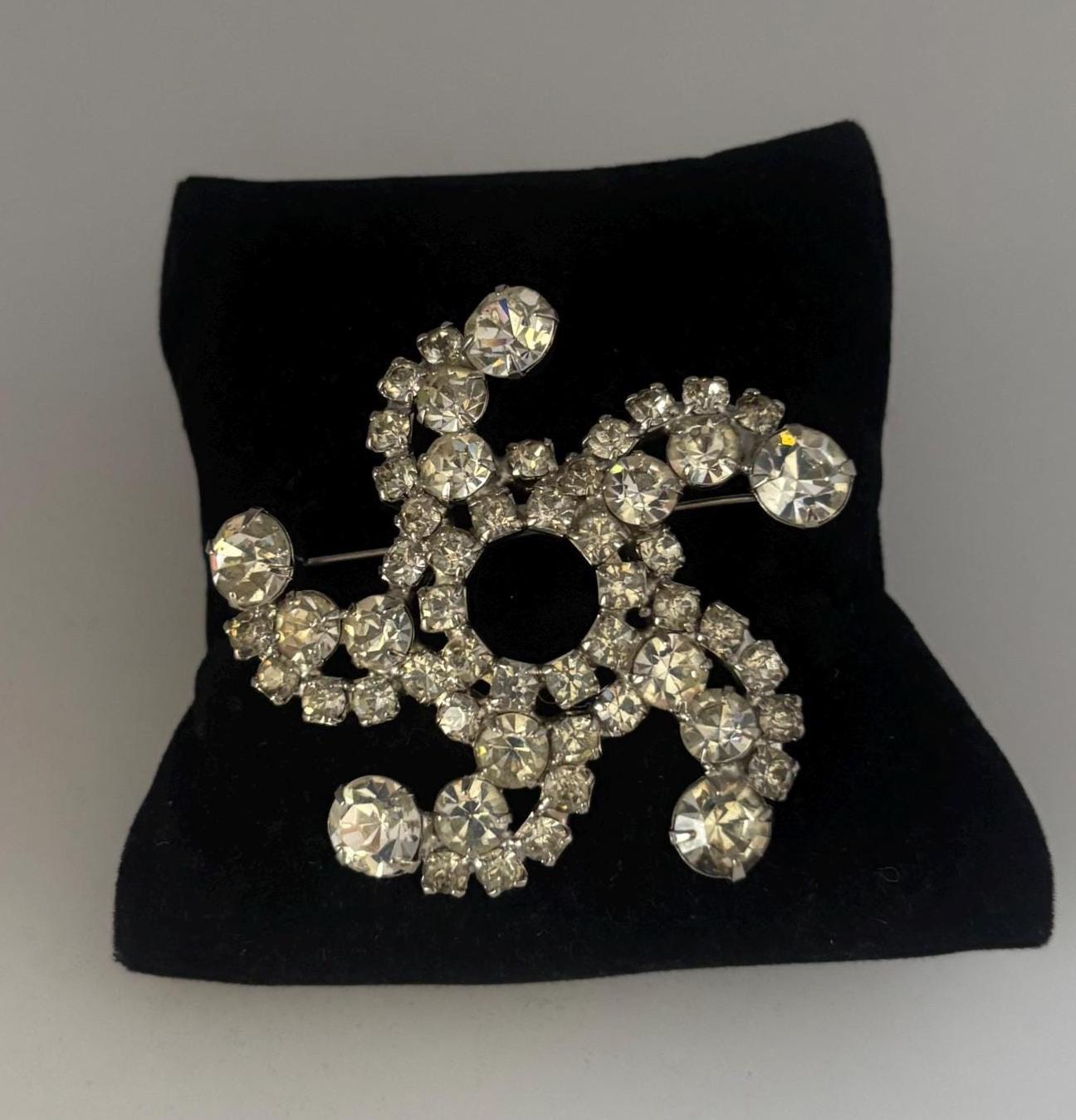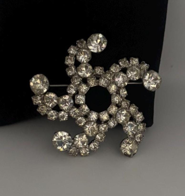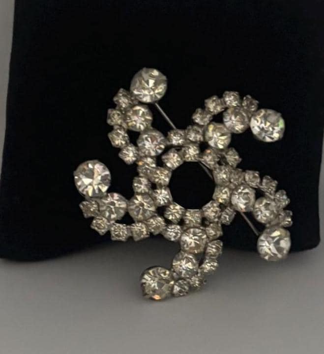 We are delighted to present this sweet yet elegant Vintage Rhinestone Swirl Brooch.