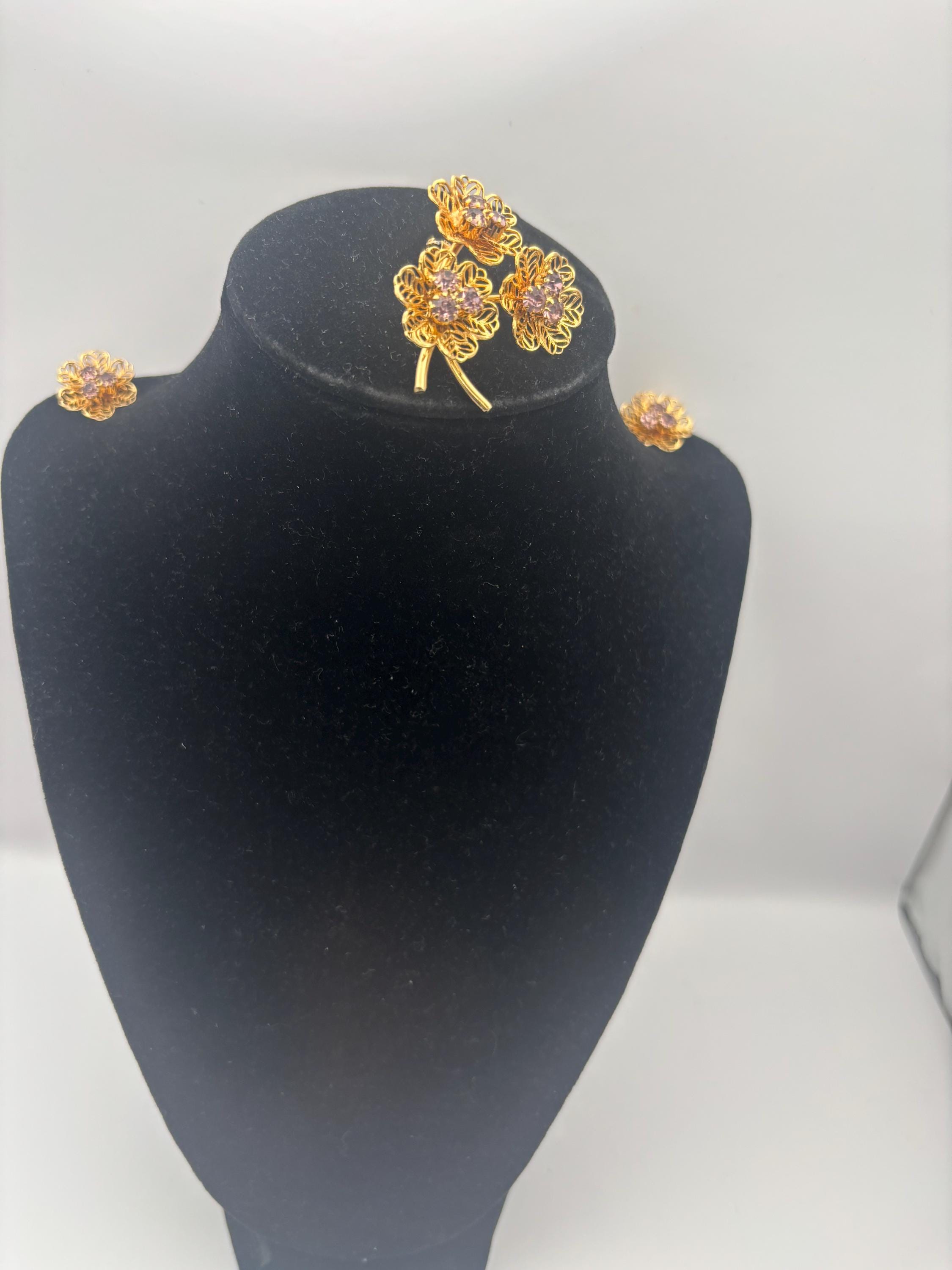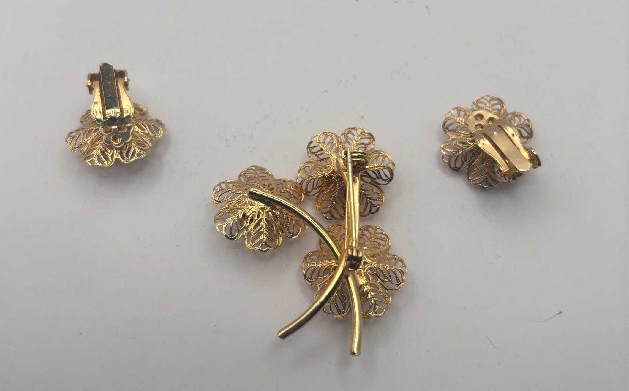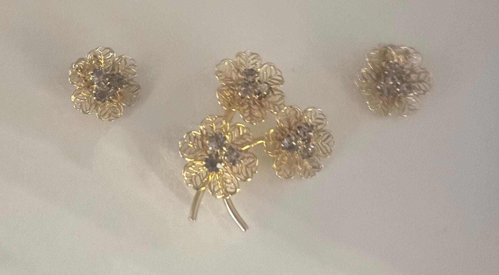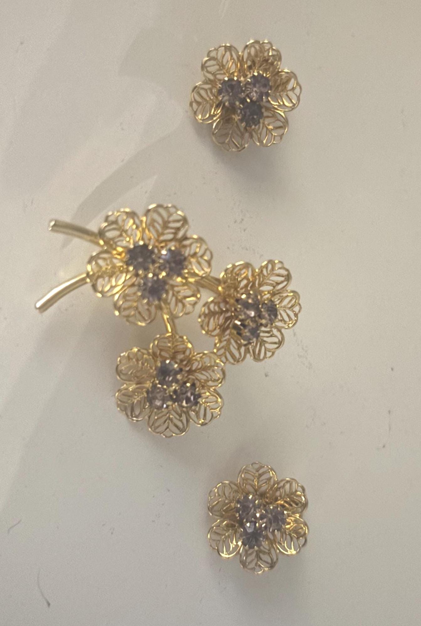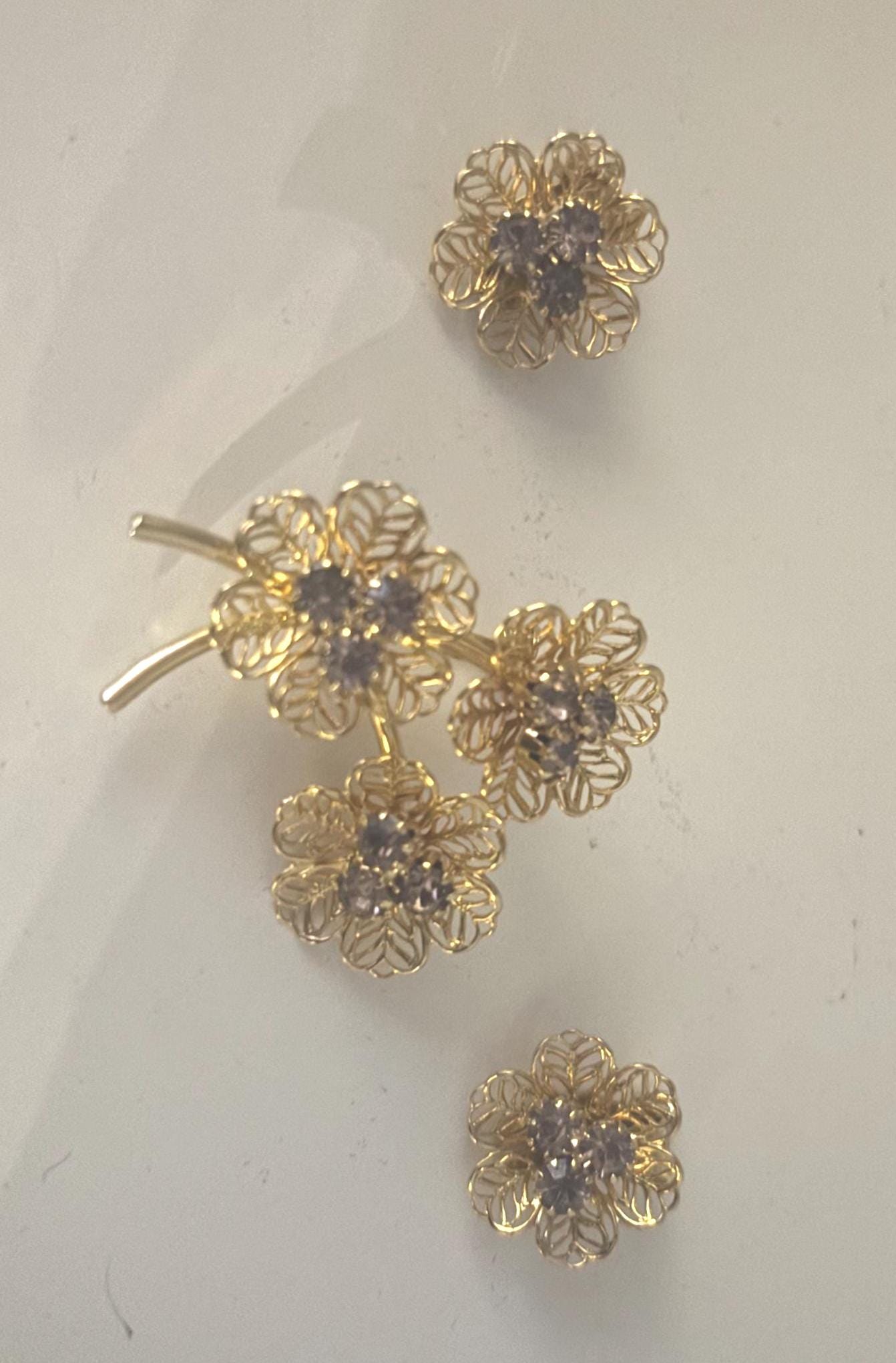 We are delighted to present this sweet yet elegant Vintage Sarah Coventry Allusion Gold Filigree Flower Brooch & Matching Earrings.
