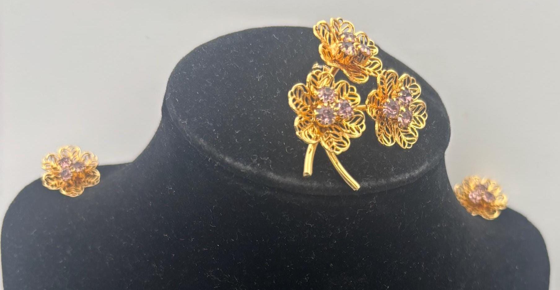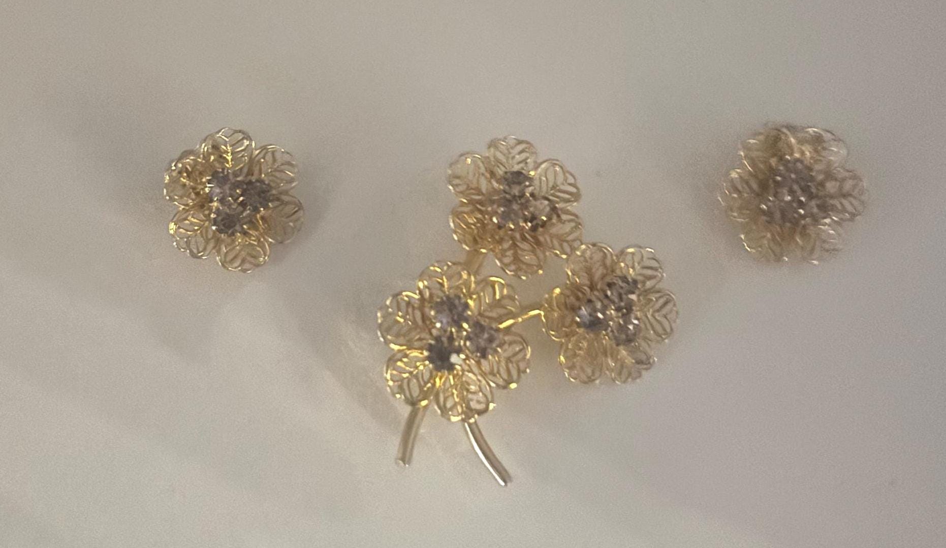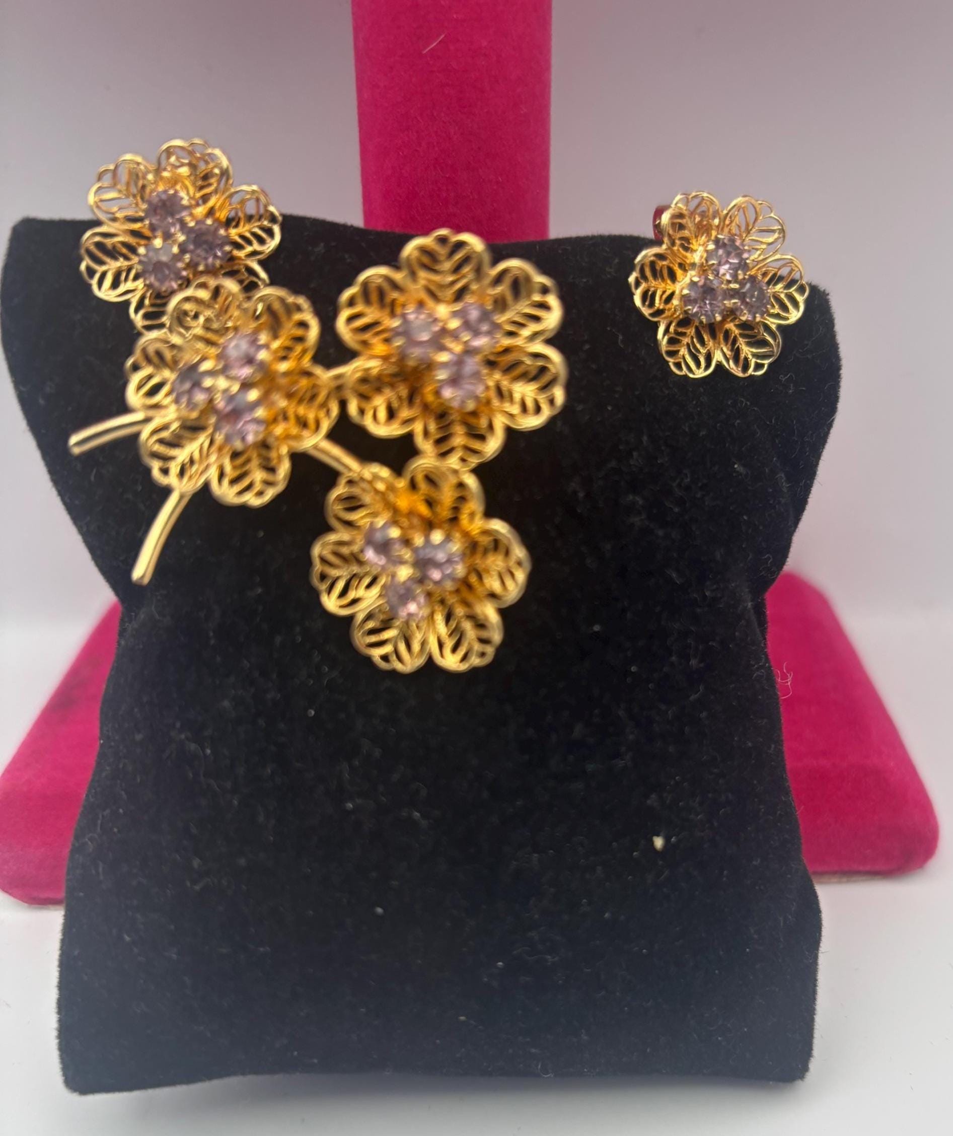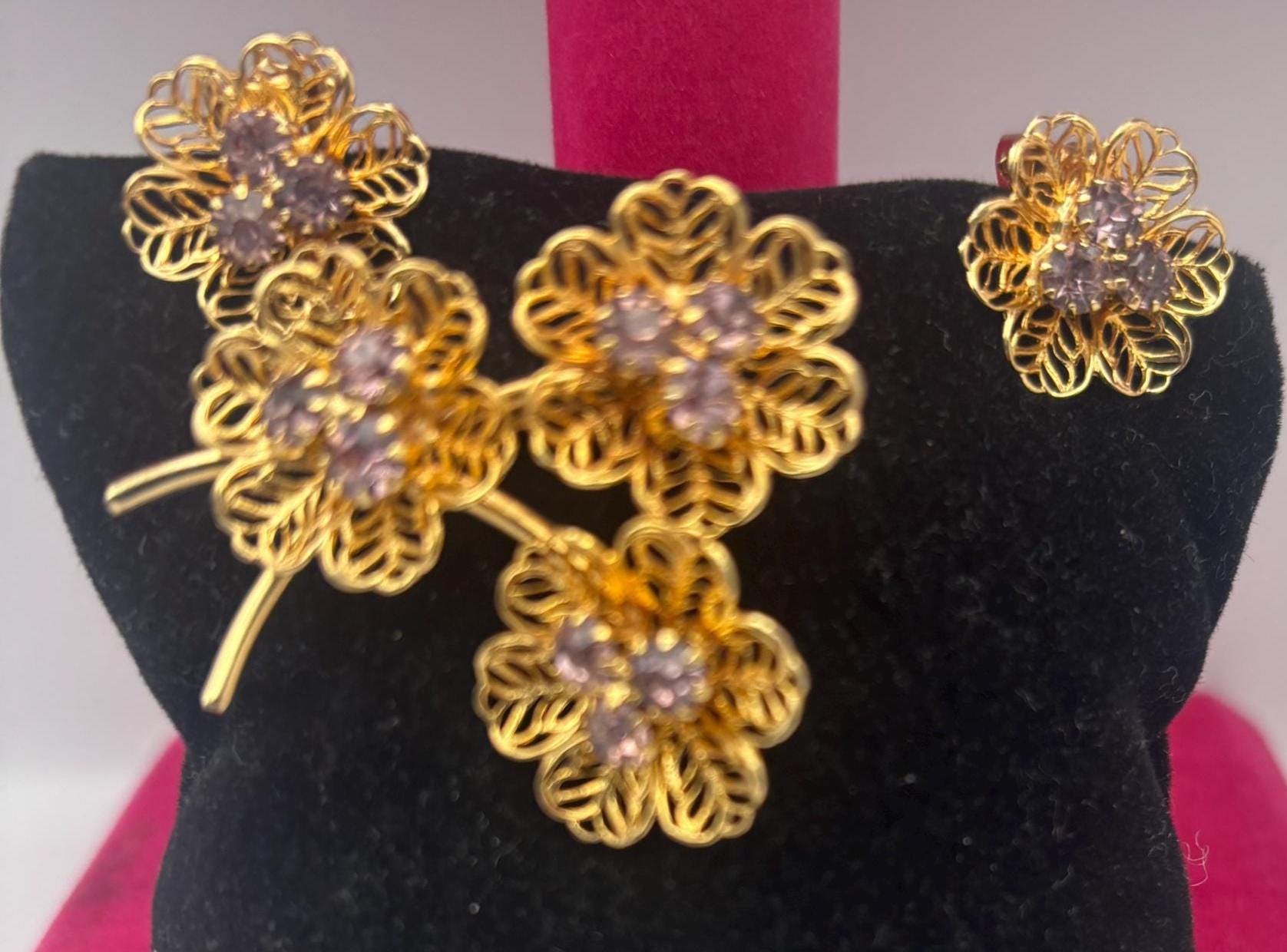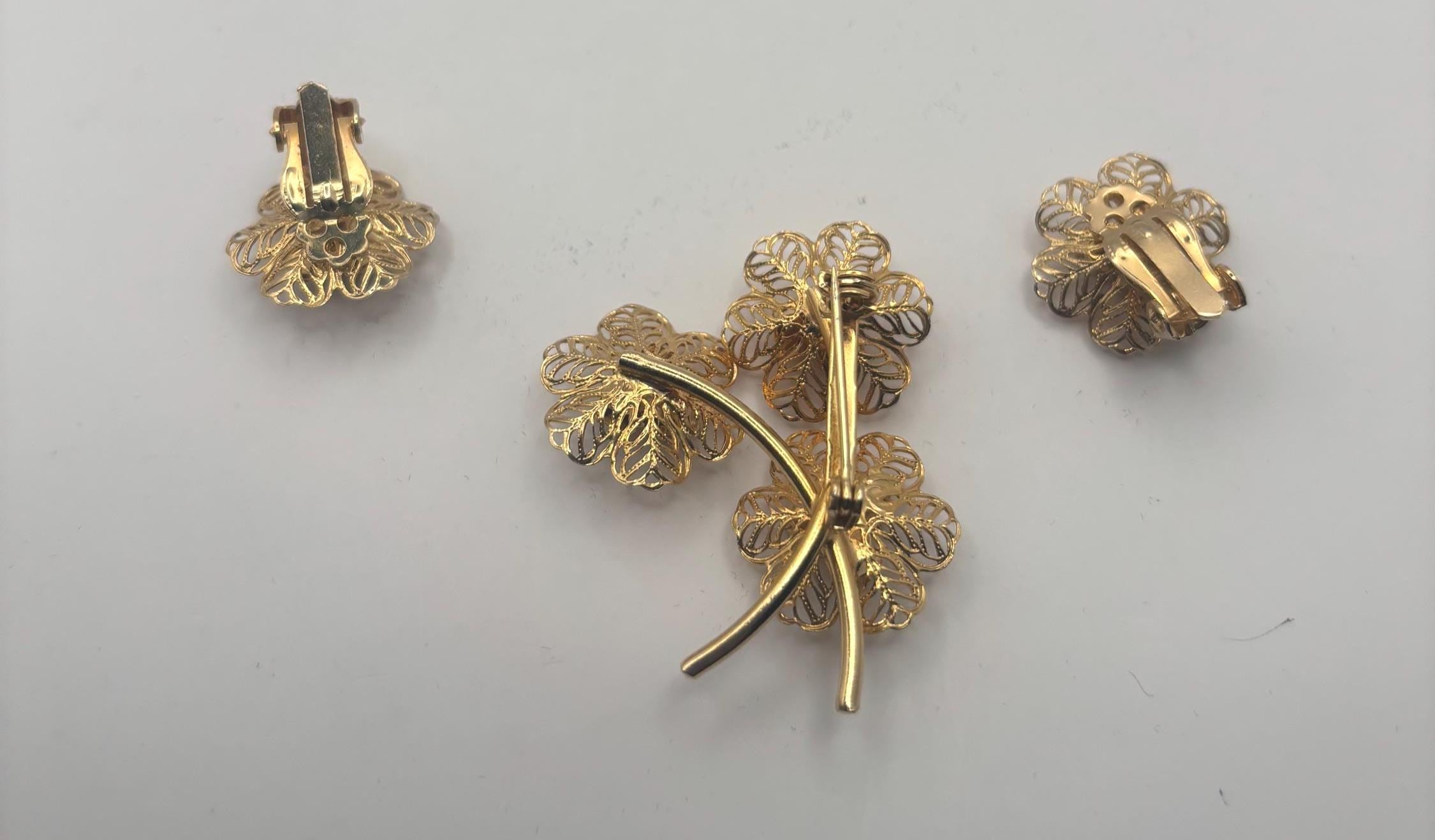 We are delighted to present this sweet yet elegant Vintage Sarah Coventry Allusion Gold Filigree Flower Brooch & Matching Earrings.