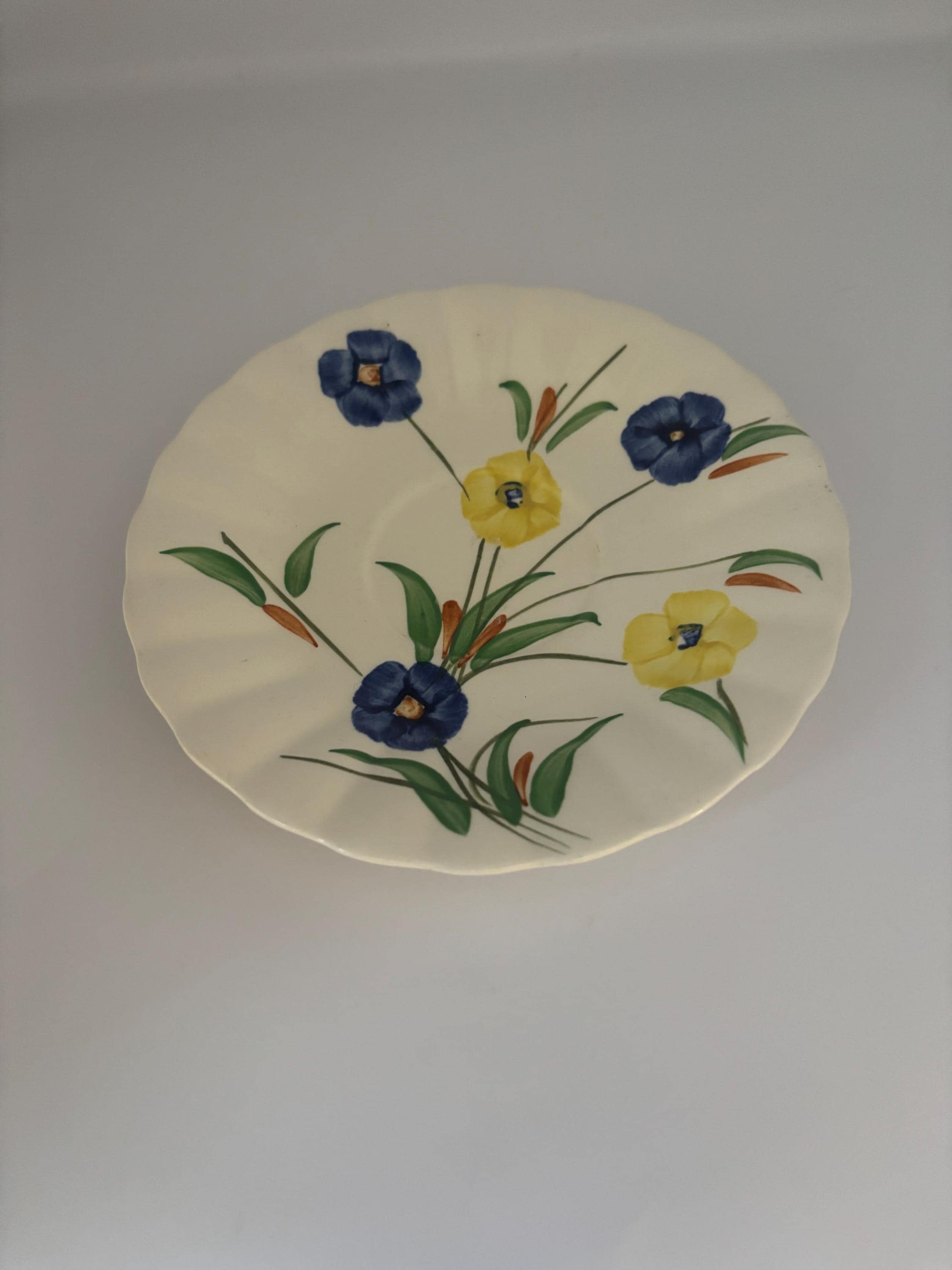 We have a gorgeous, Vintage Blue Ridge Southern Potteries Dinner Plate. It is the pattern Summer Flowers. This is for ONE saucer, but we have TWO currently available.