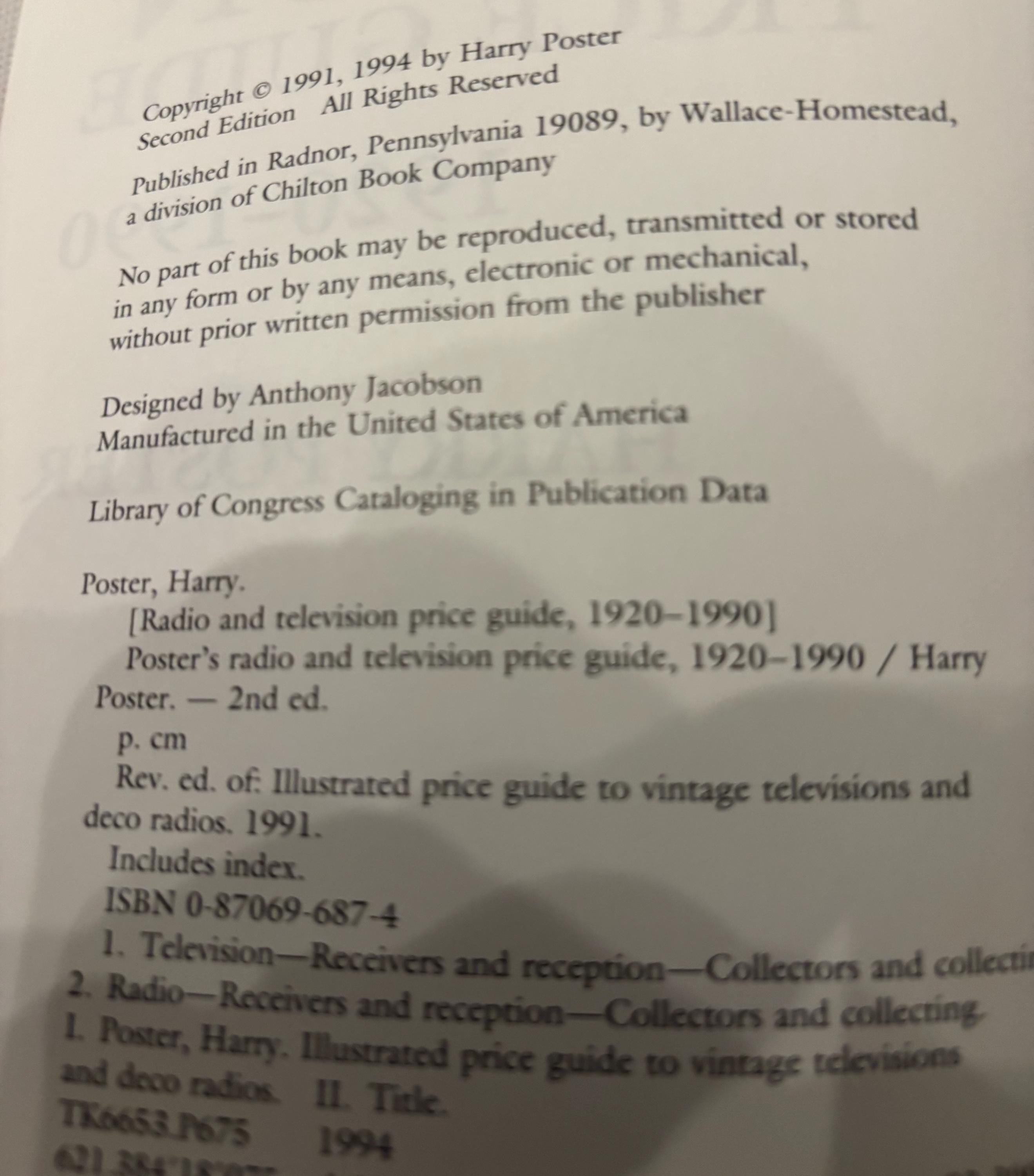 We are delighted to be featuring this Vintage Book, Poster's Radio & Television Price Guide, Second Edition 1920-1990.