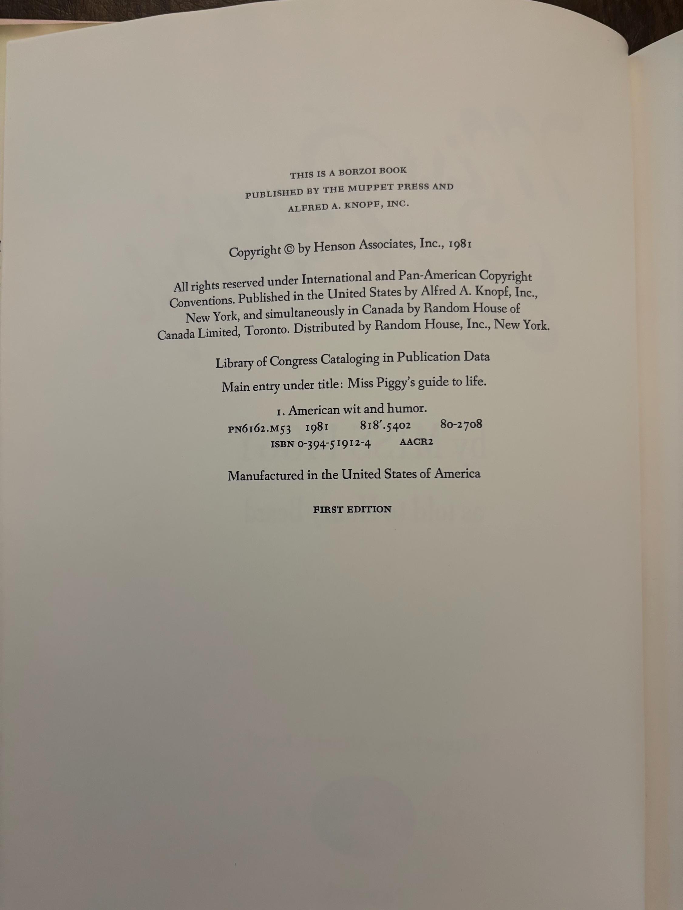 We are delighted to be featuring this Vintage Book, Miss Piggy's Guide to Life. By Henry Beard.