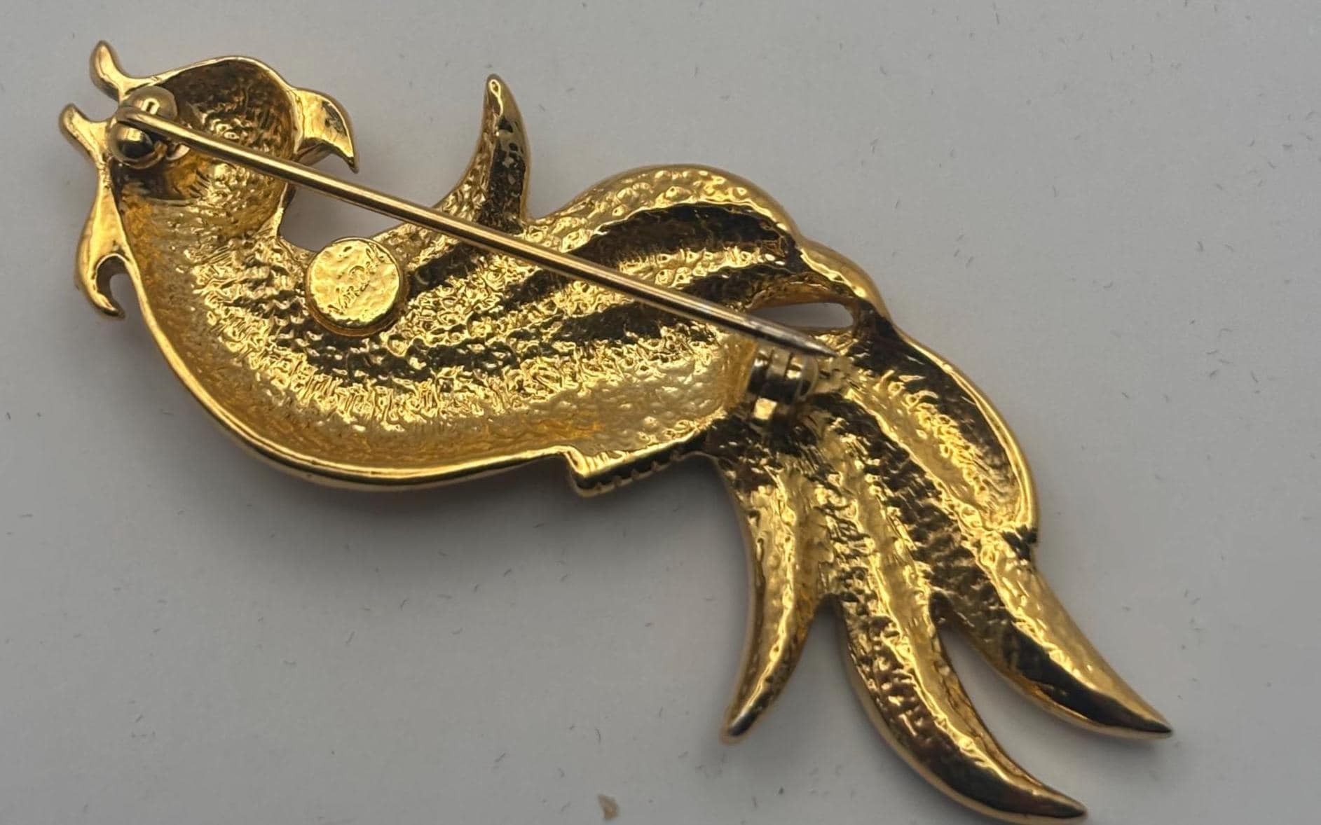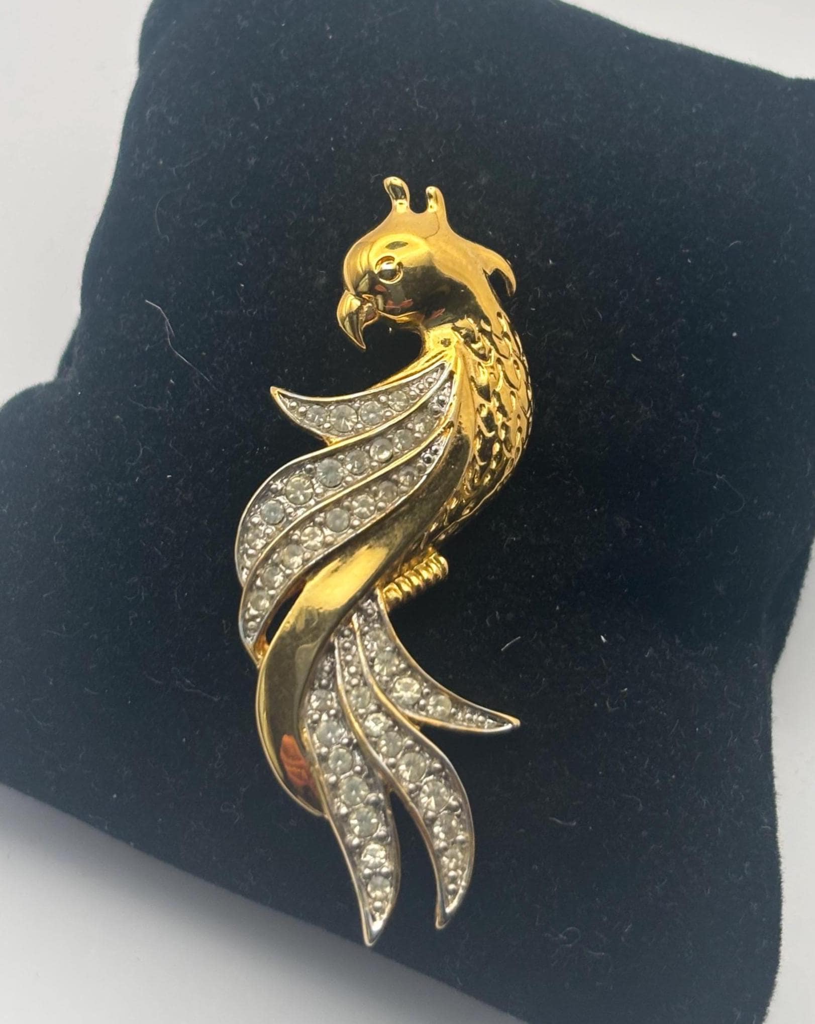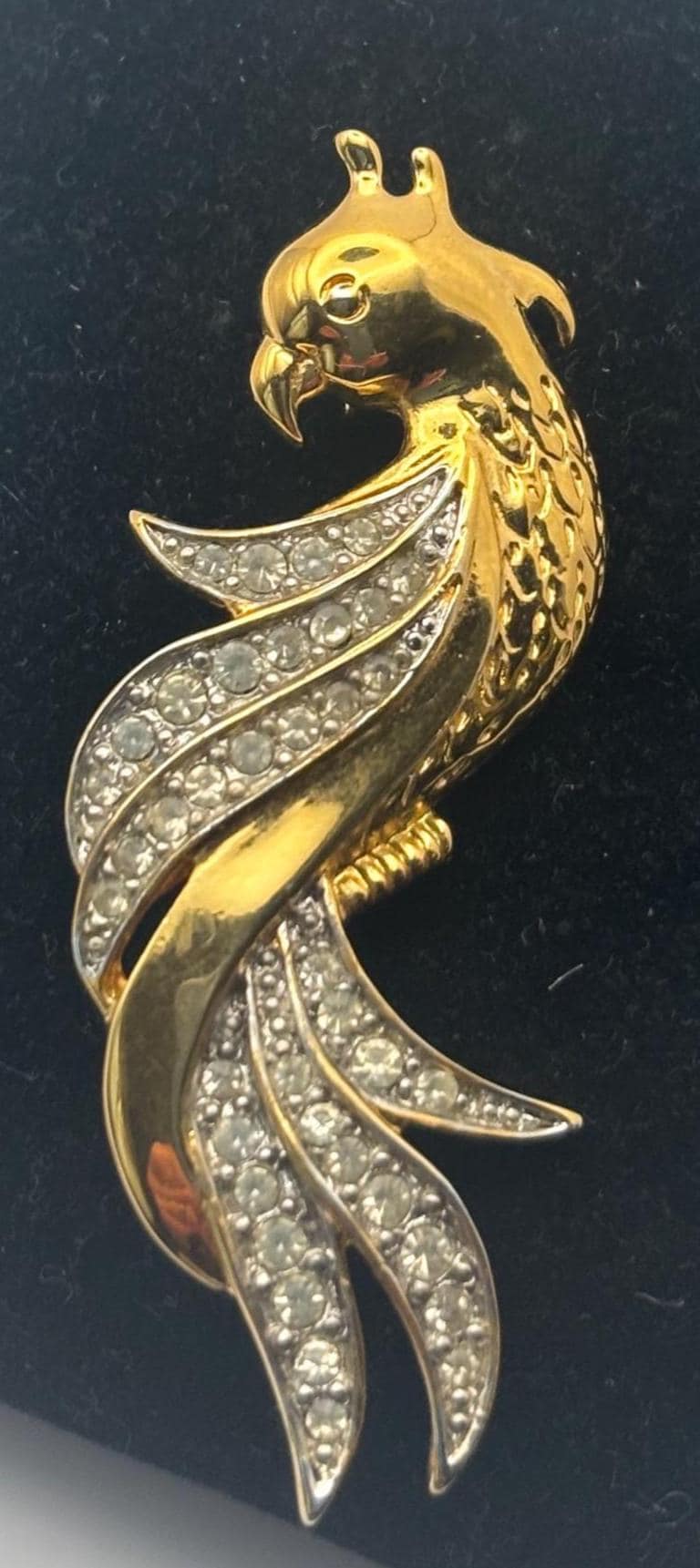 We have a gorgeous Vintage Van Dell Parrot Brooch/Pin with Rhinestones. It is in beautiful condition. It is circa 1950's.