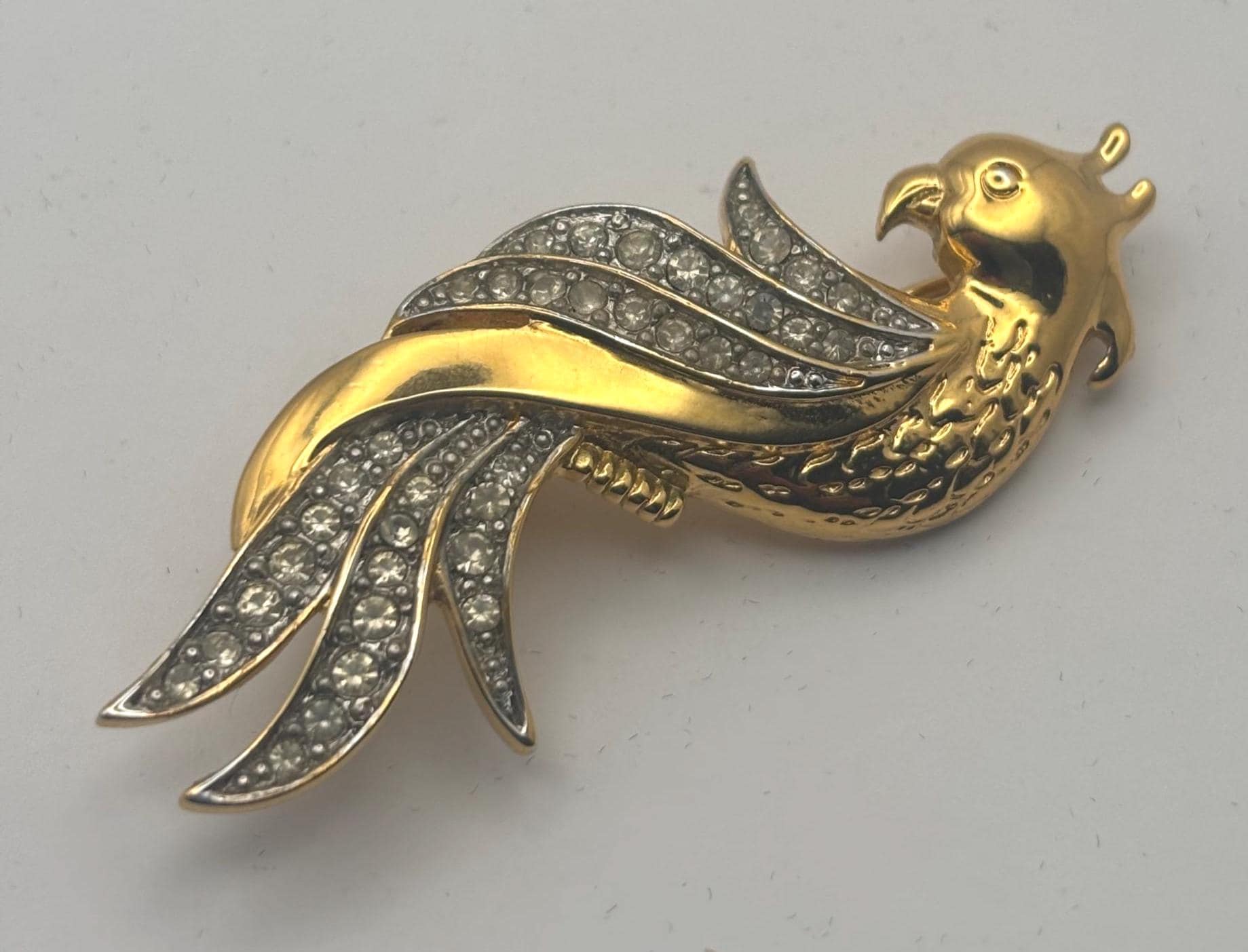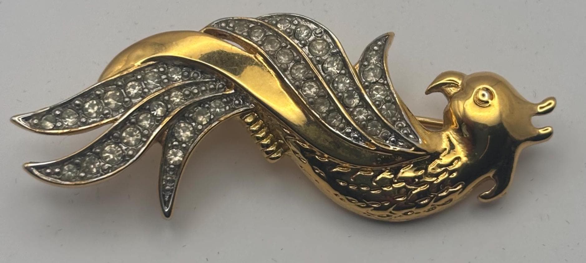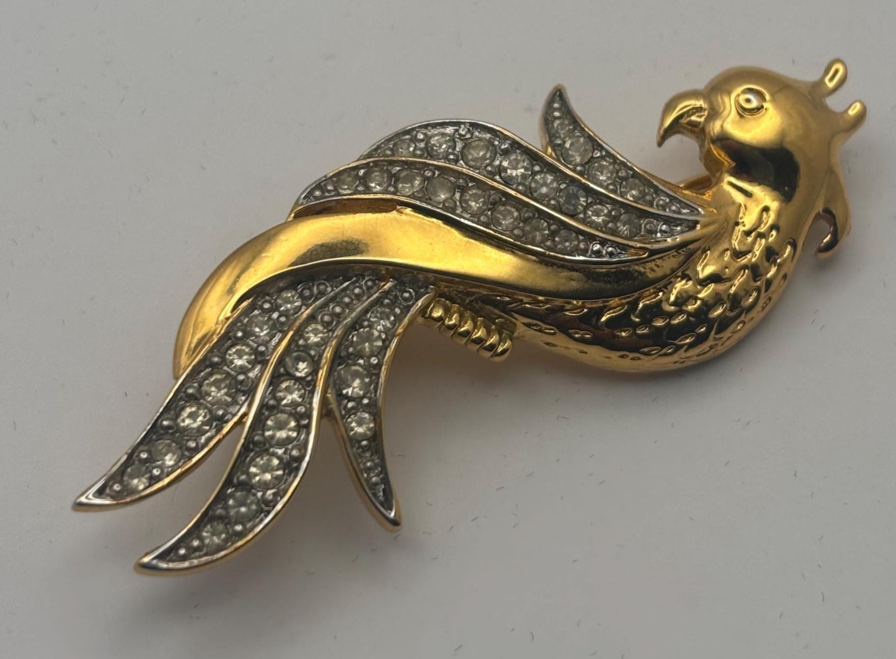 We have a gorgeous Vintage Van Dell Parrot Brooch/Pin with Rhinestones. It is in beautiful condition. It is circa 1950's.