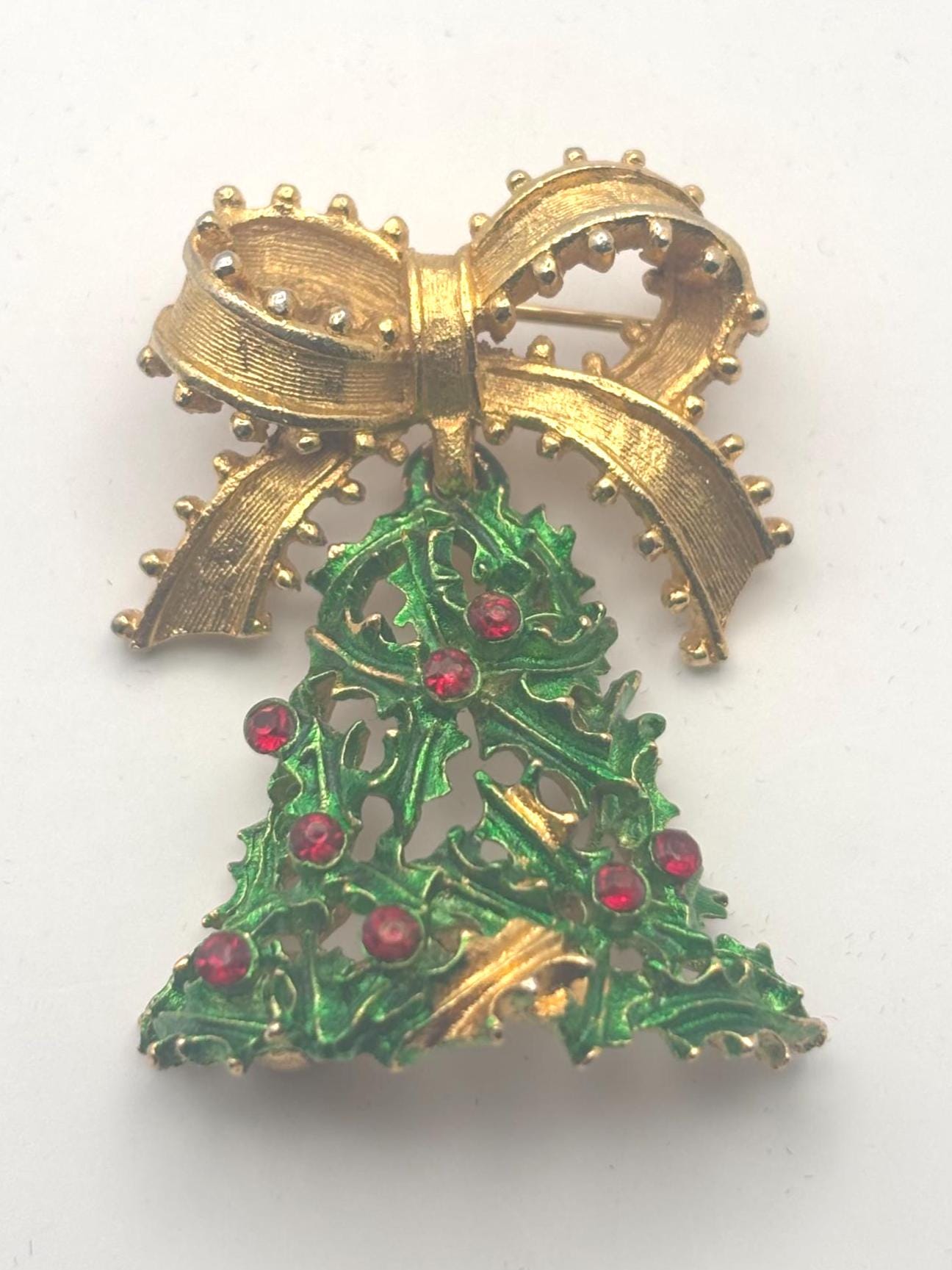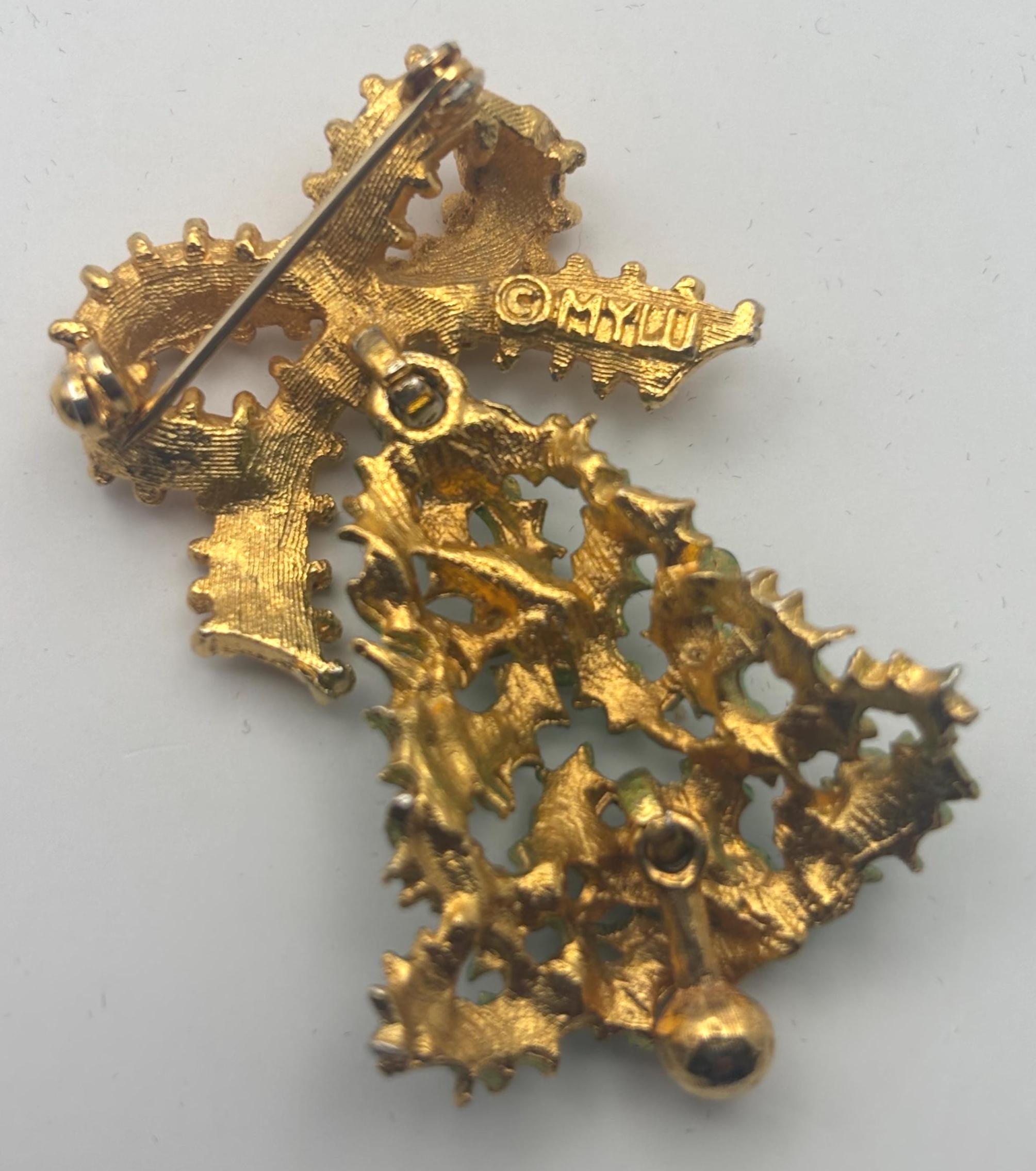 We have a gorgeous Vintage MYLU Christmas Bell Tree Brooch/Pin. It is in beautiful condition. It is circa 1950's.