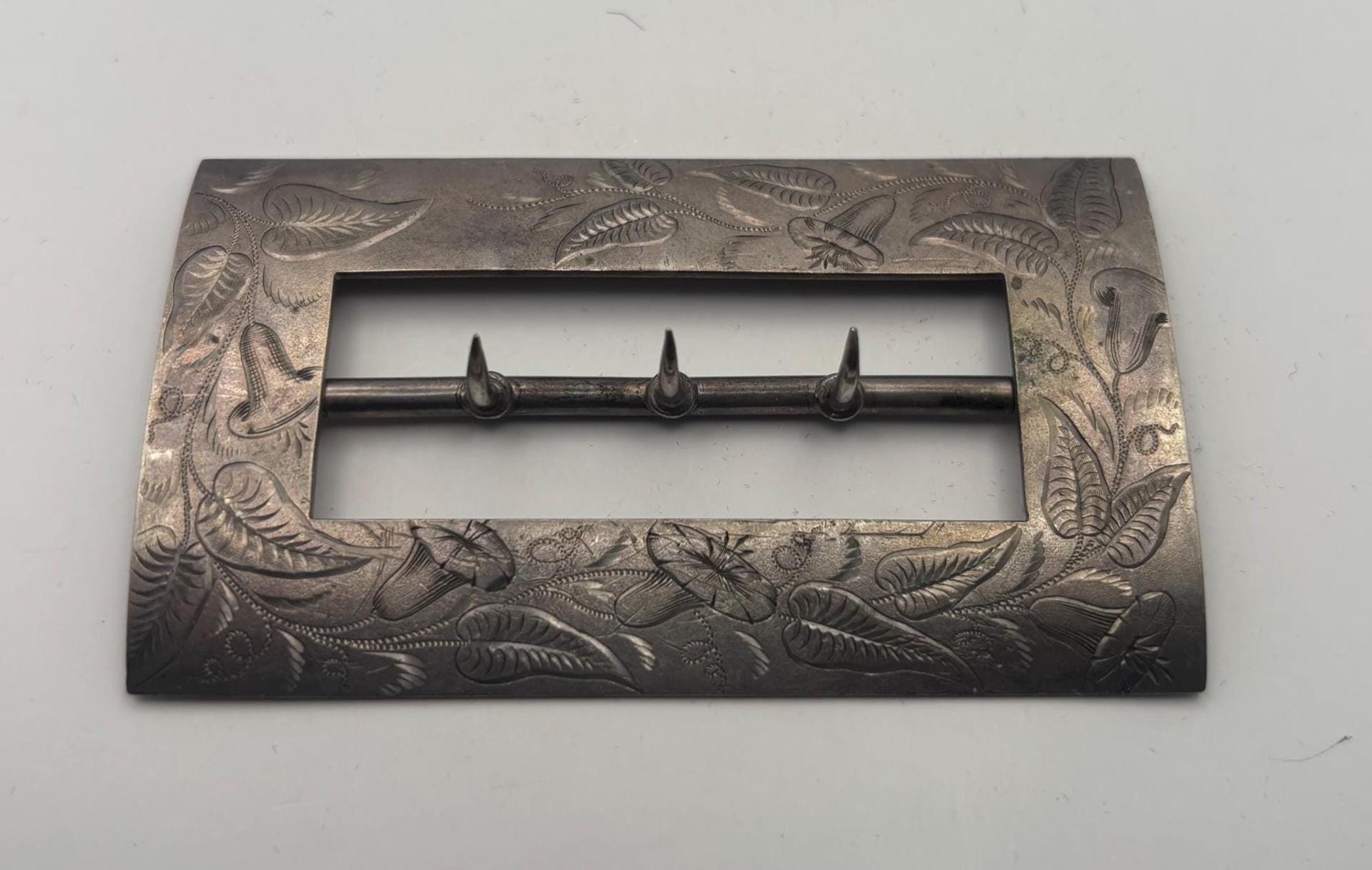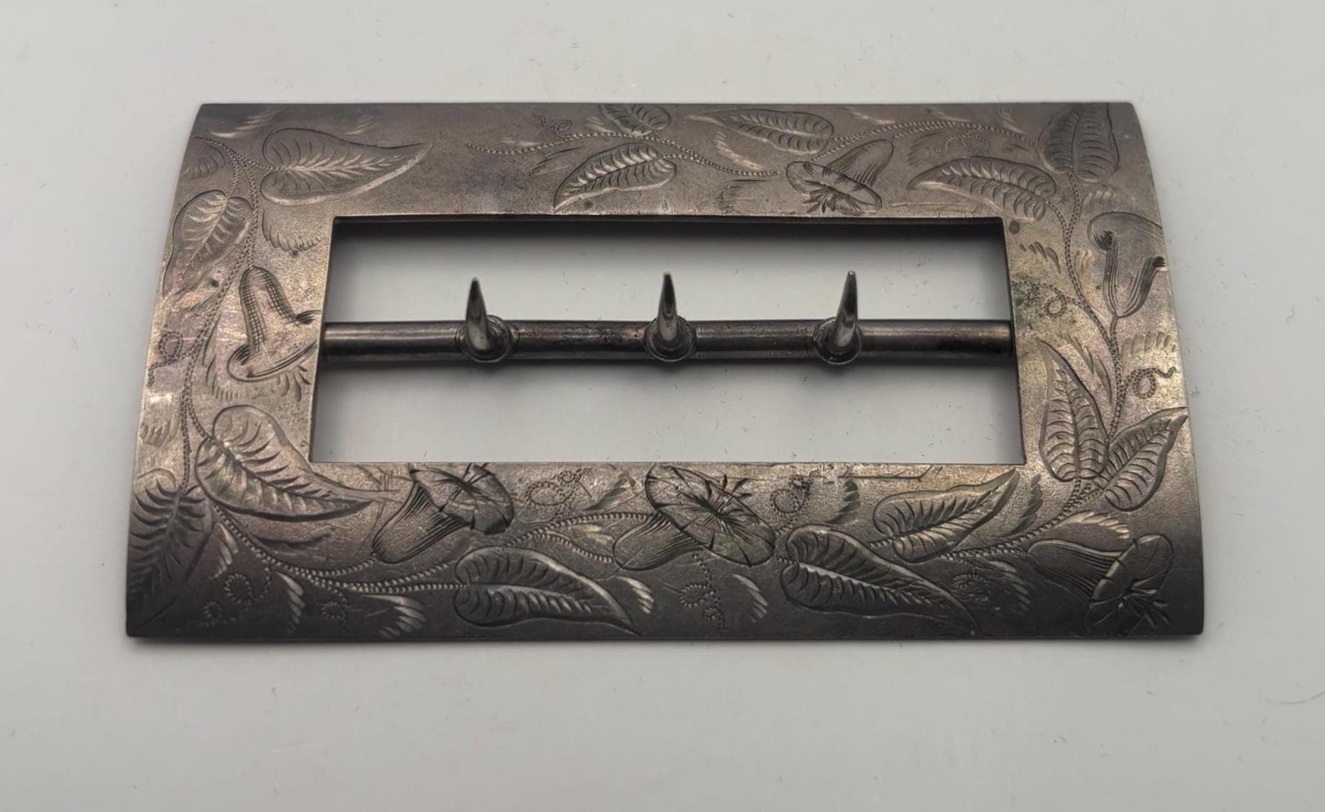 We are featuring this lovely Antique Sterling Silver Belt Sash Buckle.
