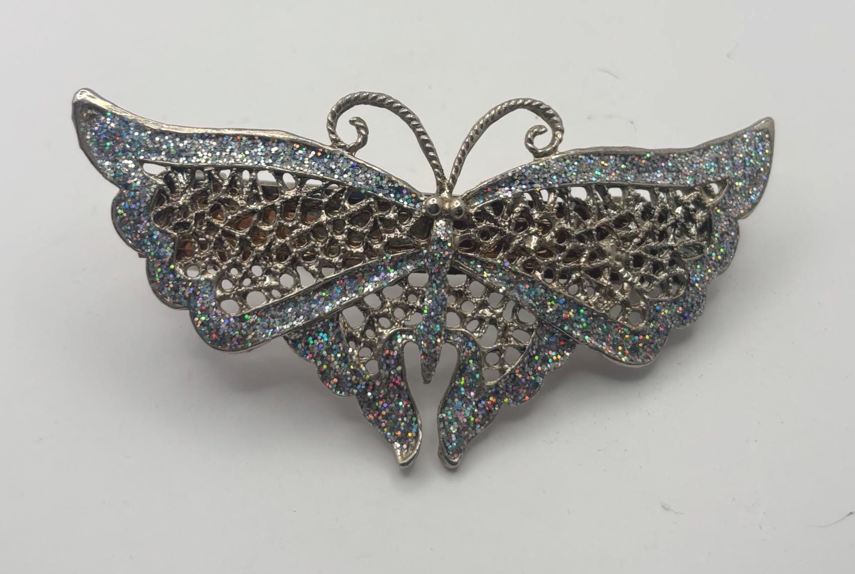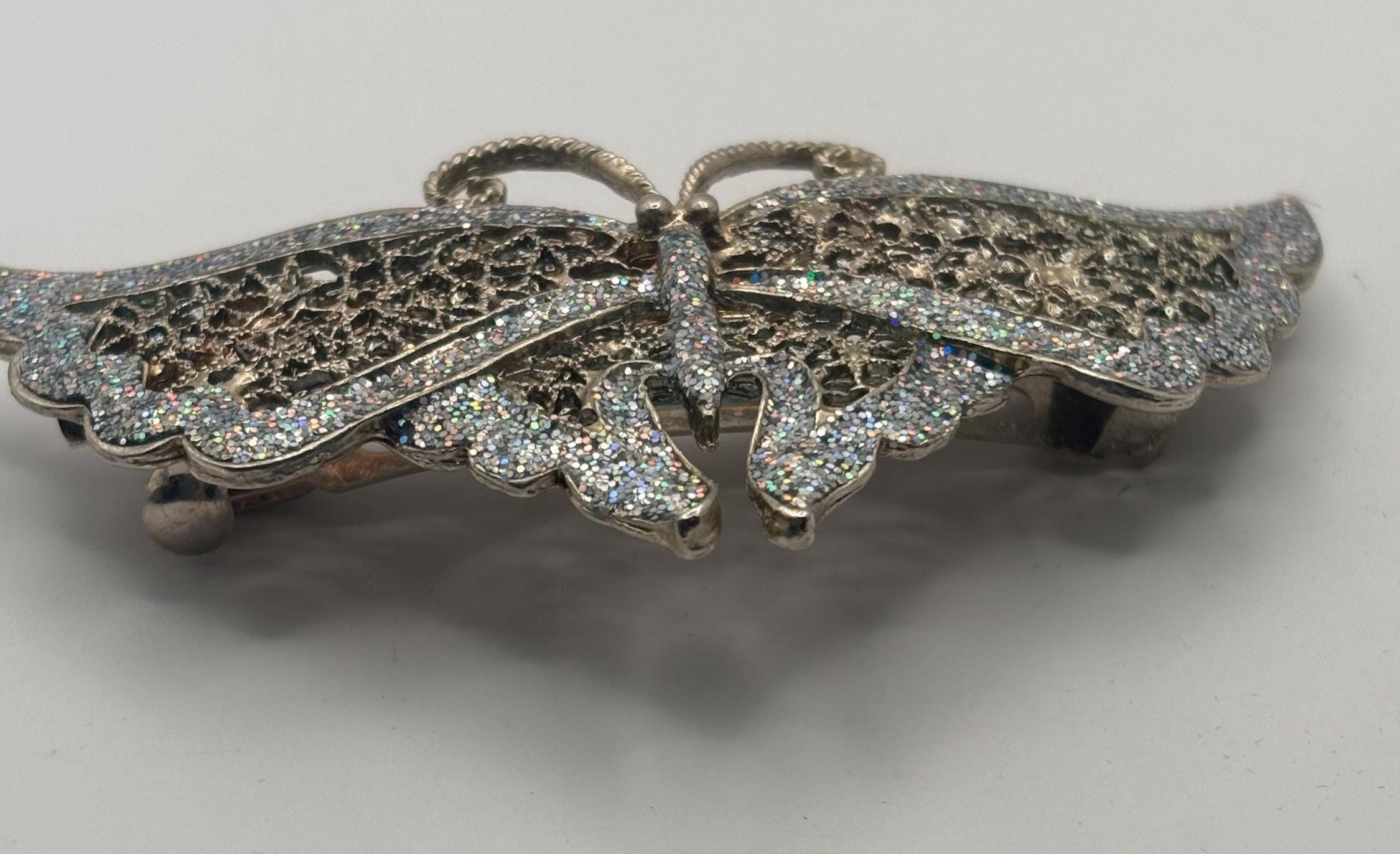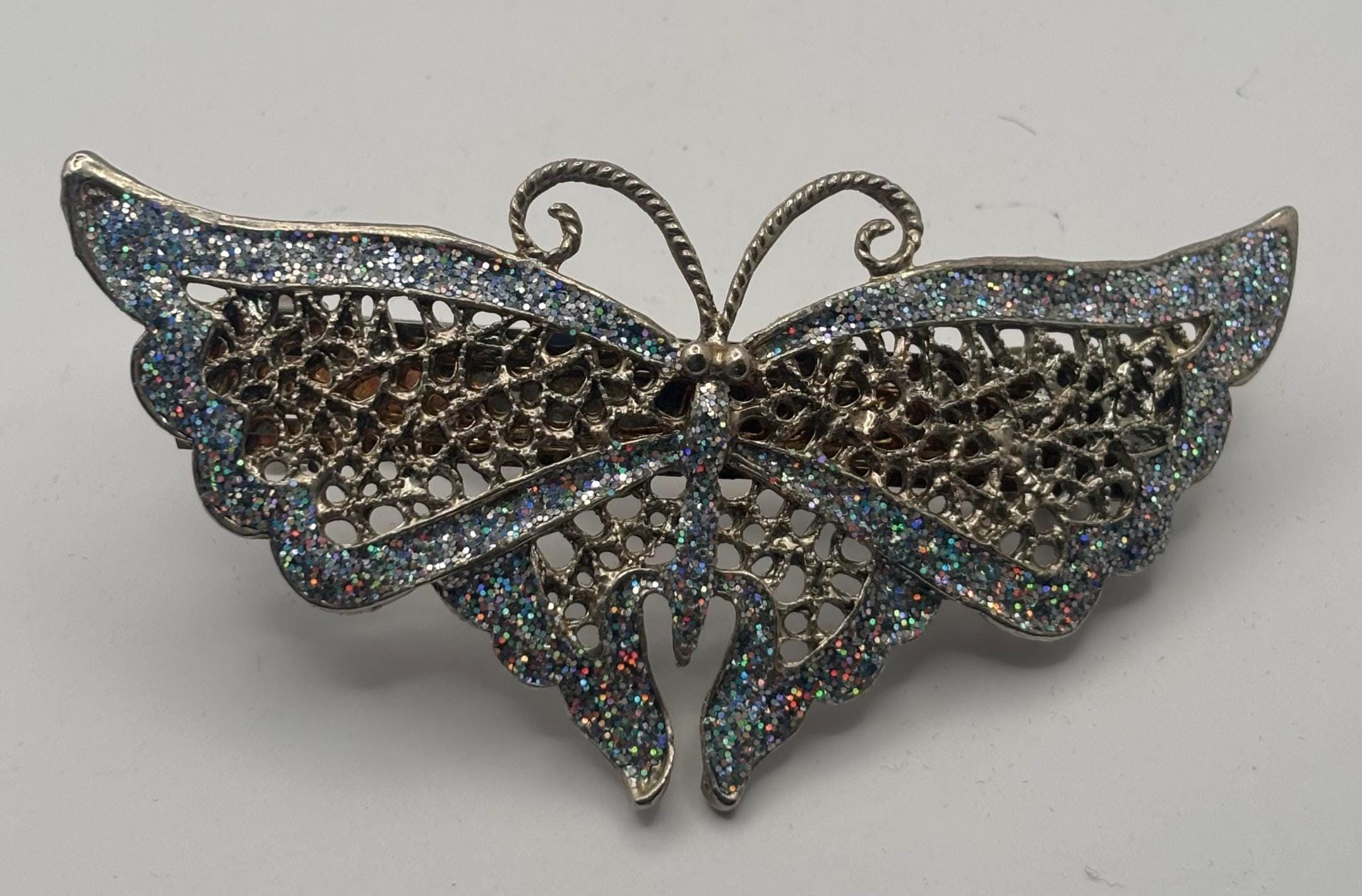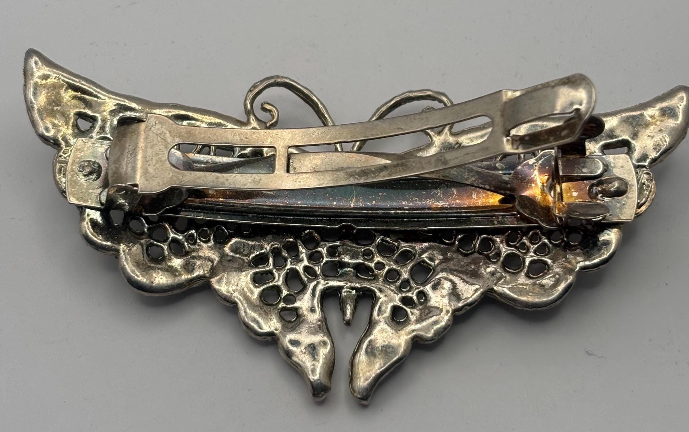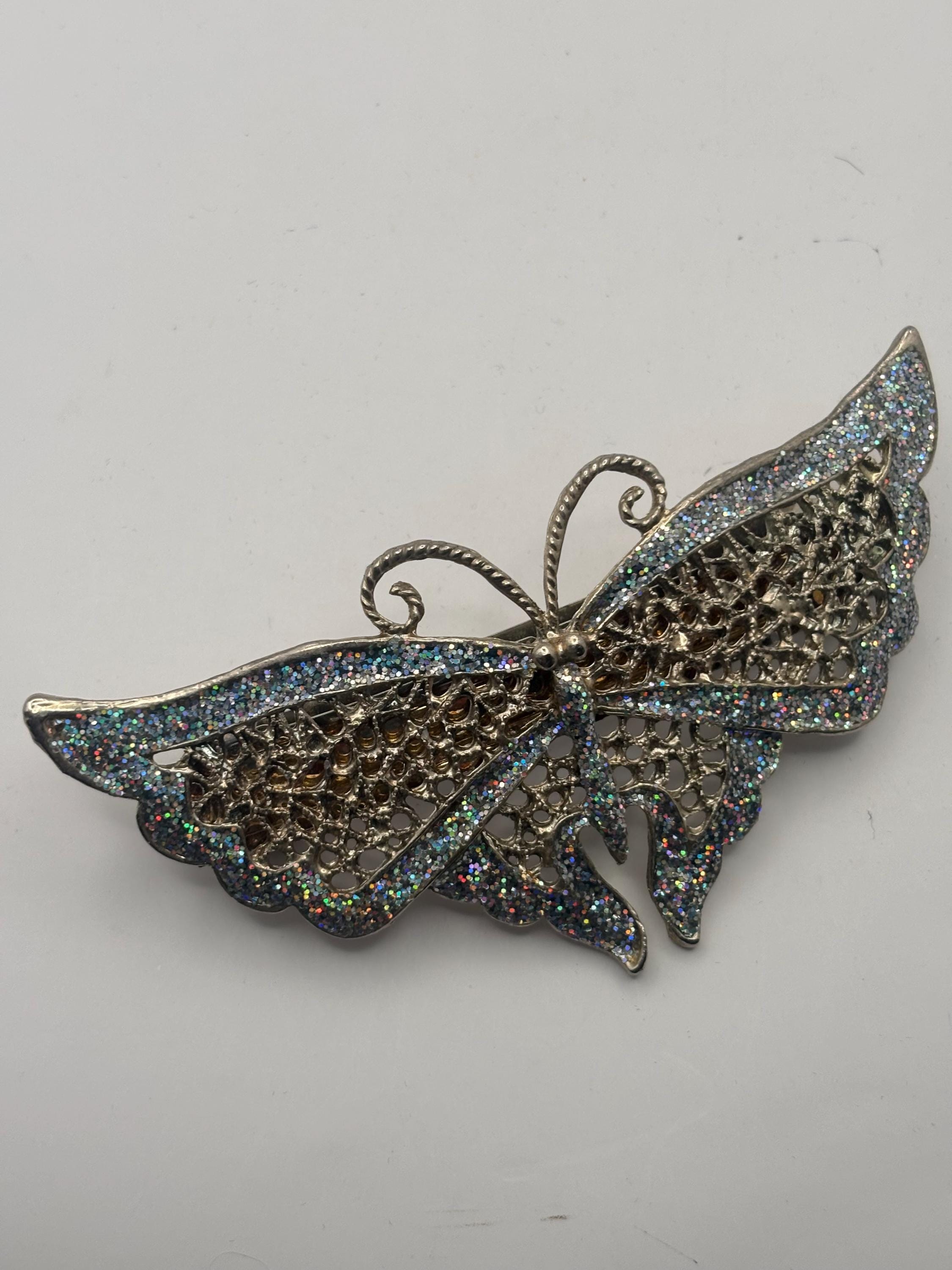 We are delighted to be featuring this lovely 1940's Butterfly Hair Clip. It has open wings and ready for flight! It measures approximately 3 1/4" across, 2 1/4" high.