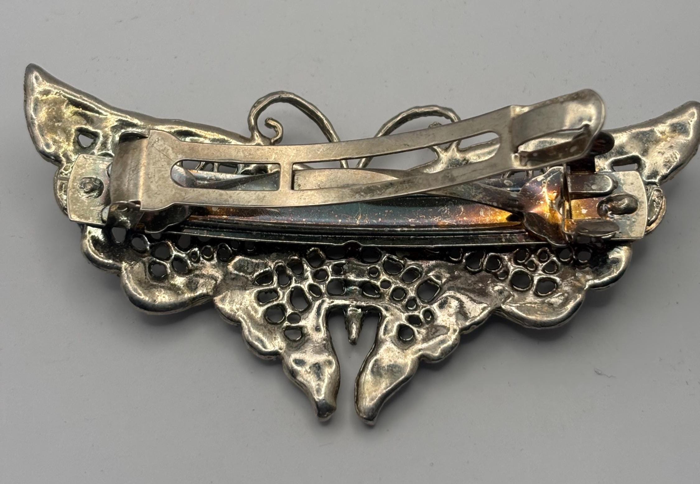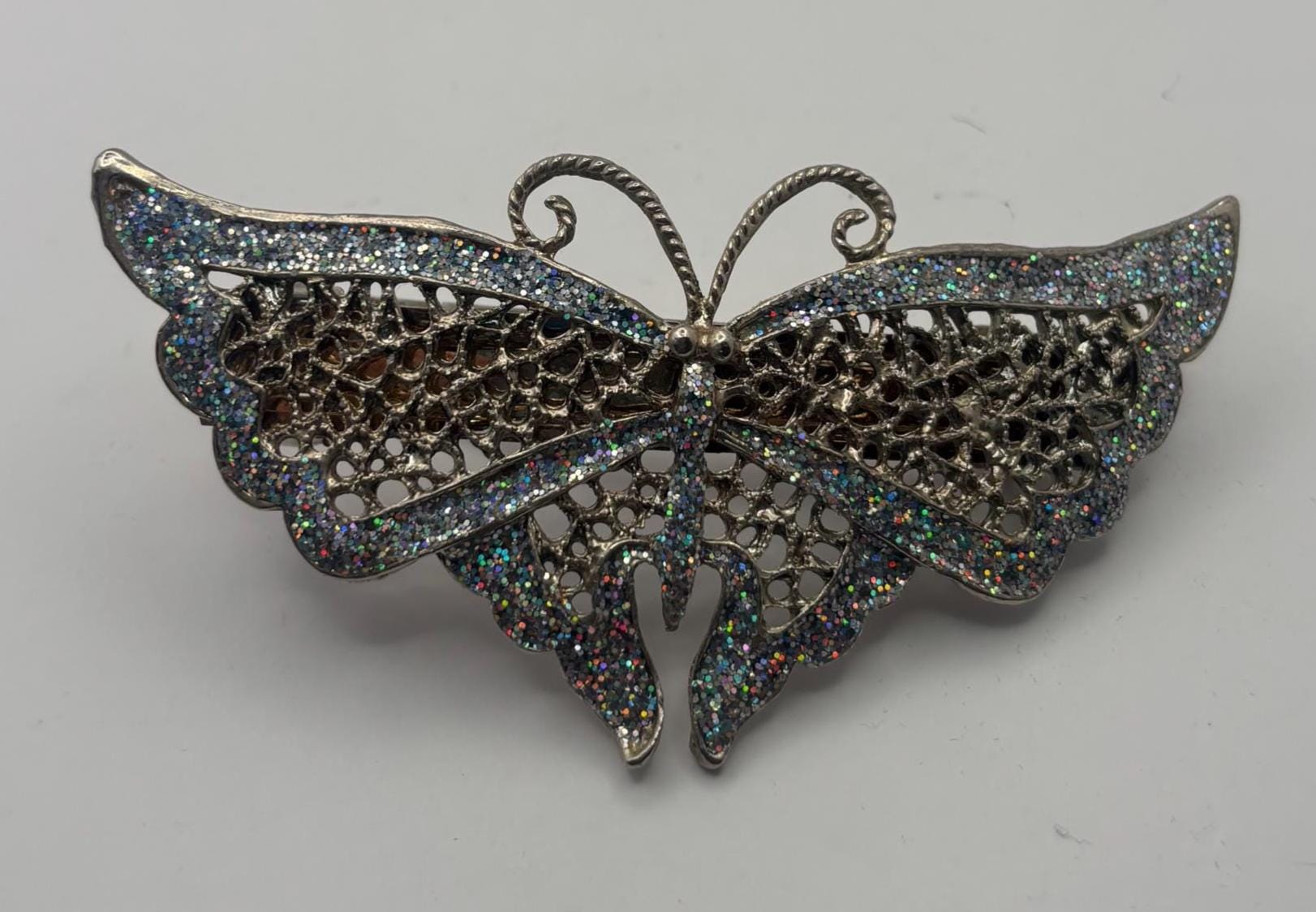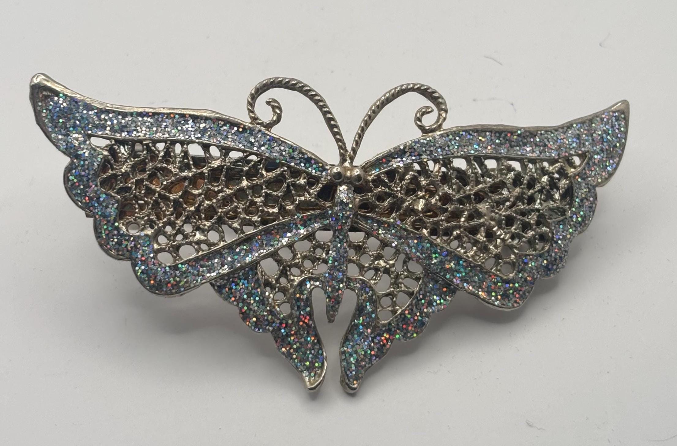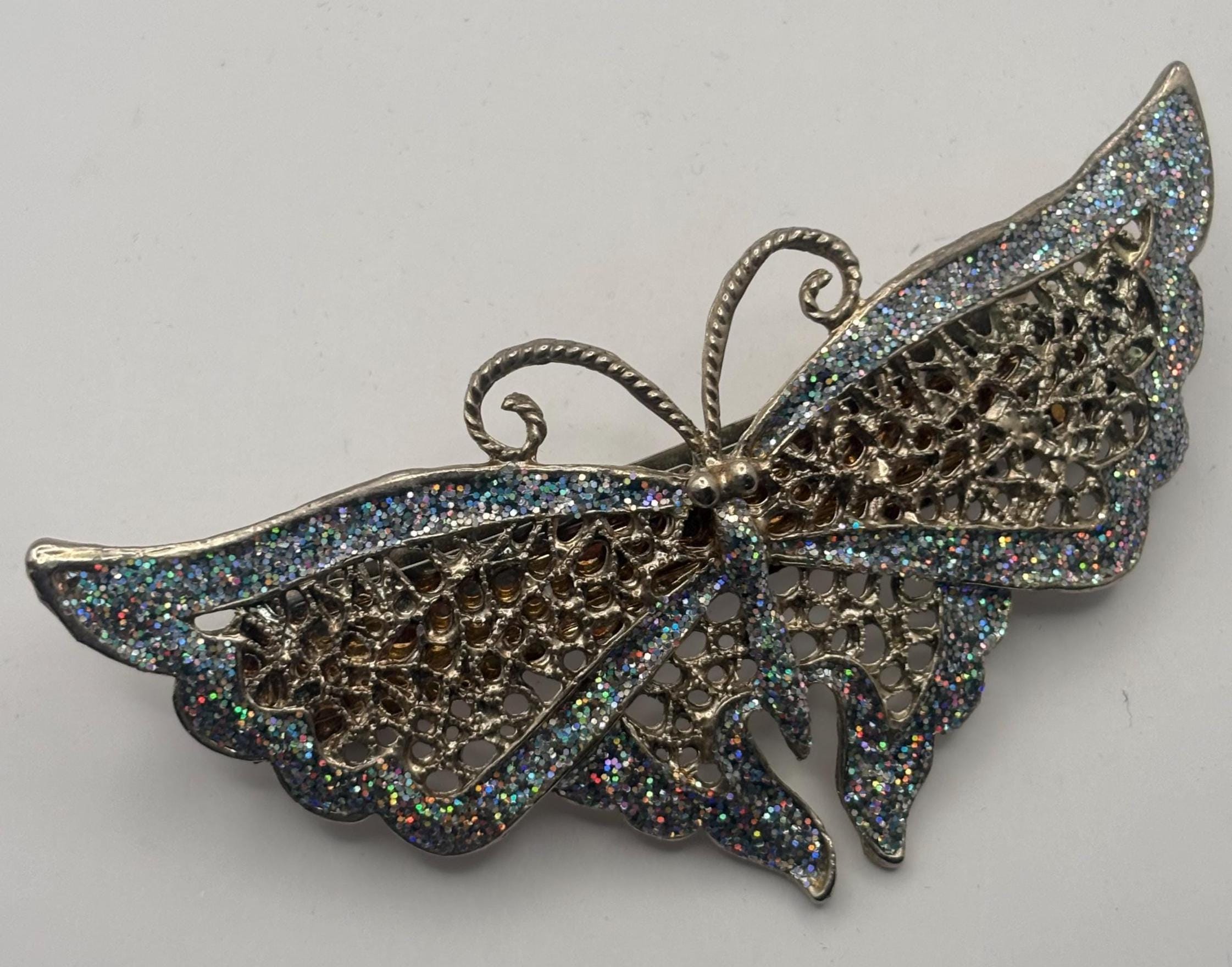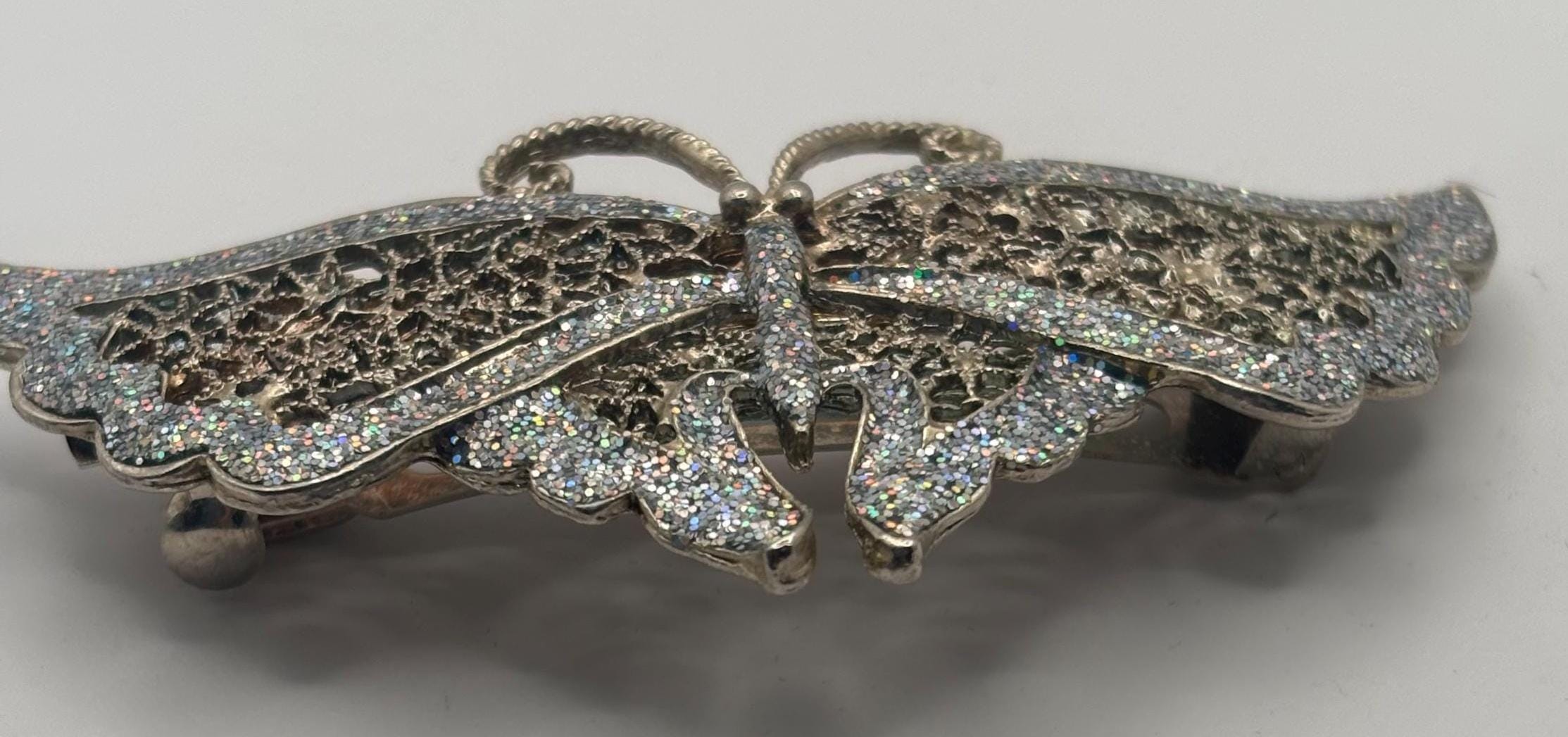 We are delighted to be featuring this lovely 1940's Butterfly Hair Clip. It has open wings and ready for flight! It measures approximately 3 1/4" across, 2 1/4" high.