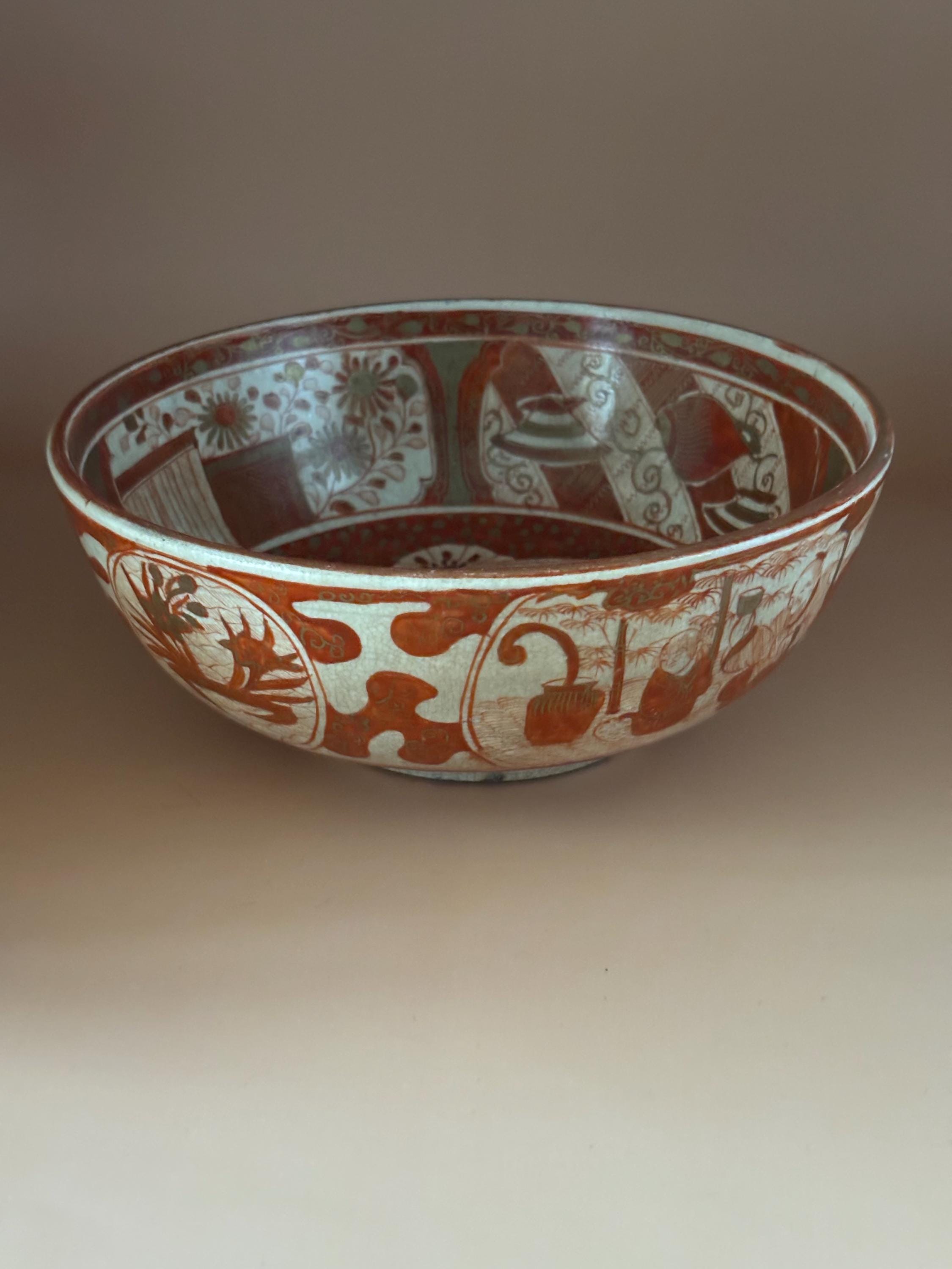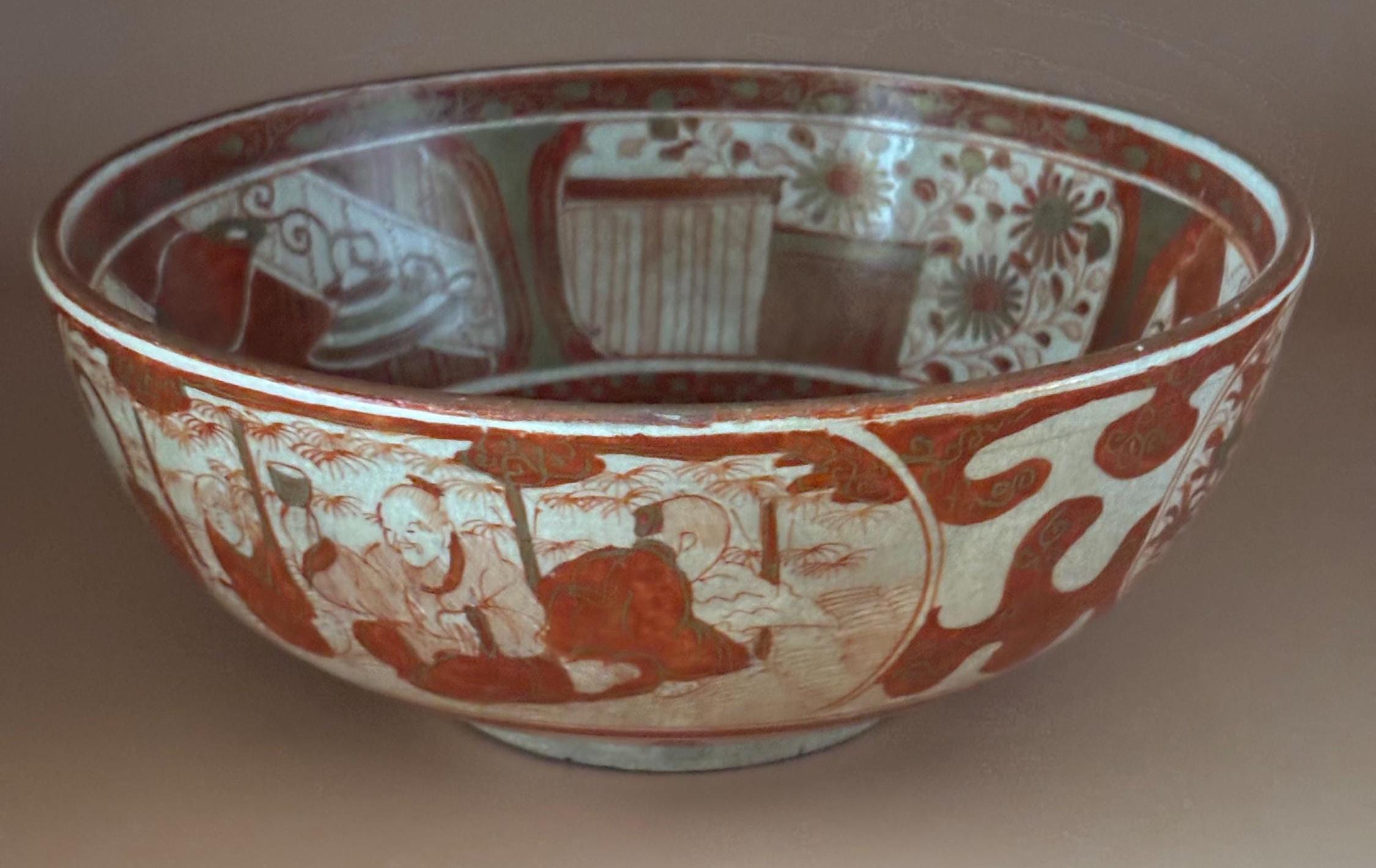 We are thrilled to be featuring this Antique Kutani Porcelain Deep Bowl. It measures approximately 7 1/4" in diameter, 3 1/4" at its base, 3" high.
