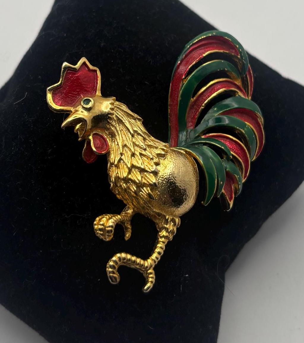 We have a lovely Vintage Enamel Rooster. It is quite lovely and would make a perfect gift.