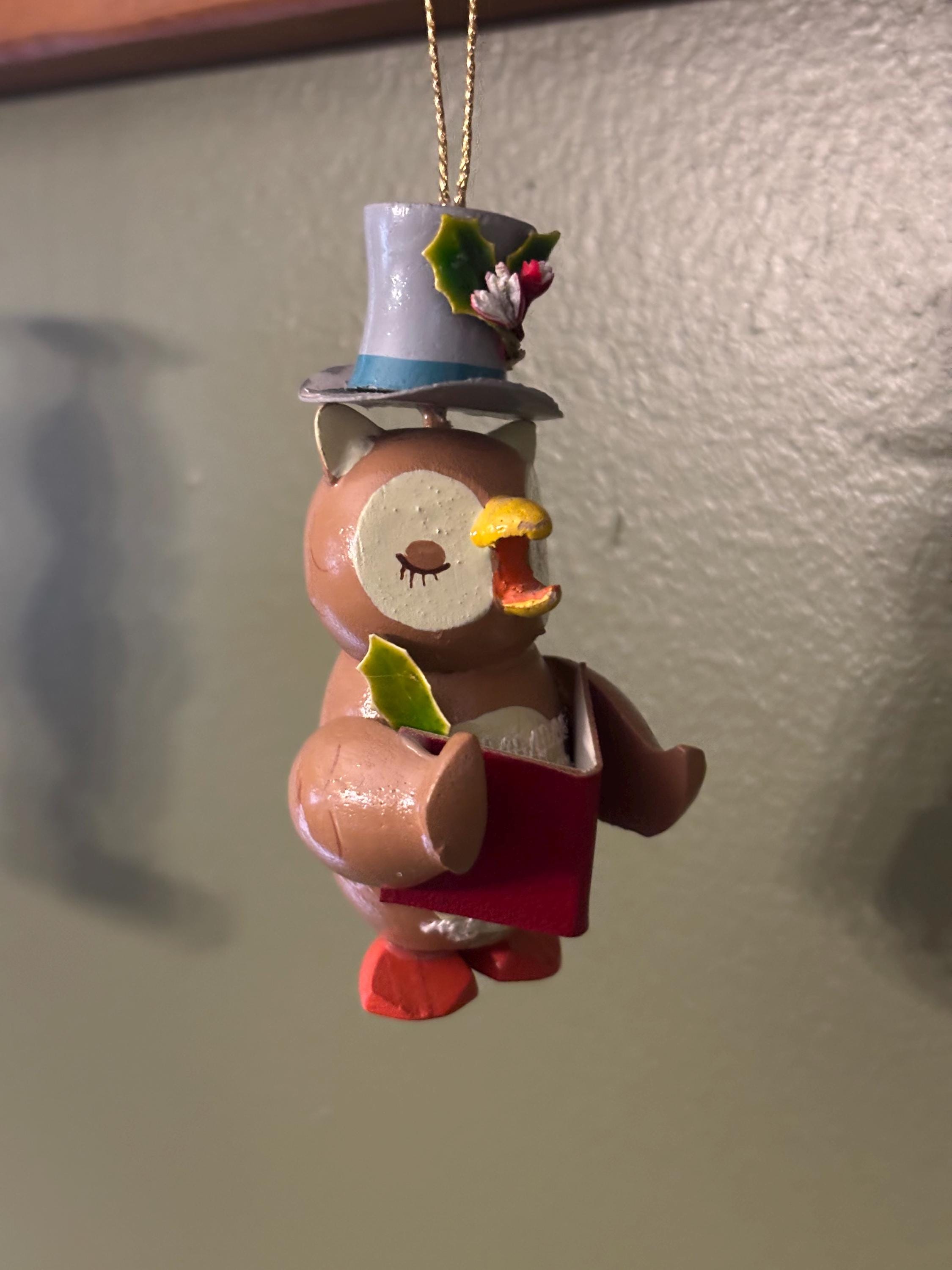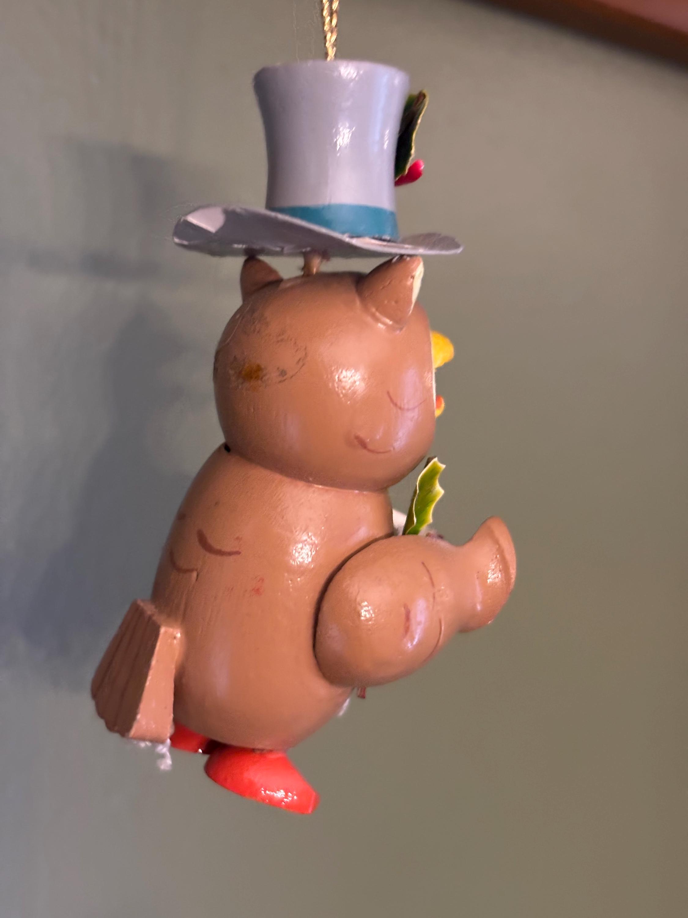 We have a very sweet Vintage Kurt S. Adler Owl Ornament. Signed 85 on the bottom. This would make the an amazing gift. It is in Very Good Condition. It measures approximately 1 1/2", 2" deep, 3" high.