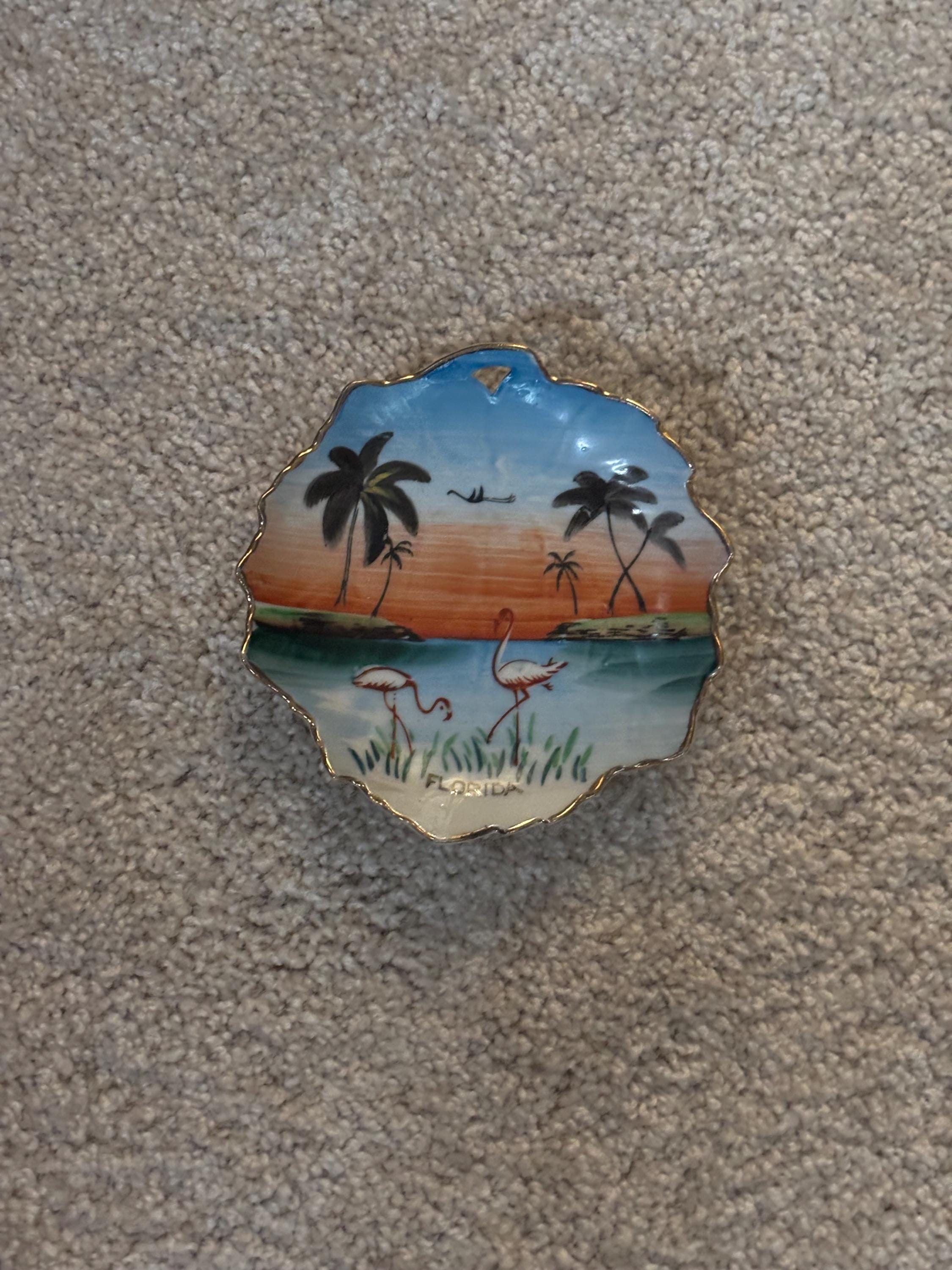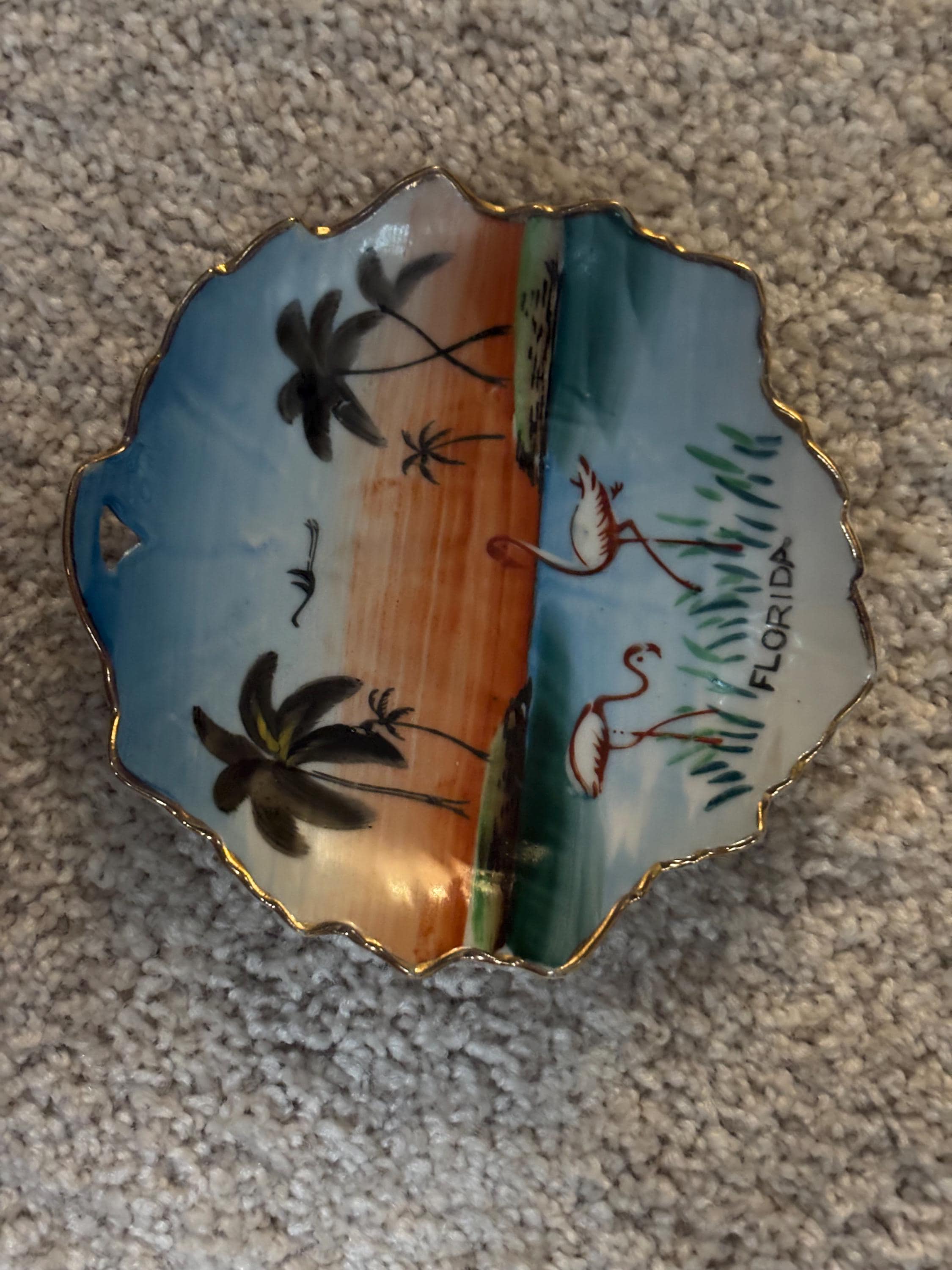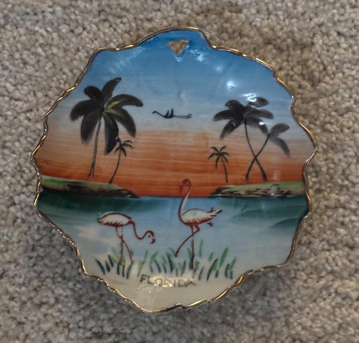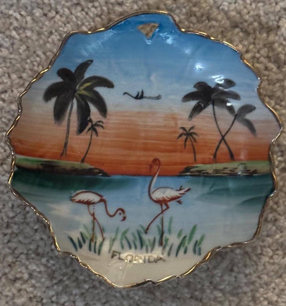 We are tickled pink to be featuring this sweet Vintage Florida Souvenir Plate. It is hand painted, and made in Japan circa 1950's.