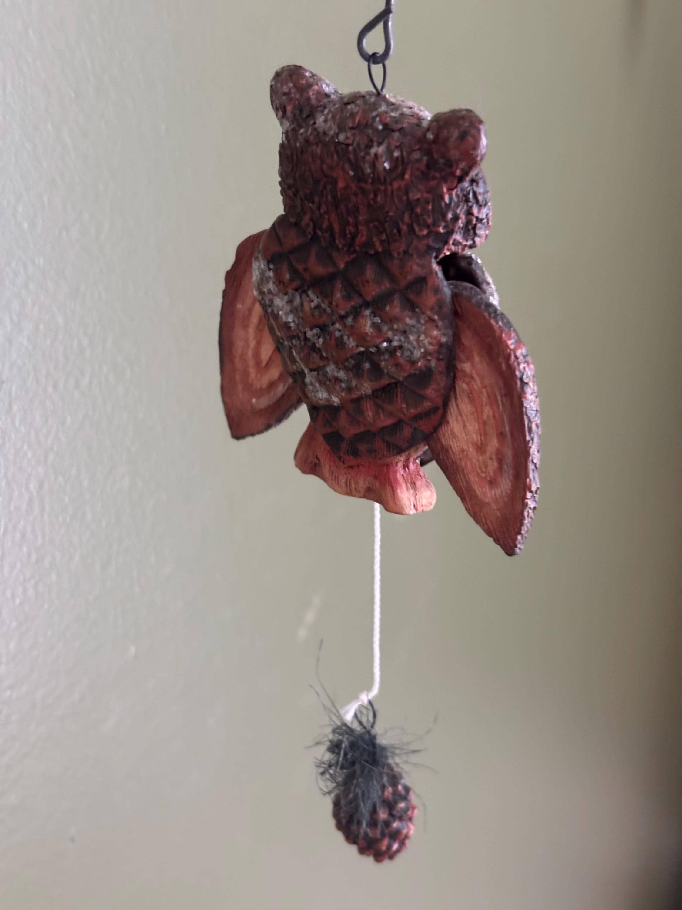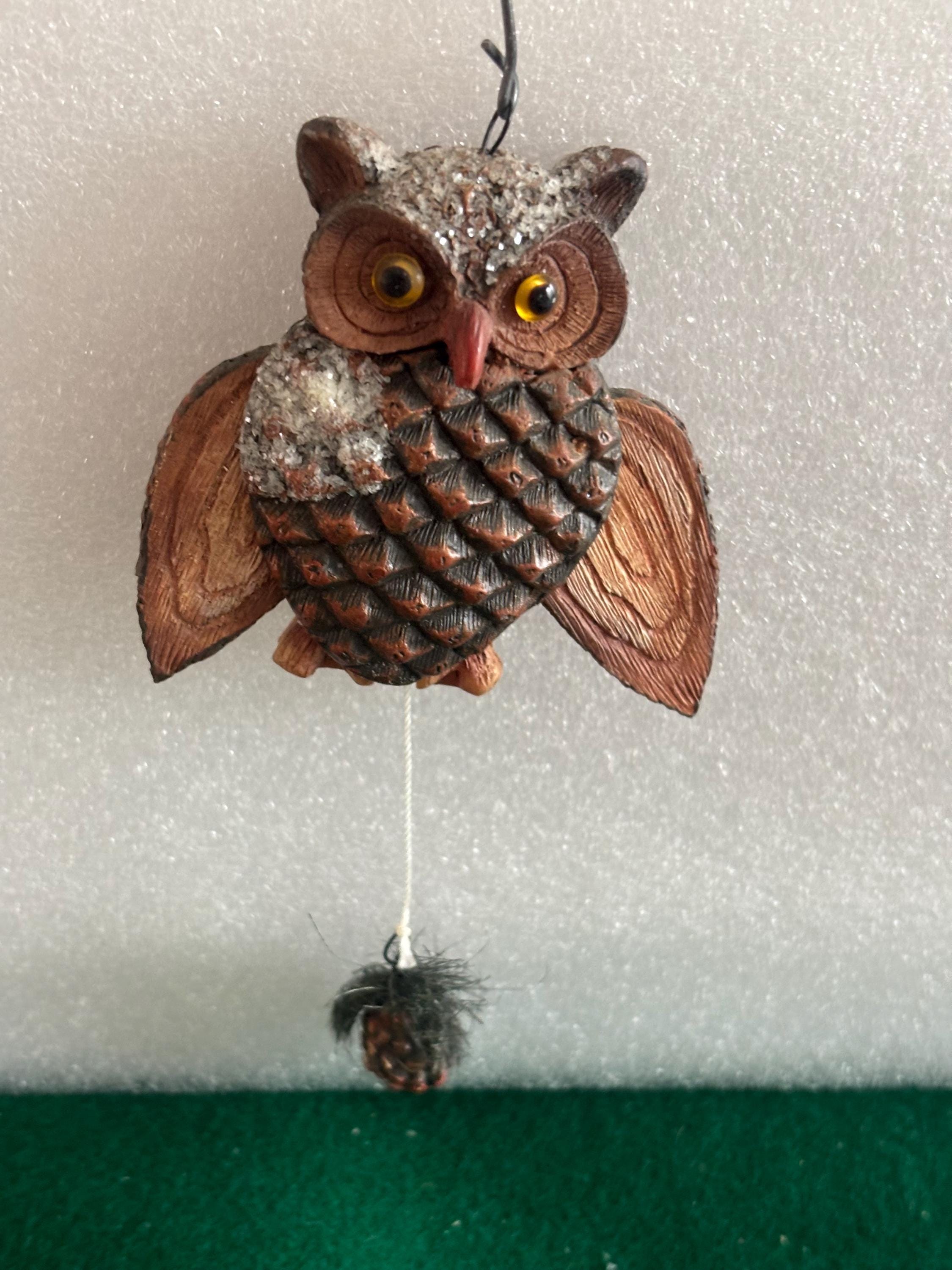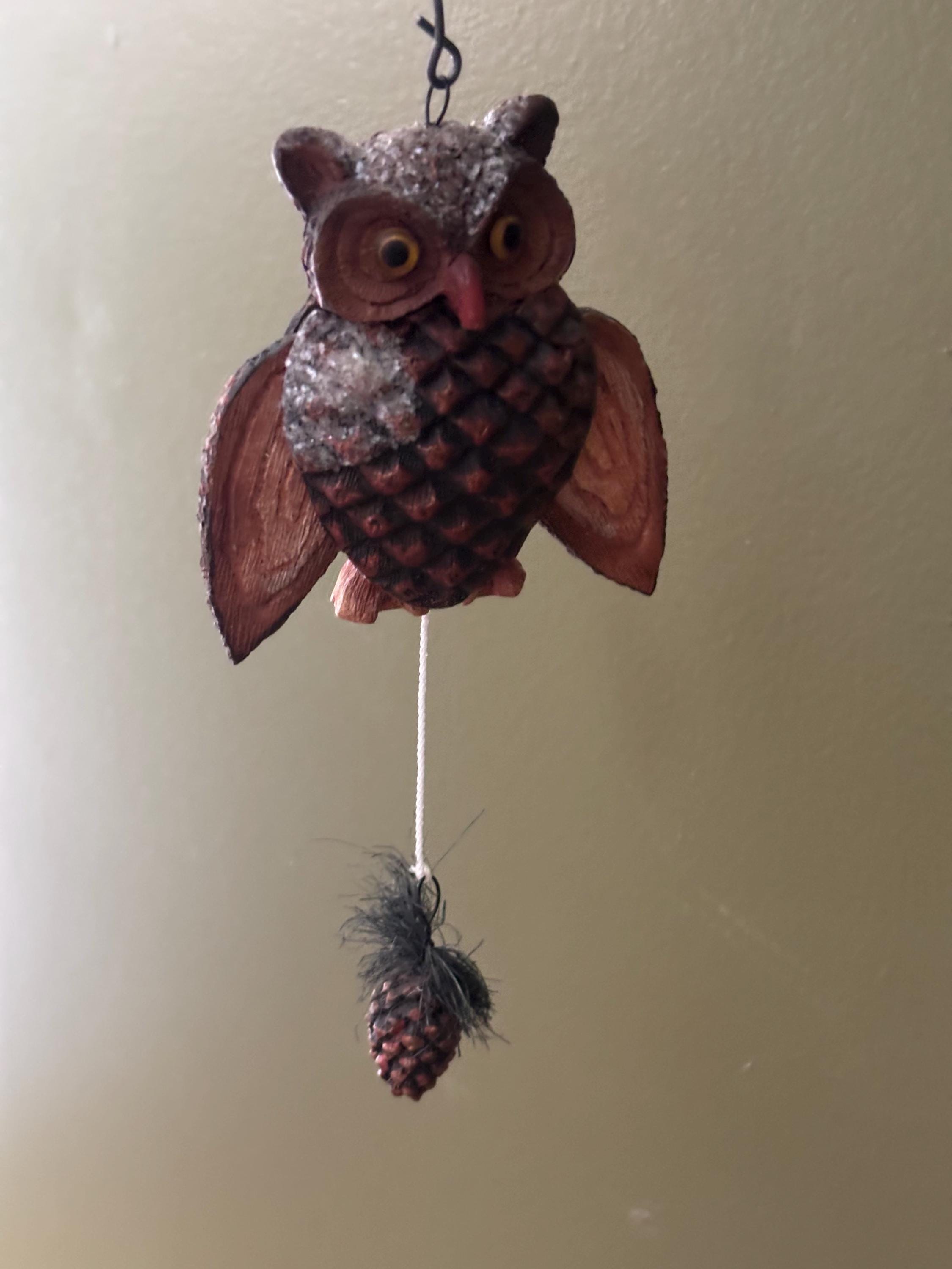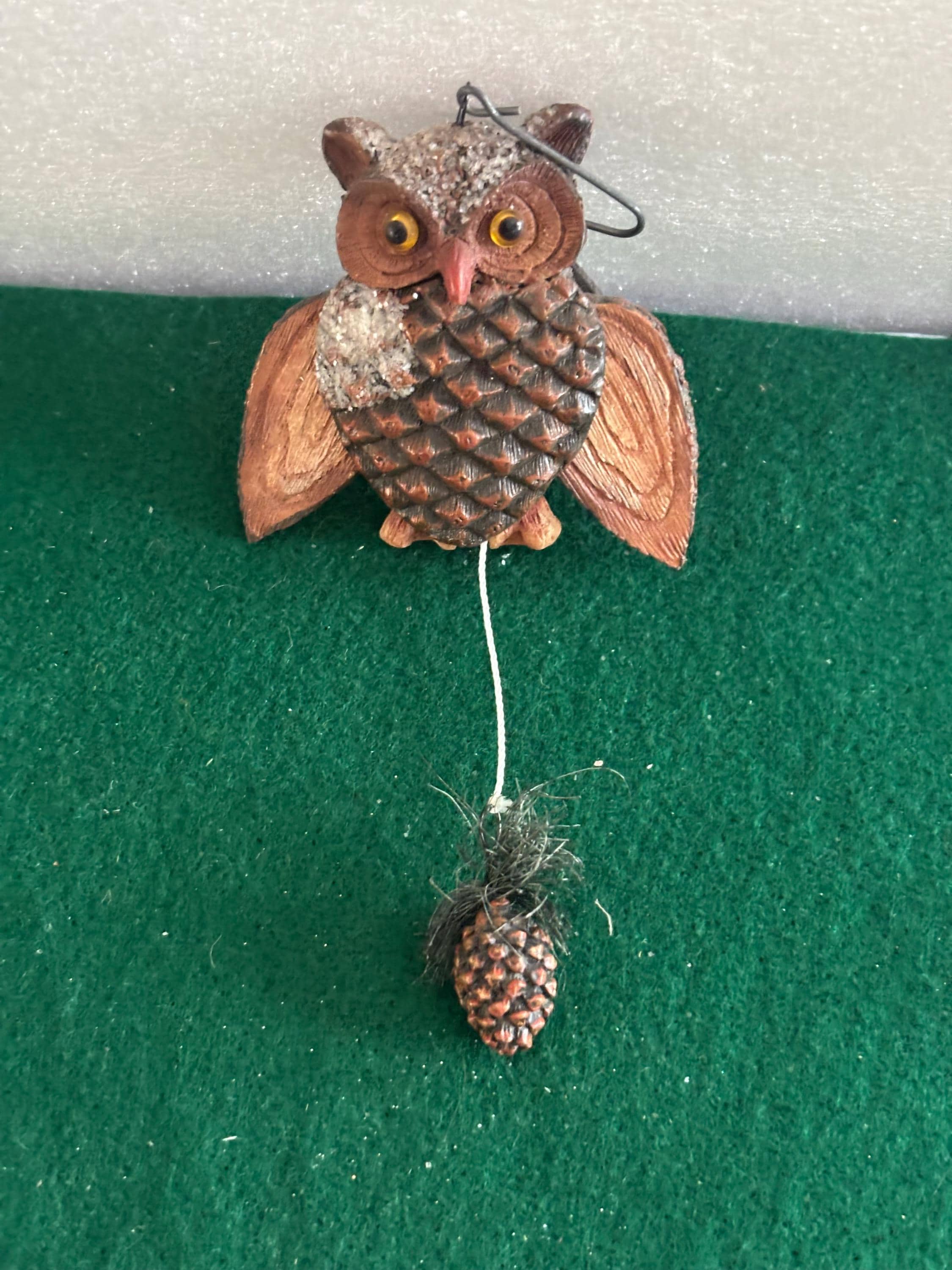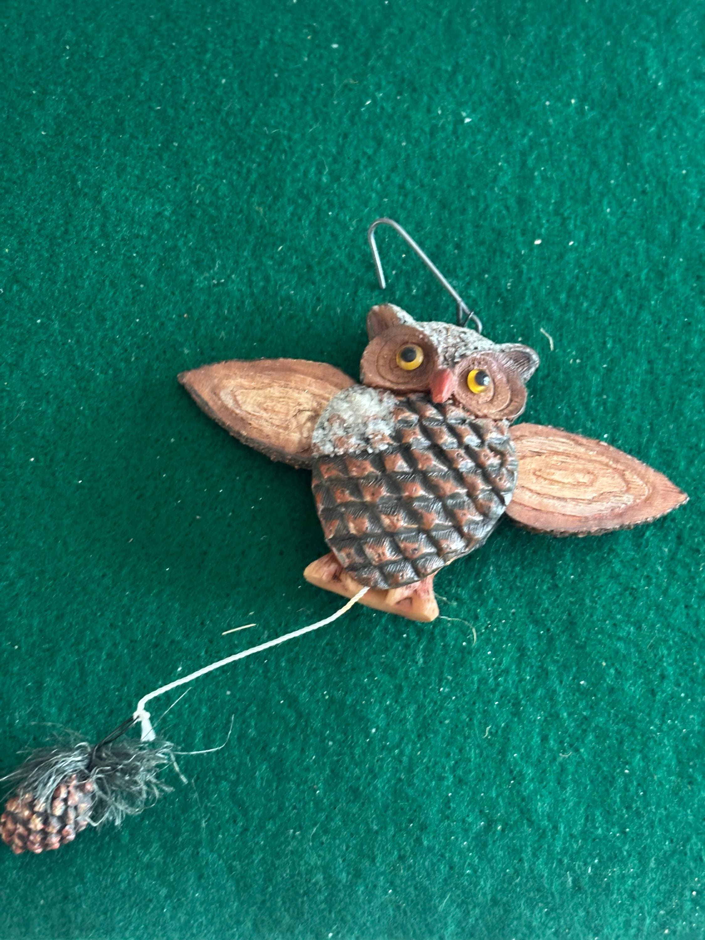 We have a lovely Vintage Hanging Owl Ornament with Dangling Pinecone.