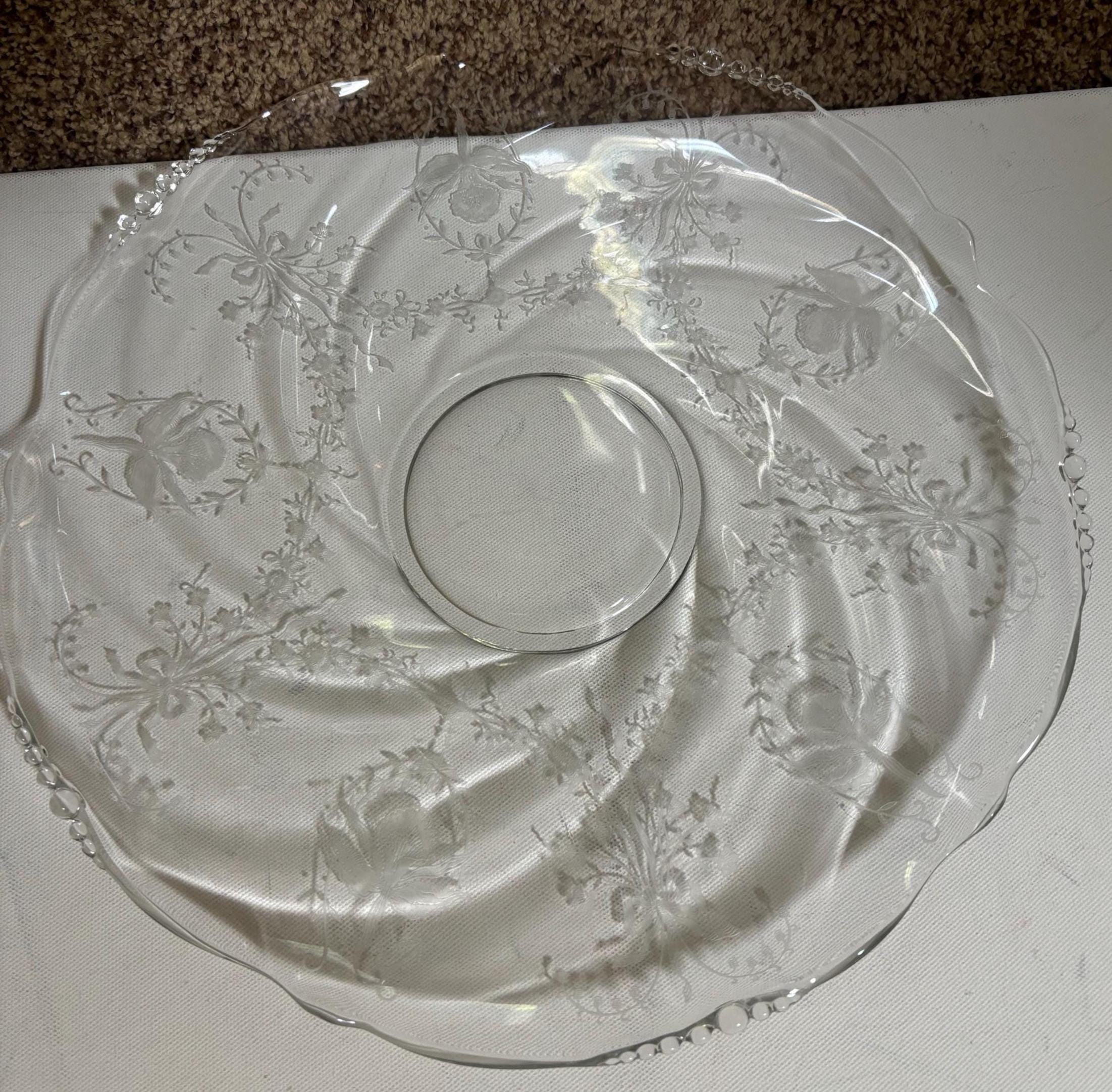 We are pleased to present this gorgeous Vintage Heisey Large Sandwich Platter/Tray. It is featuring the etched Orchid design. It is in Very Good Condition. This was only ever displayed, and never used.