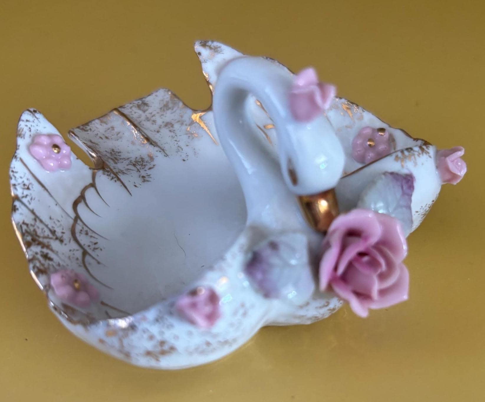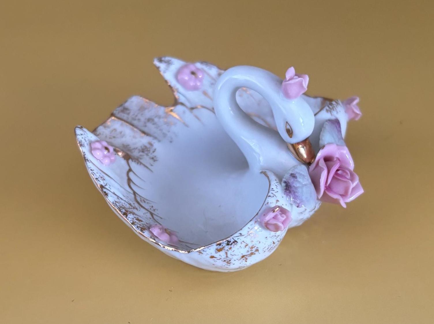 Ideal as a gift for her or him, this vintage Lefton swan figurine is perfect for collectors, or to brighten any space with a touch of timeless elegance. Use it as a ring dish, a small jewelry holder, or simply as a decorative accent on a shelf or table.