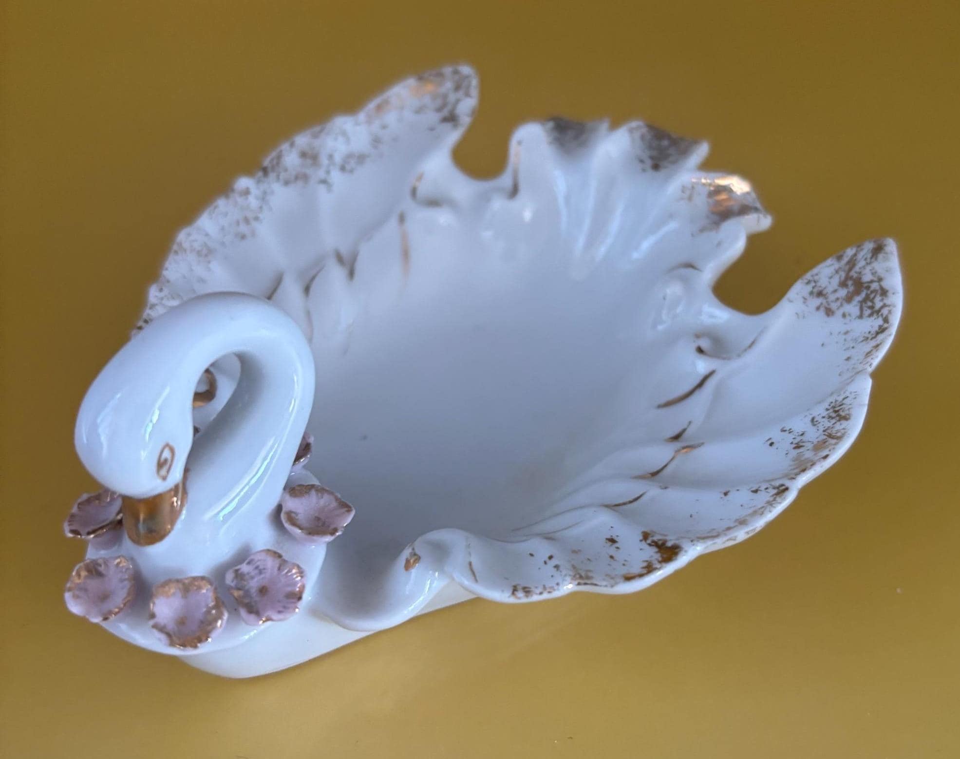Ideal as a gift for her or him, this vintage Lefton swan figurine is perfect for collectors, or to brighten any space with a touch of timeless elegance. Use it as a ring dish, a small jewelry holder, or simply as a decorative accent on a shelf or table.