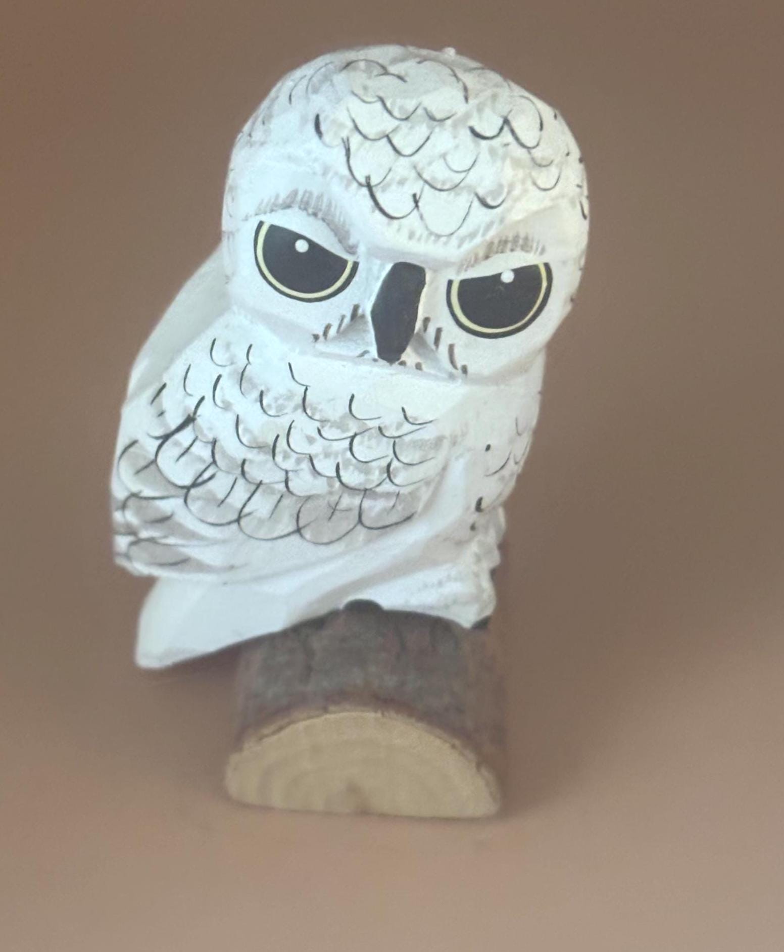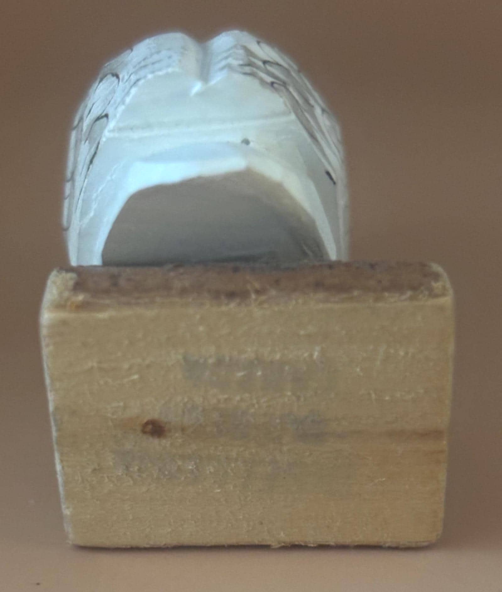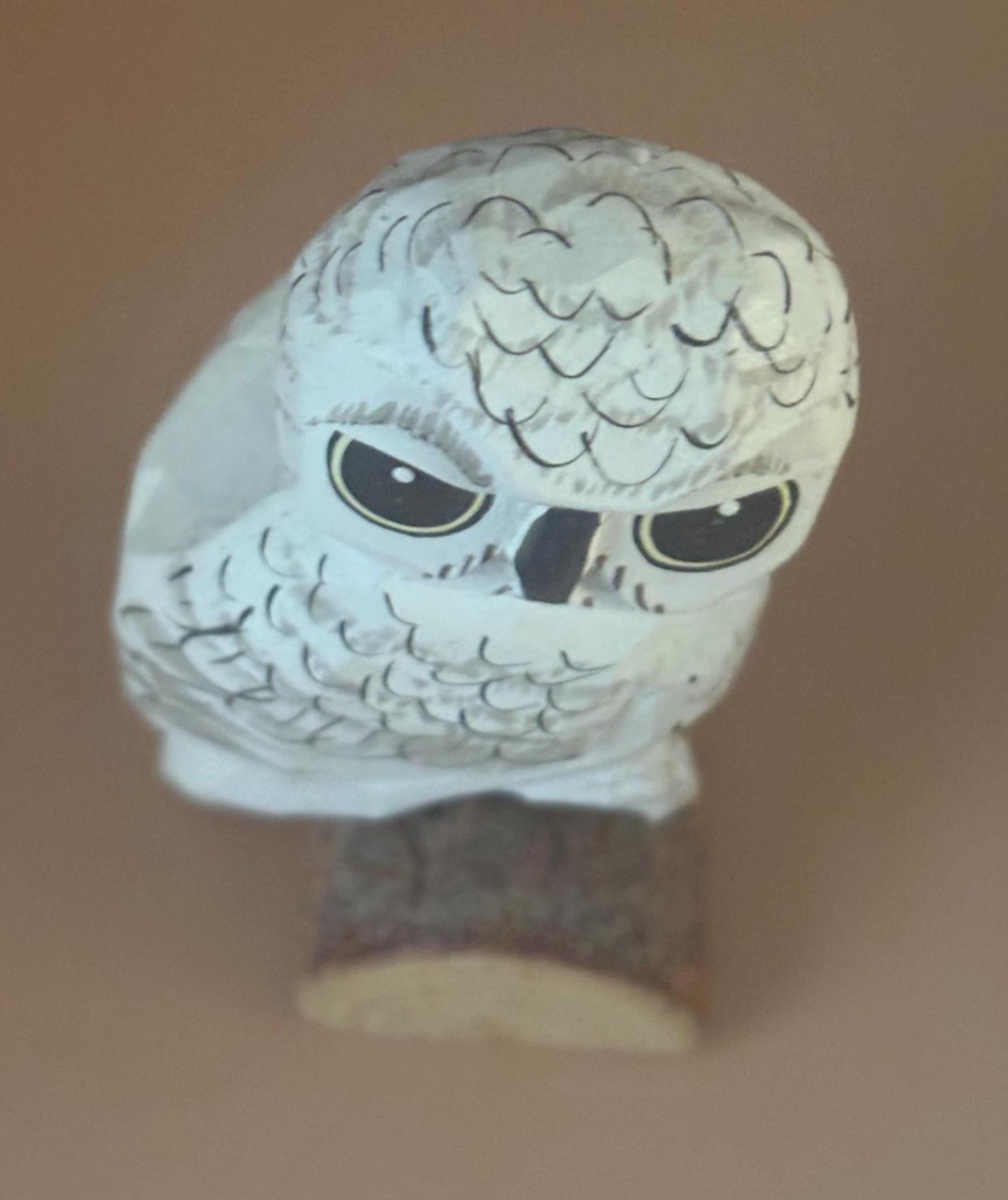 We are delighted to be featuring this Vintage Hand Carved Wooden Snow Owl with Sliding Trinket Box. Hand Painted and in wonderful, original condition. It has its original tag on the bottom. Made in Russia. It measures approximately 5" long, 2 1/4" high.