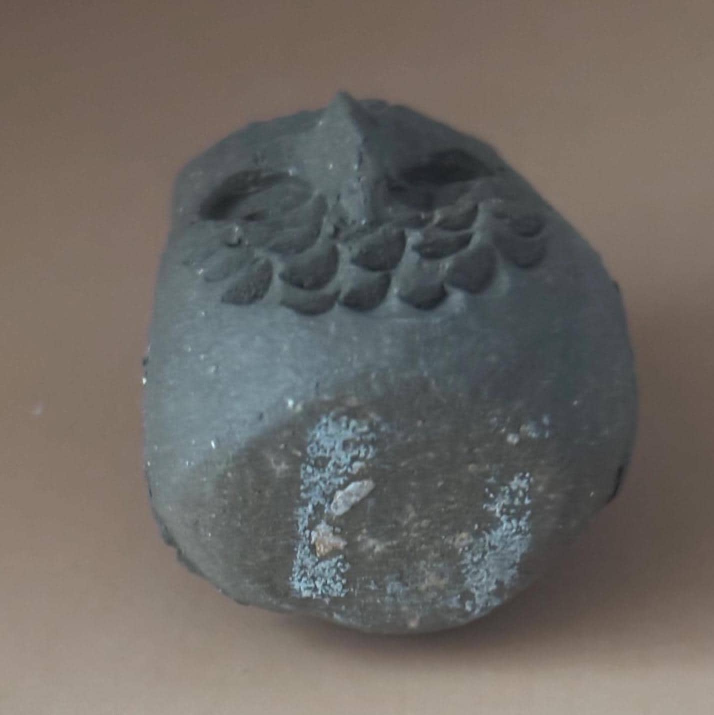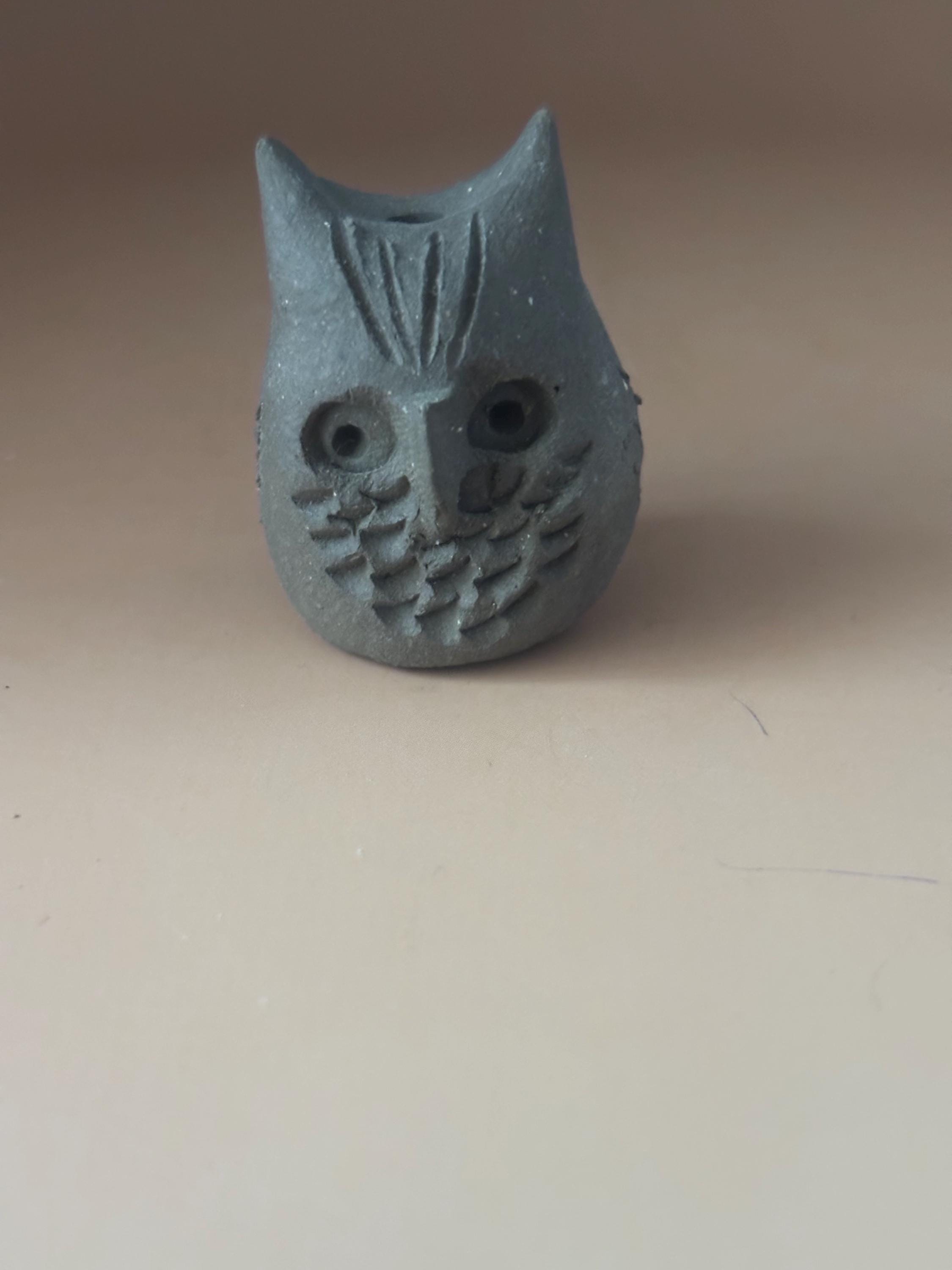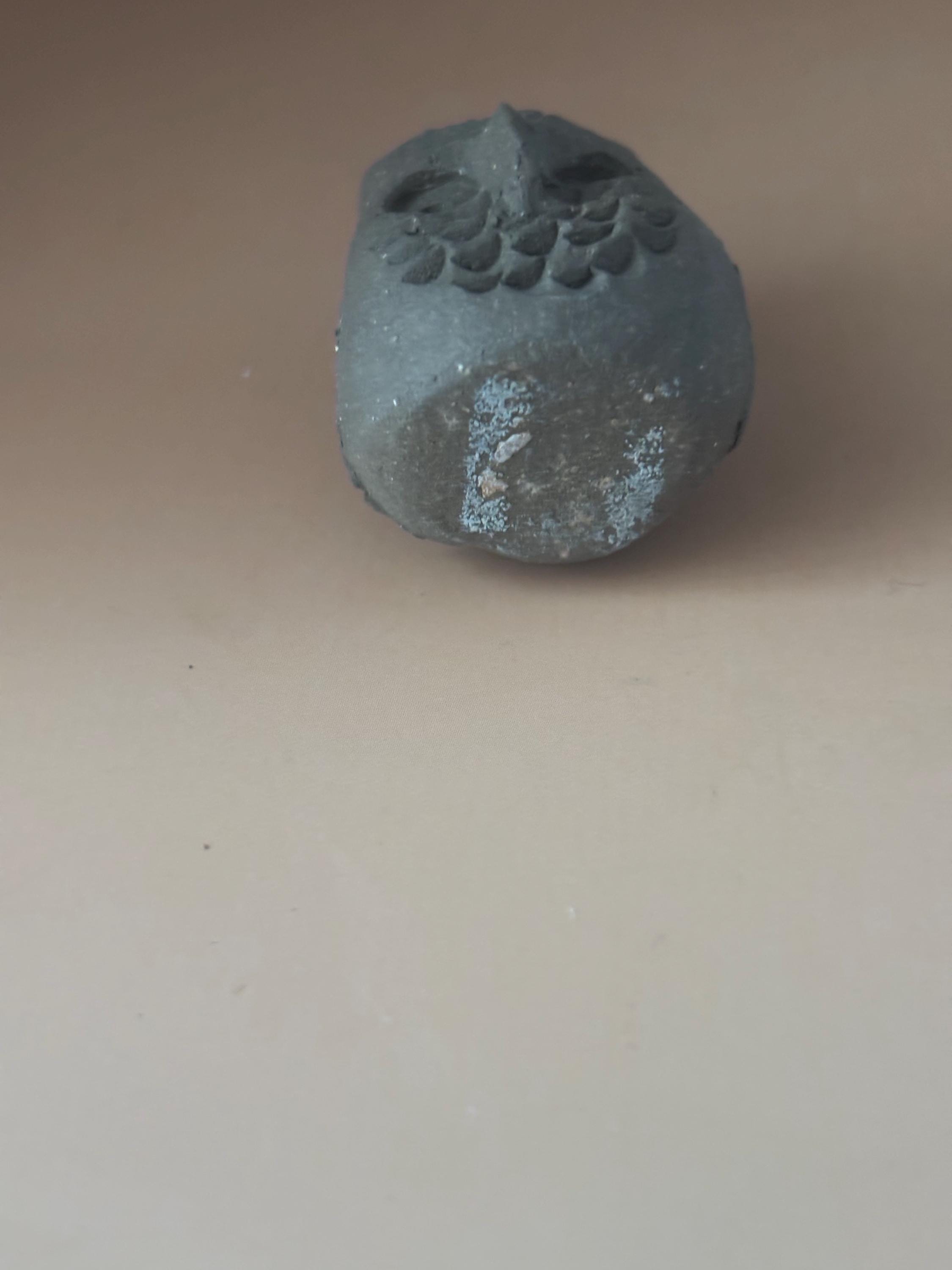 We have a delightful Vintage Handmade Clay Grey Owl Figurine. It measures approximately 1 1/2" high.