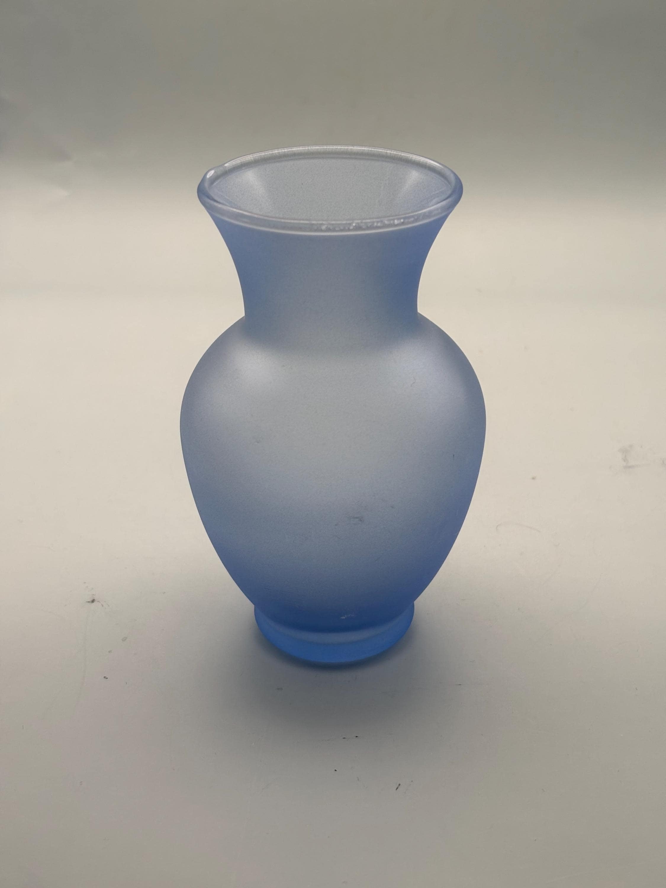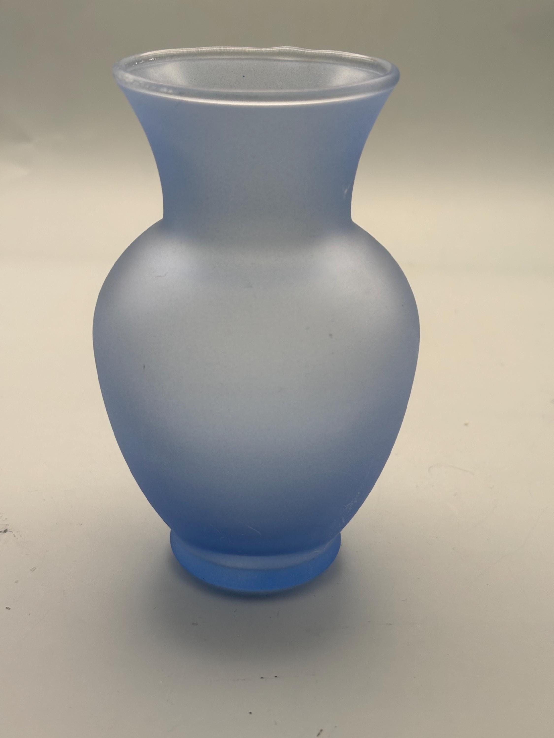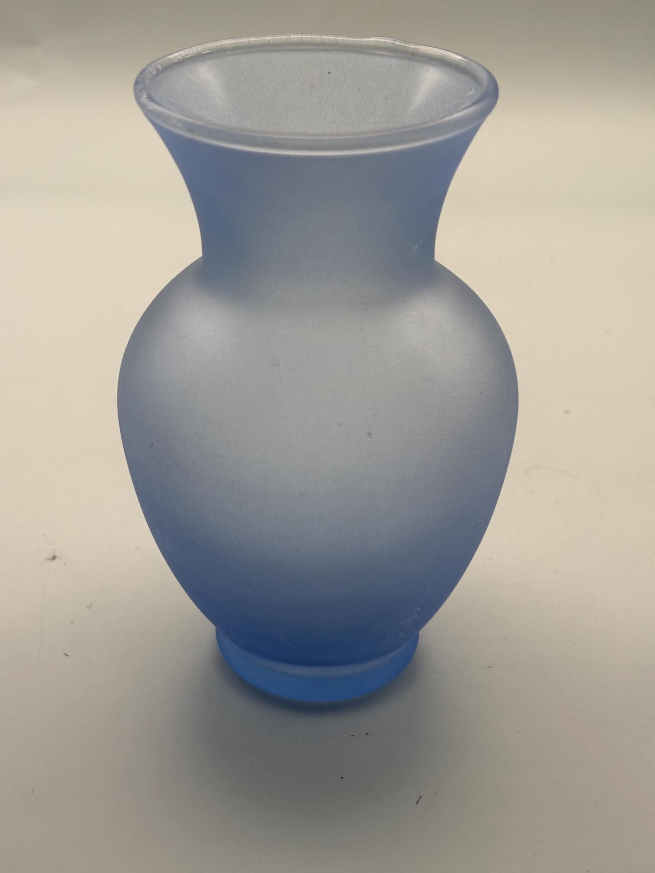 We have a gorgeous Vintage Hand Blown Blue Vase. It measures approximately 3" wide, 5" high.
