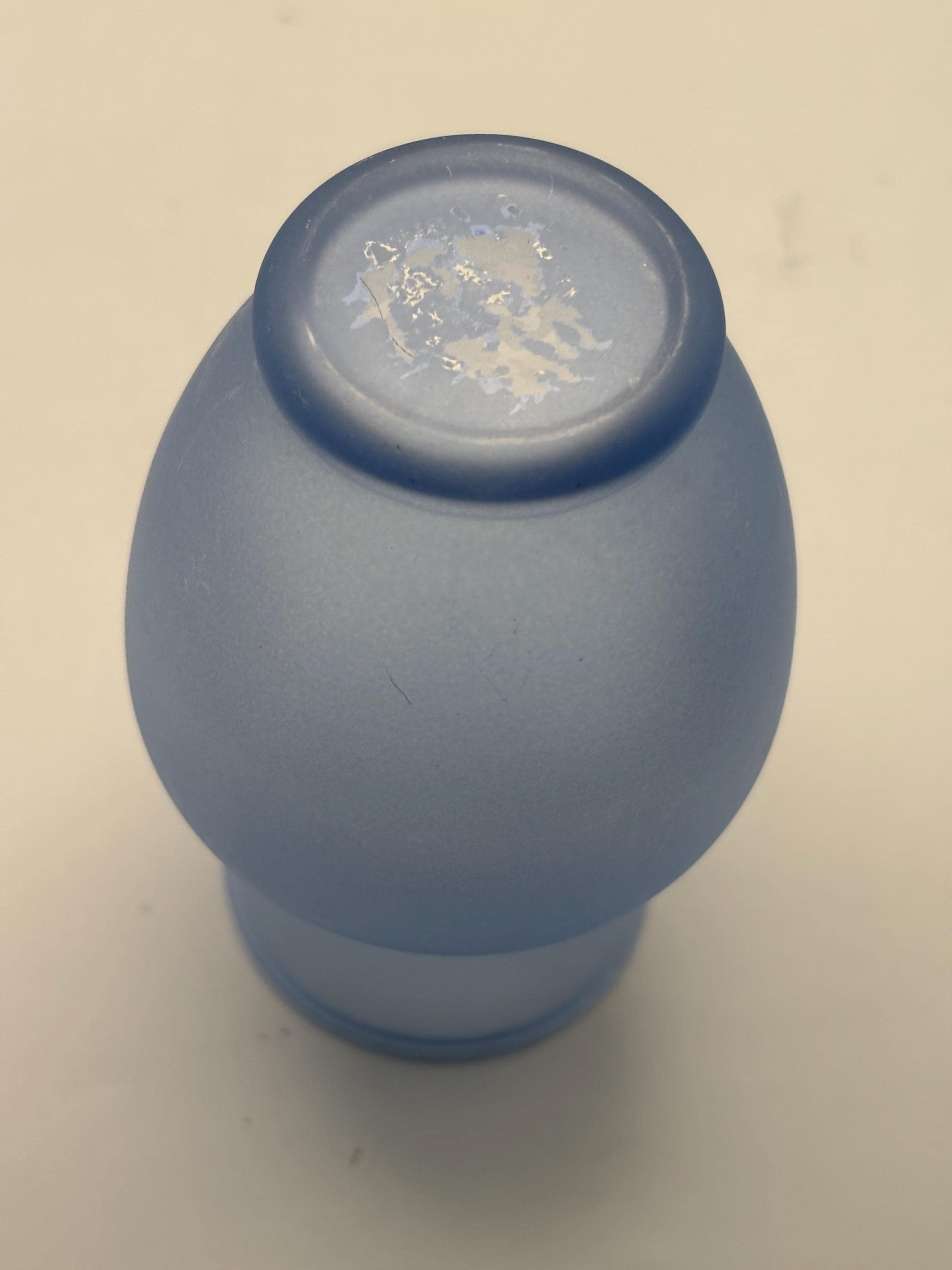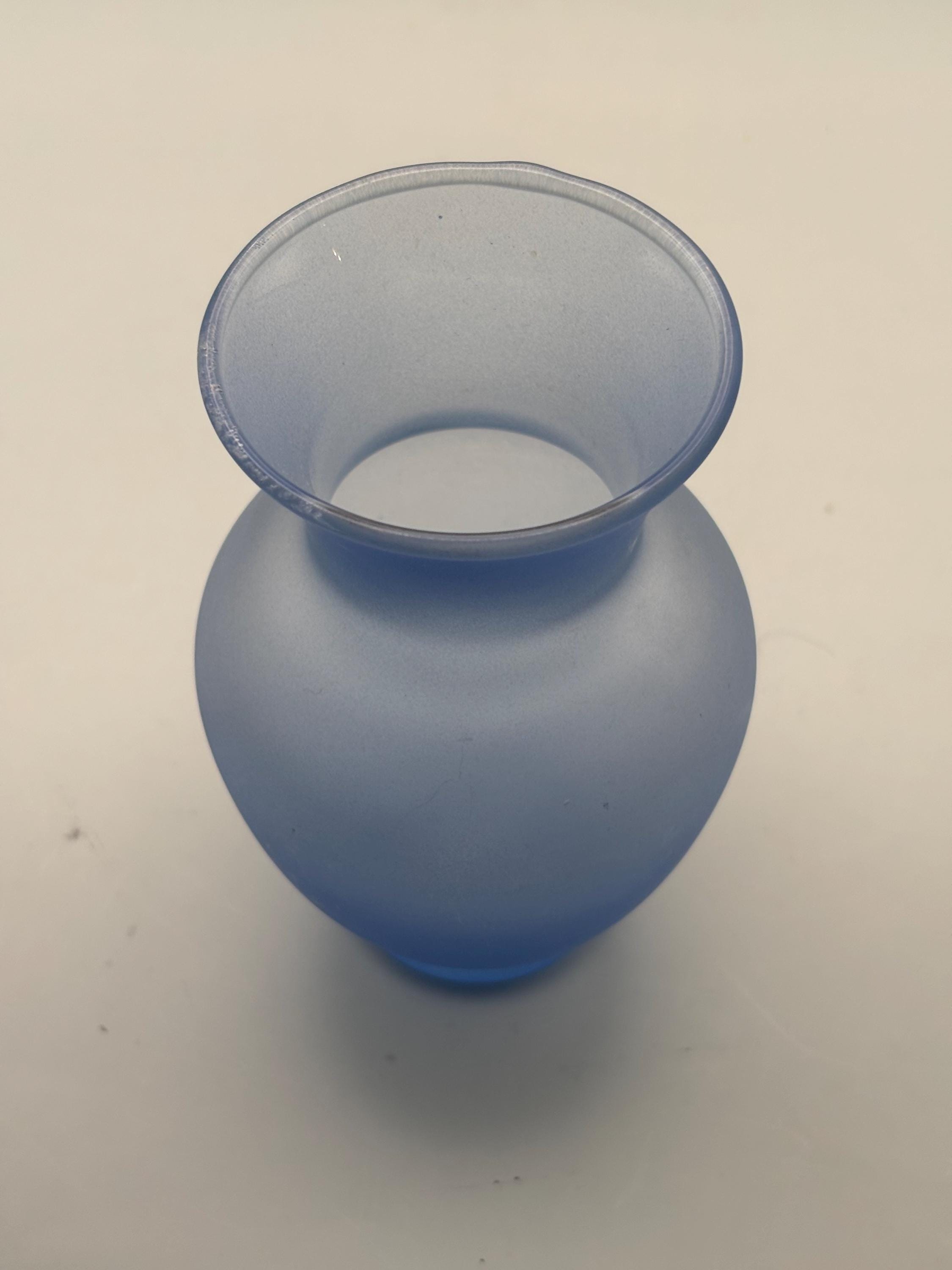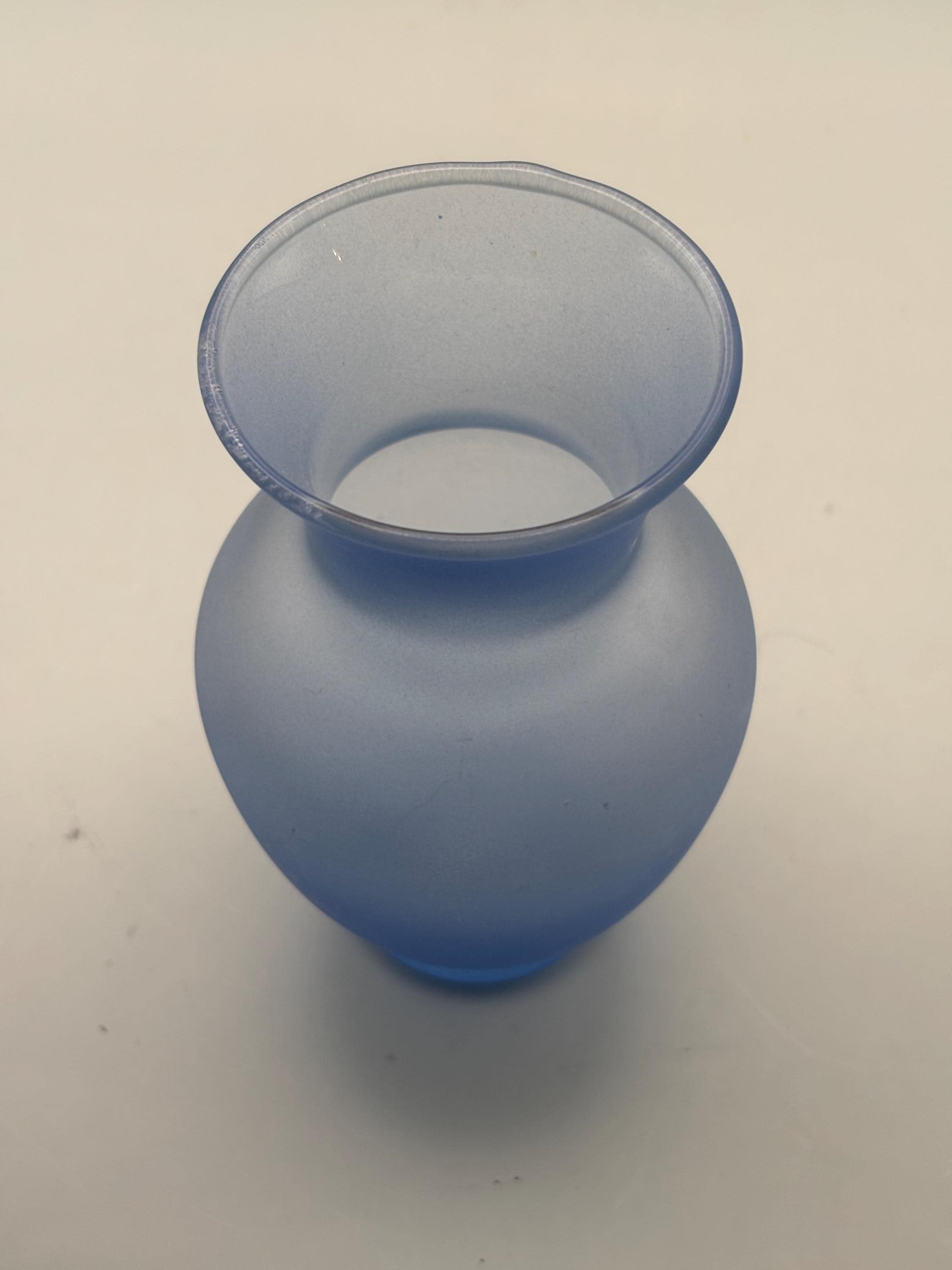 We have a gorgeous Vintage Hand Blown Blue Vase. It measures approximately 3" wide, 5" high.