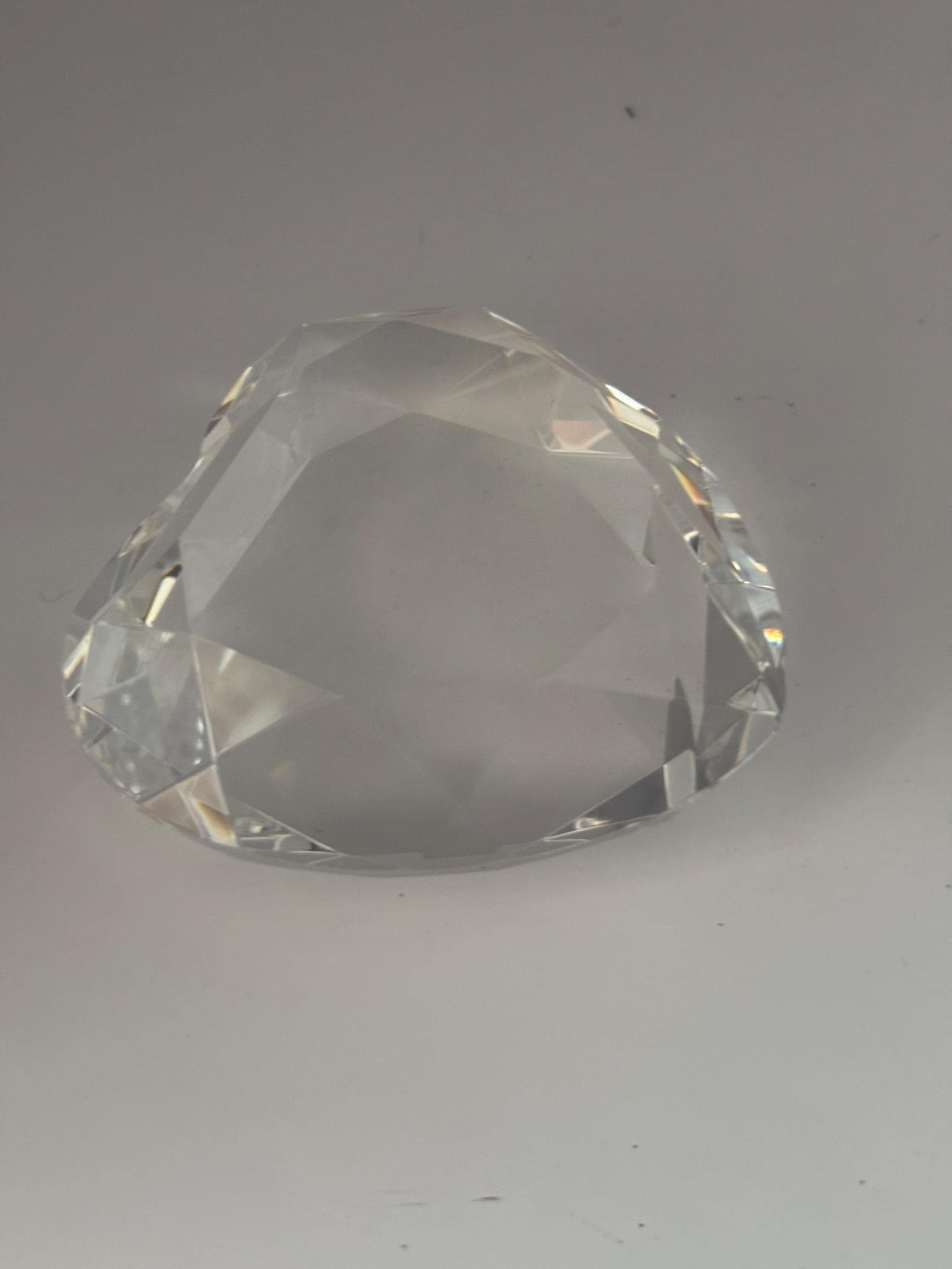We have a gorgeous Rosenthal Crystal Heart Paperweight. It is 24% lead crystal. It measures approximately 3 1/2" wide. It is a truly phenomenal piece of art!