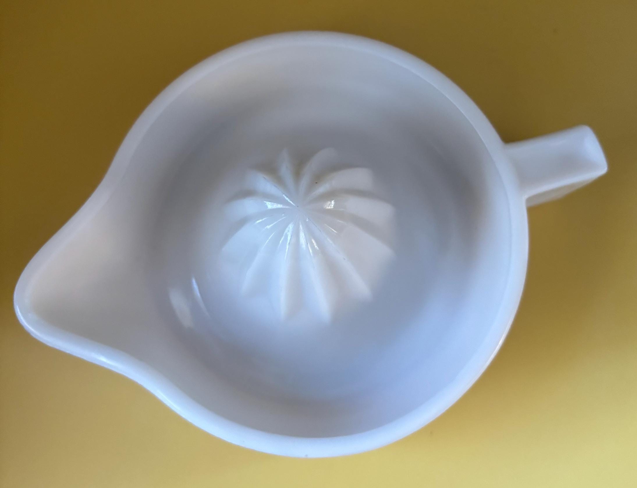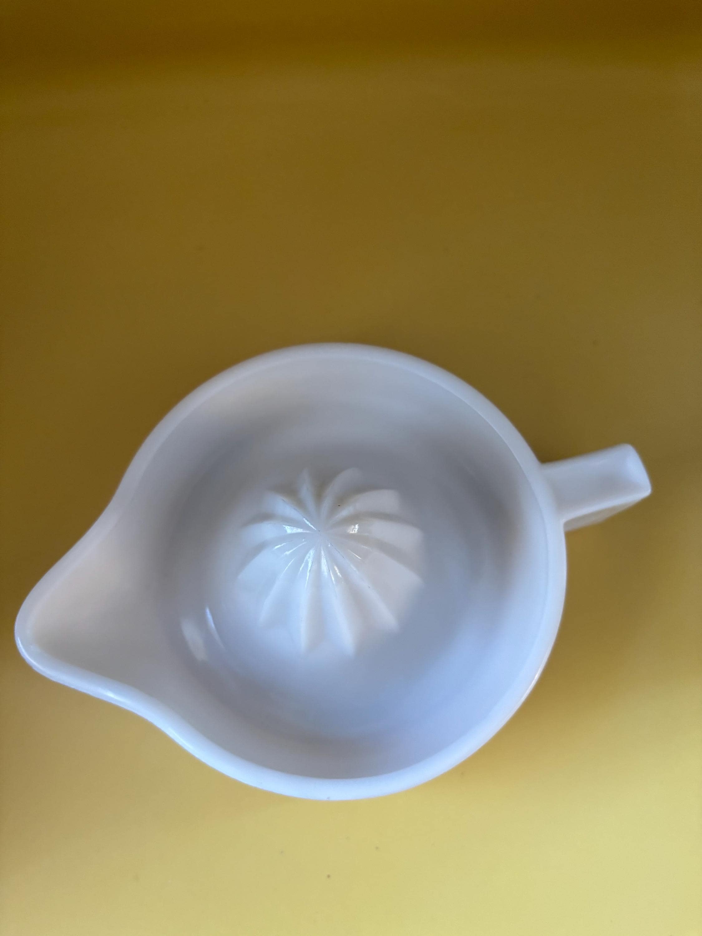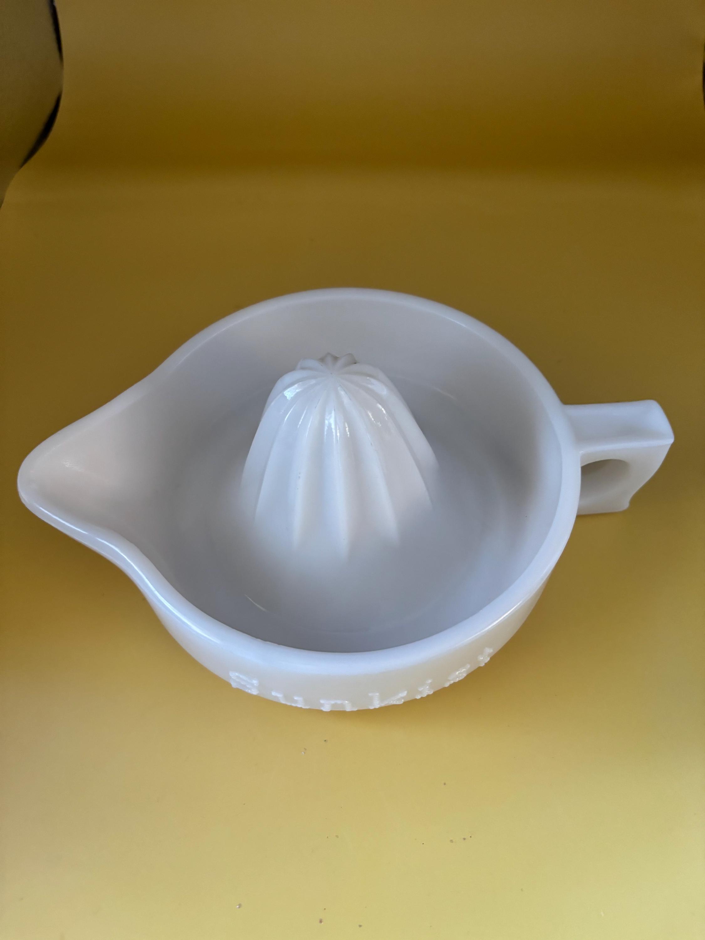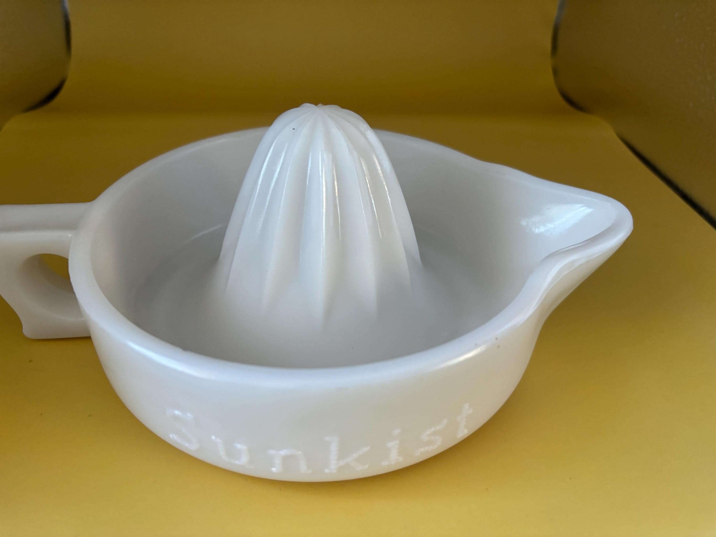 We have a lovely Vintage Sunkist White Milk Glass Juicer Reamer. Made by McKee Glass Company.