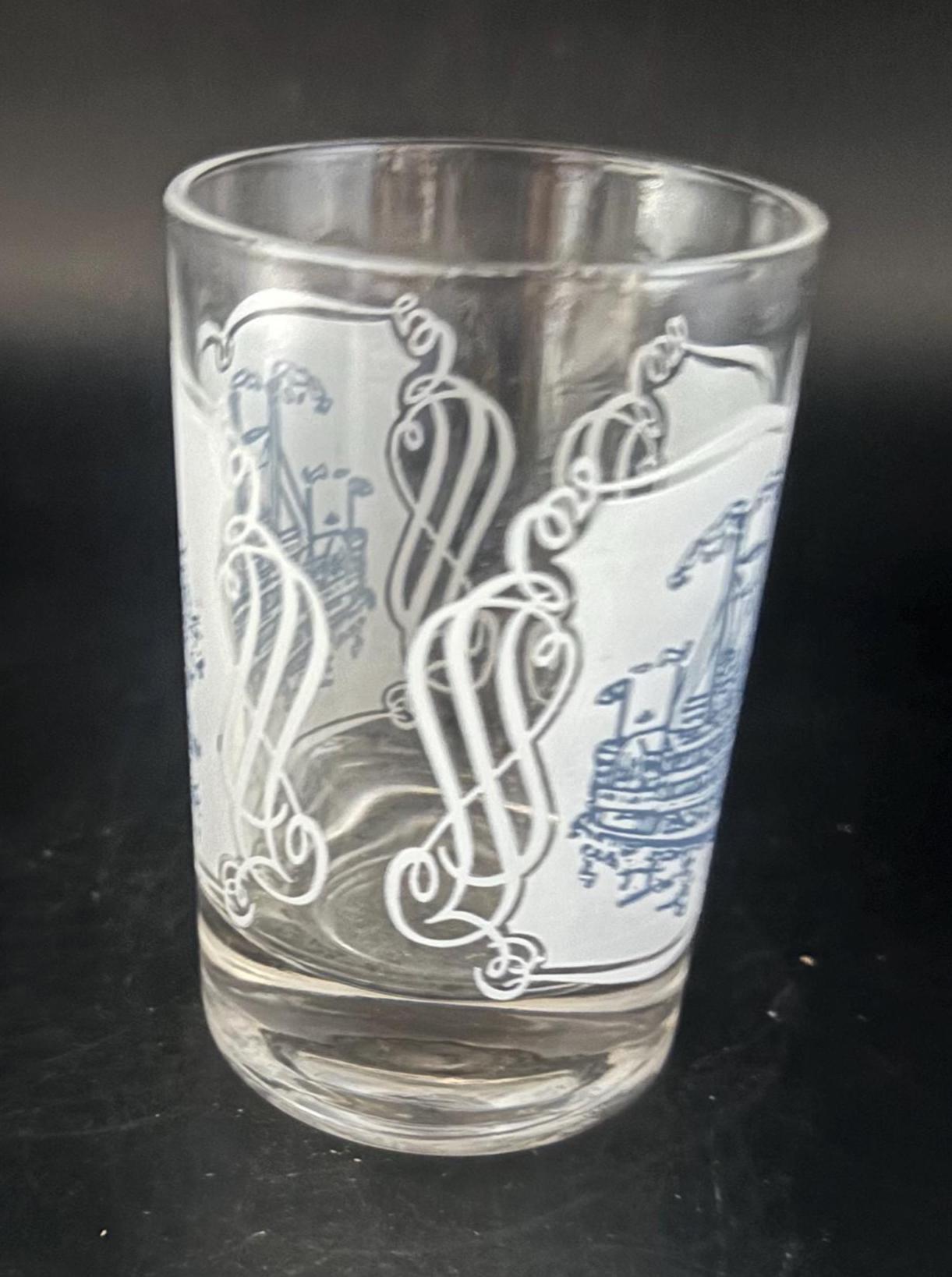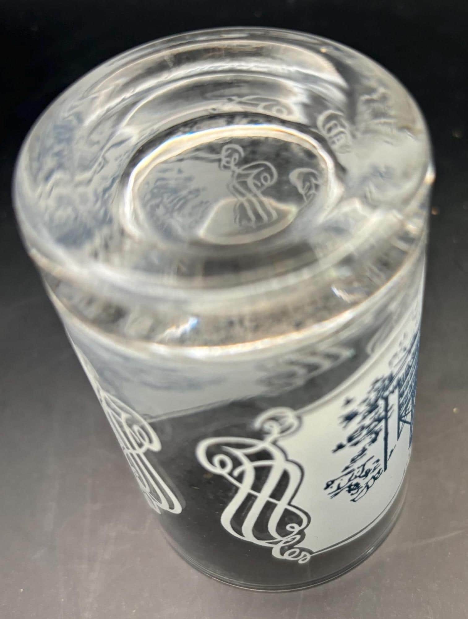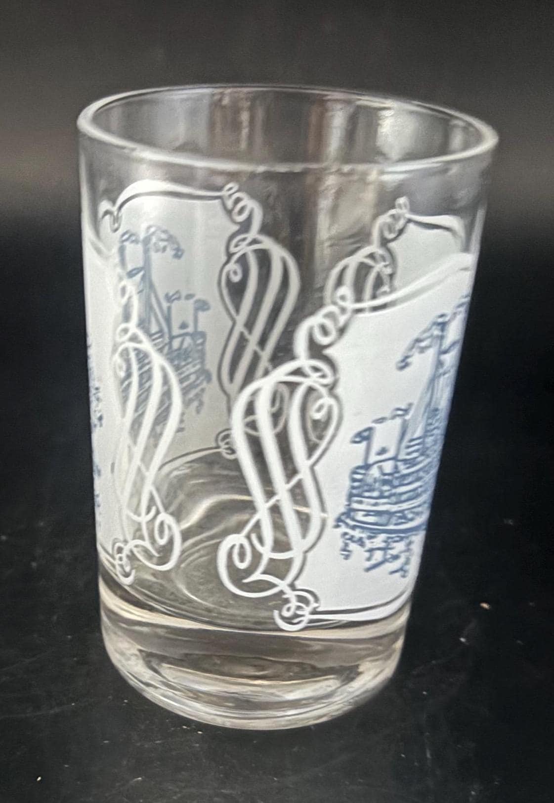 Discover this charming Vintage Currier & Ives Glass. It measures approximately 2 1/4" wide, 3 1/2" high.
